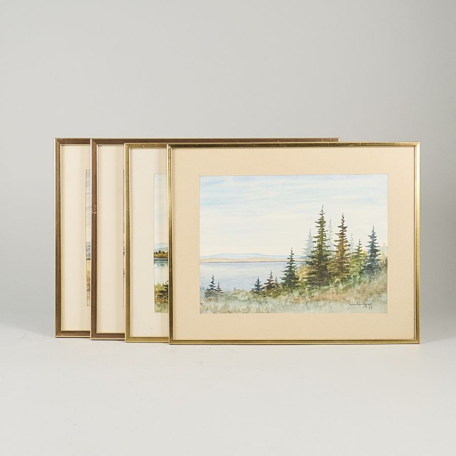 Akvareller, 4 st, Signerade, daterade 1977 - 1980. Akvarell, bildmått: 26x35 cm, yttermått inklusive ram: 37x46 cm