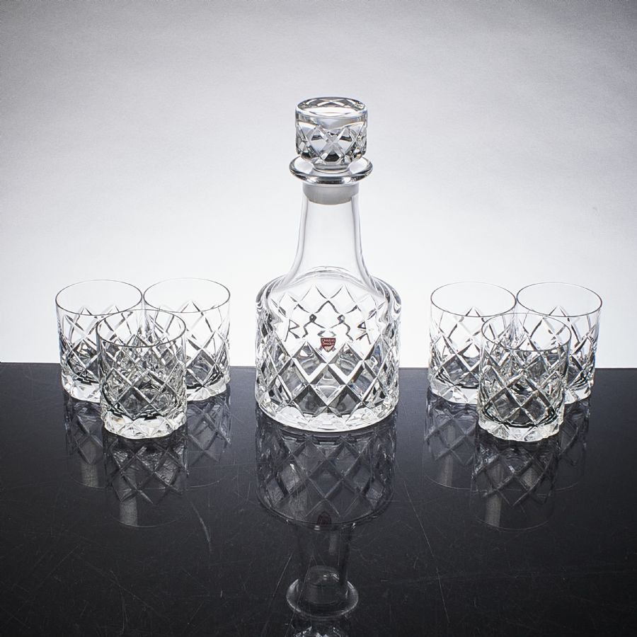 Whiskyglas, 6 st + karaff, Orrefors, Sofiero, design:  Höjd: 8,5-26 cm