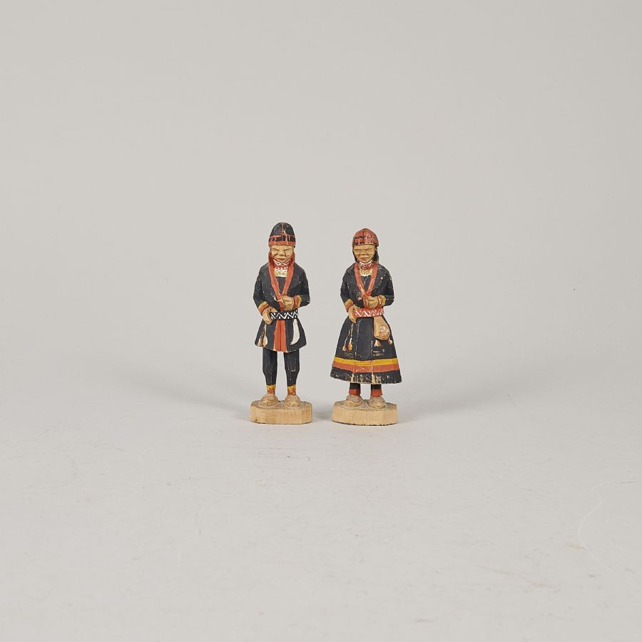 2 st samiska figurer. Painted wood. Sigberad GJ,