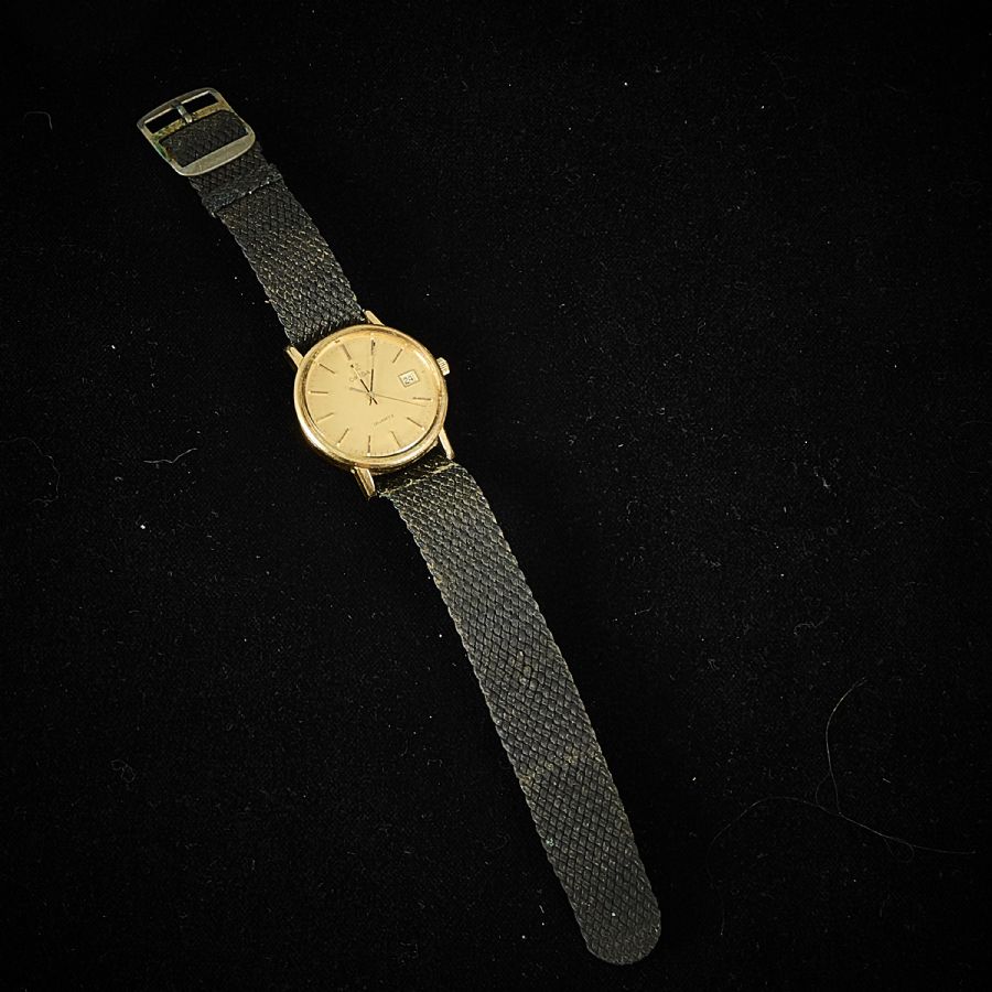 Omega, quartz, boettens. Diameter: 3,5 cm, armband i tyg