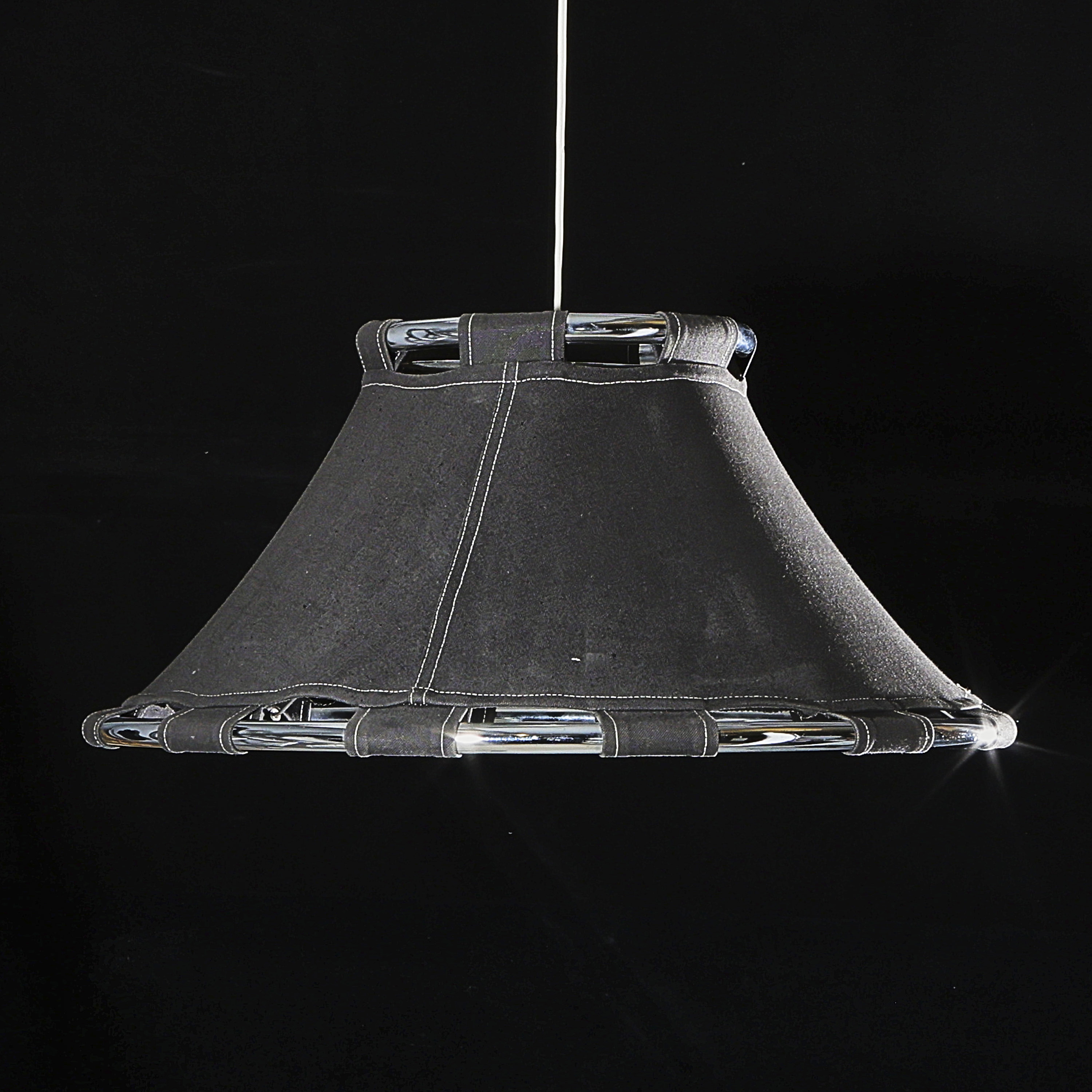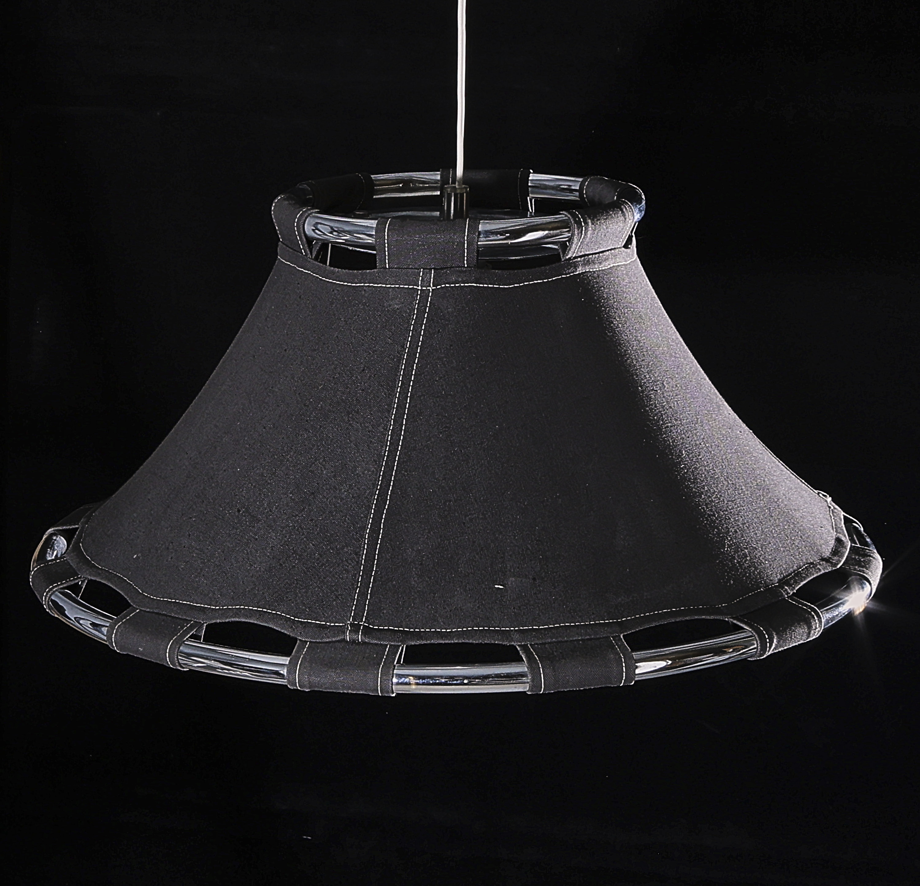 Liknande föremål: anna ehrner ljuskronor skärm i svart tyg stomme i krom svensk konst svensk konstnär svenska konstnärer sverige takarmatur taklampa taklampor