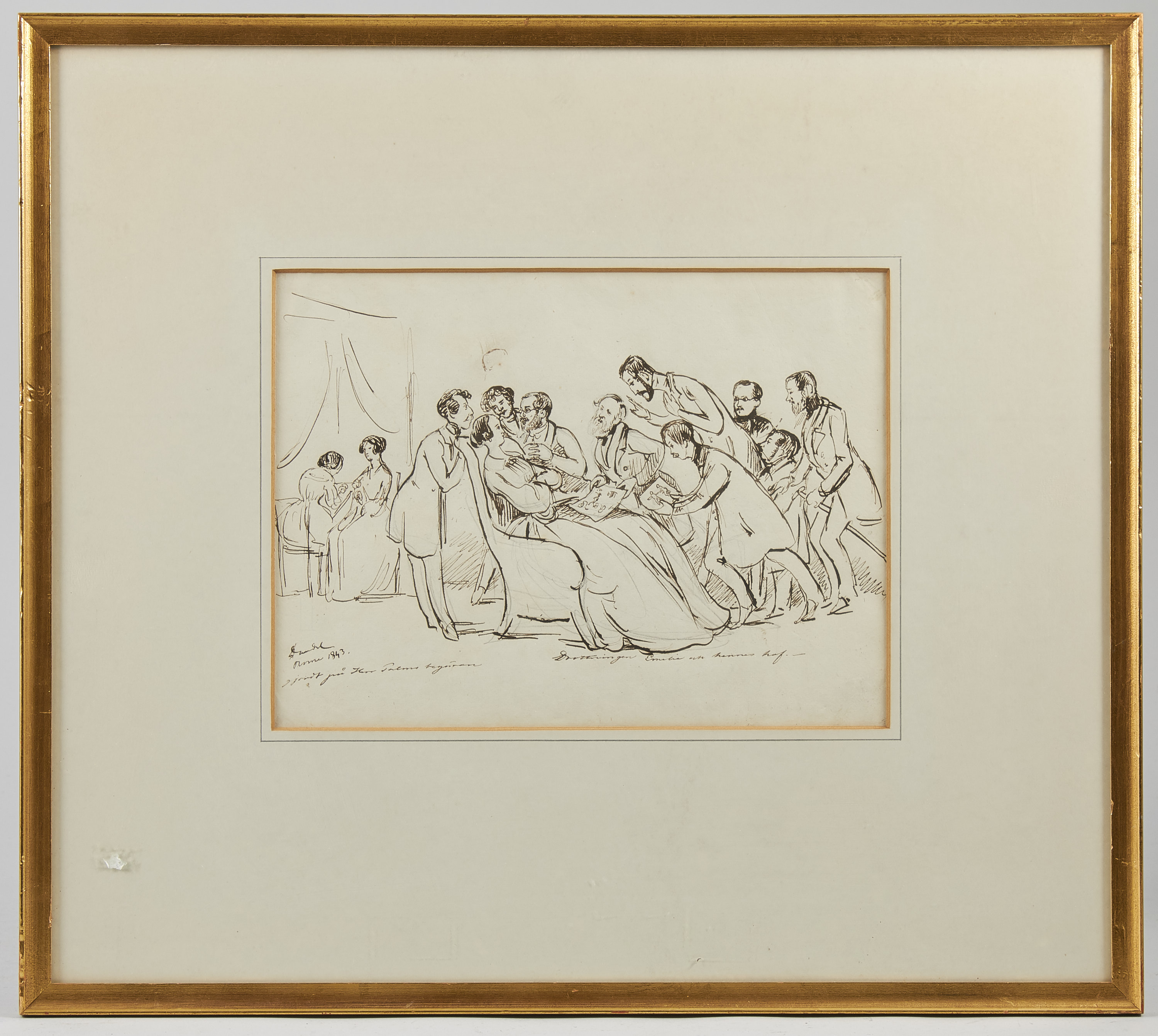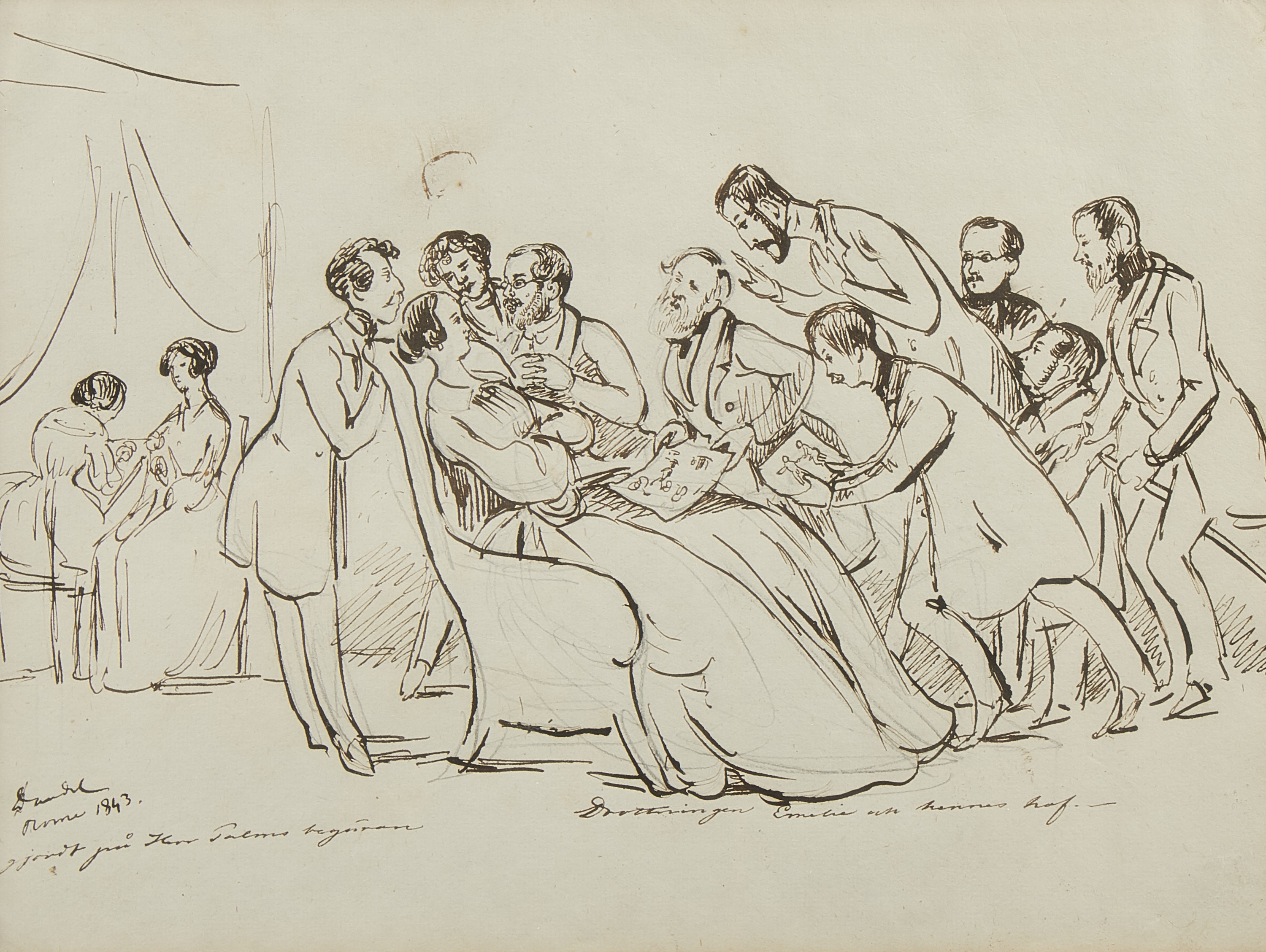 Fritz von Dardel (1817-1901), Sverige. "Drottning Emilia och hennes hov", signerad. Roma 1843, Rom, 21x28 cm