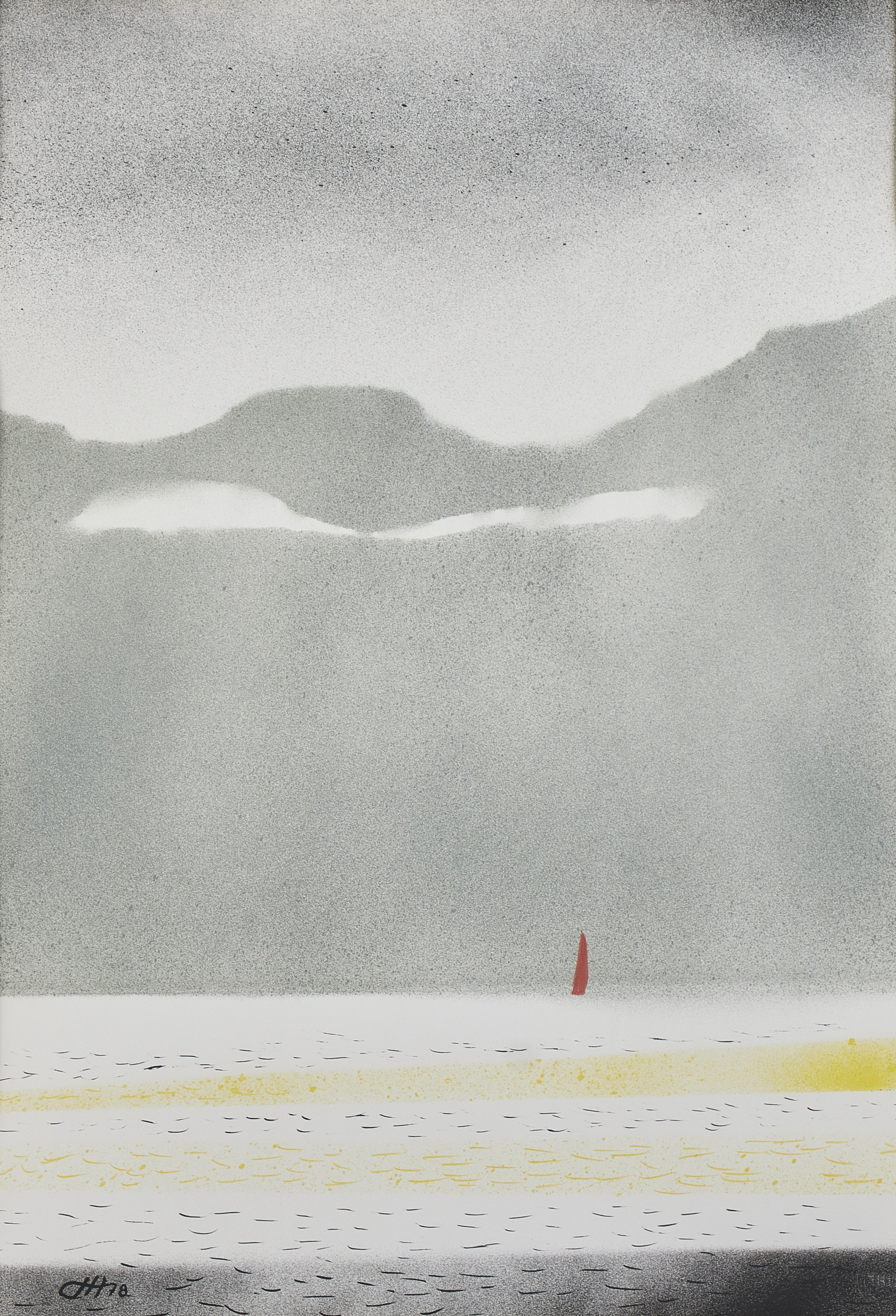 Oidentifierad konstnär. Segelbåt, monogramsignerad -78. Färglitografi, bildmått: 58x40 cm, yttermått inklusive ram: 78x59 cm