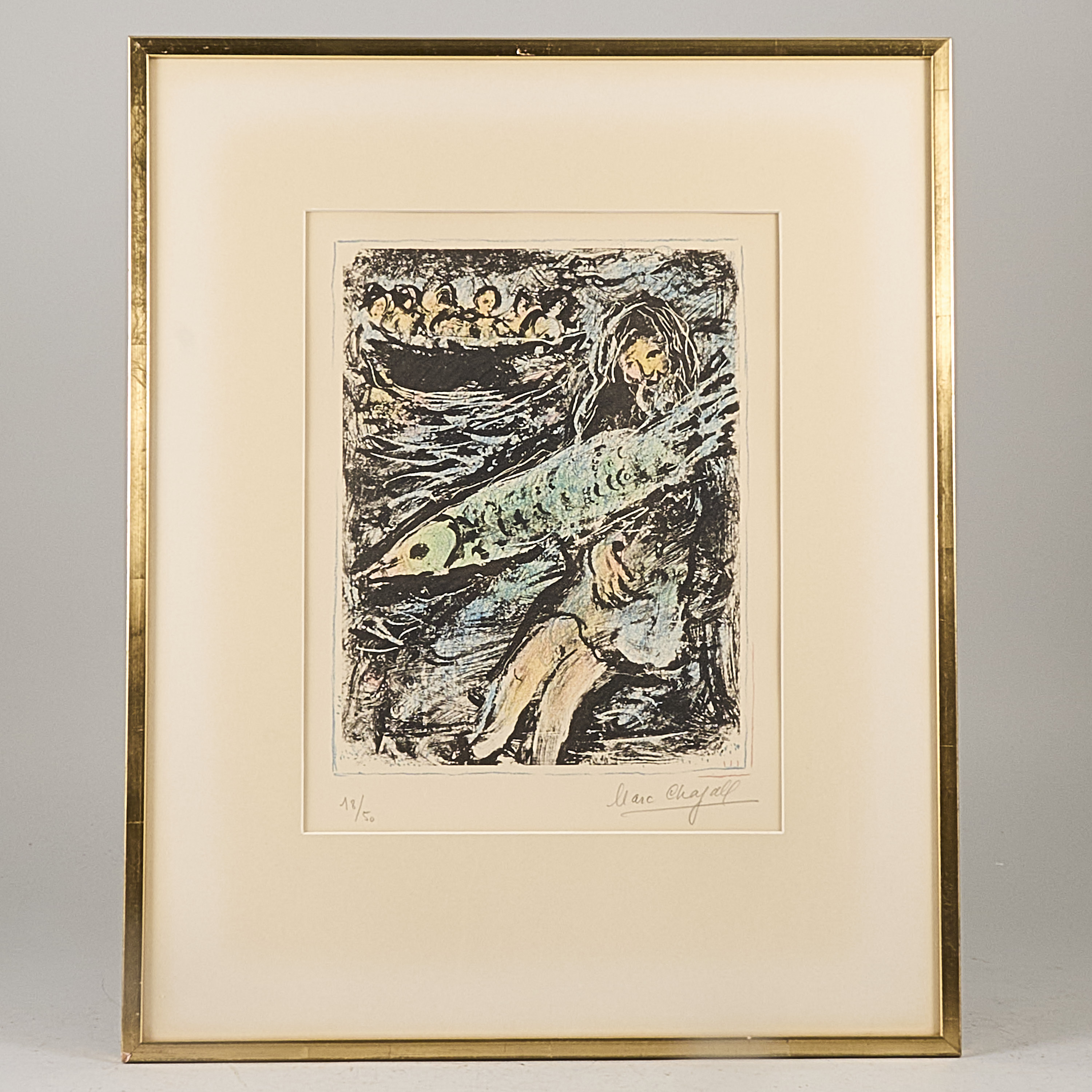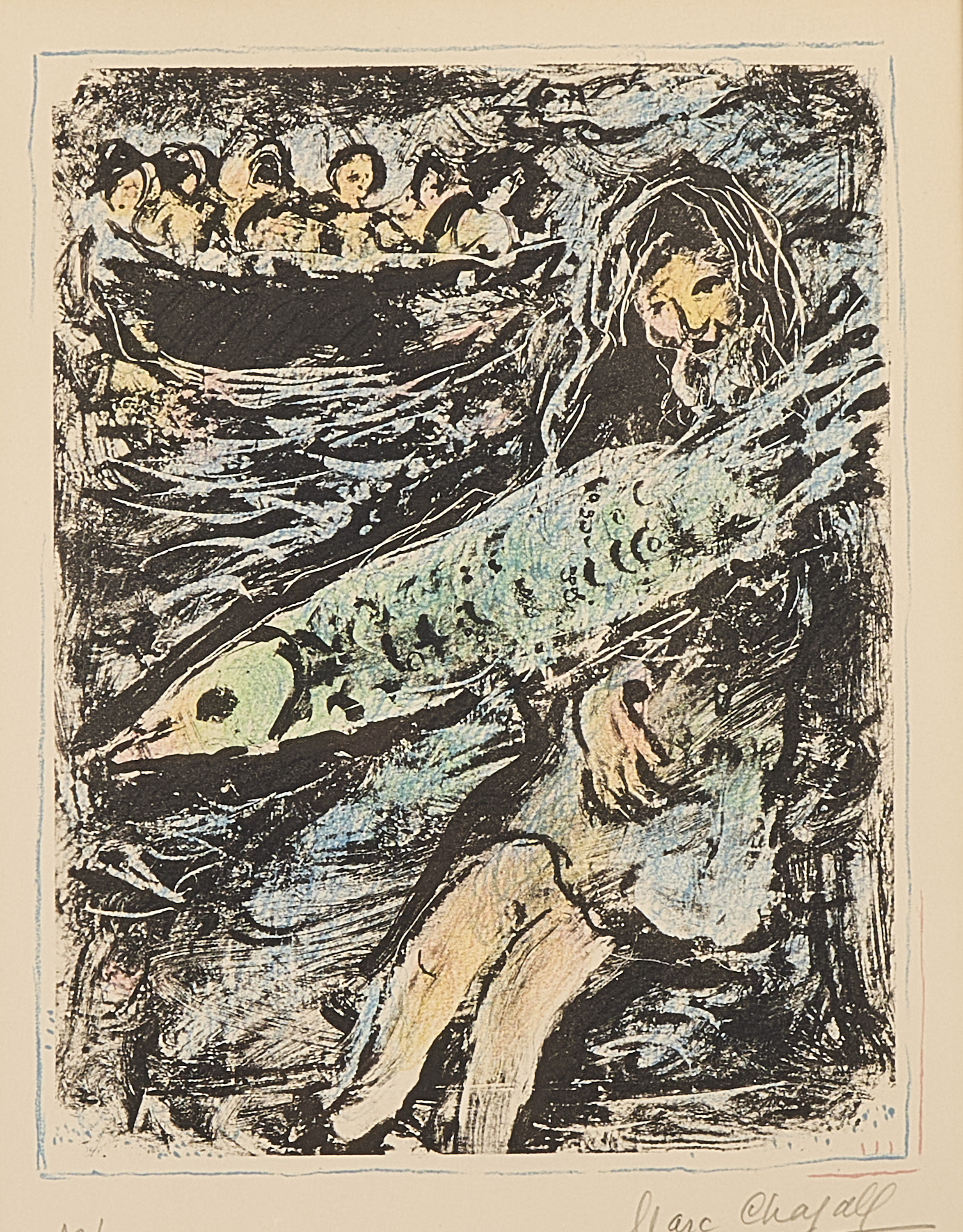 Marc Chagall (1887-1985), Frankrike. Jonas II. Signerad, numrerad 18/50. Färglitografi, bildmått: 33x26 cm, yttermått inklusive ram: 64x52 cm