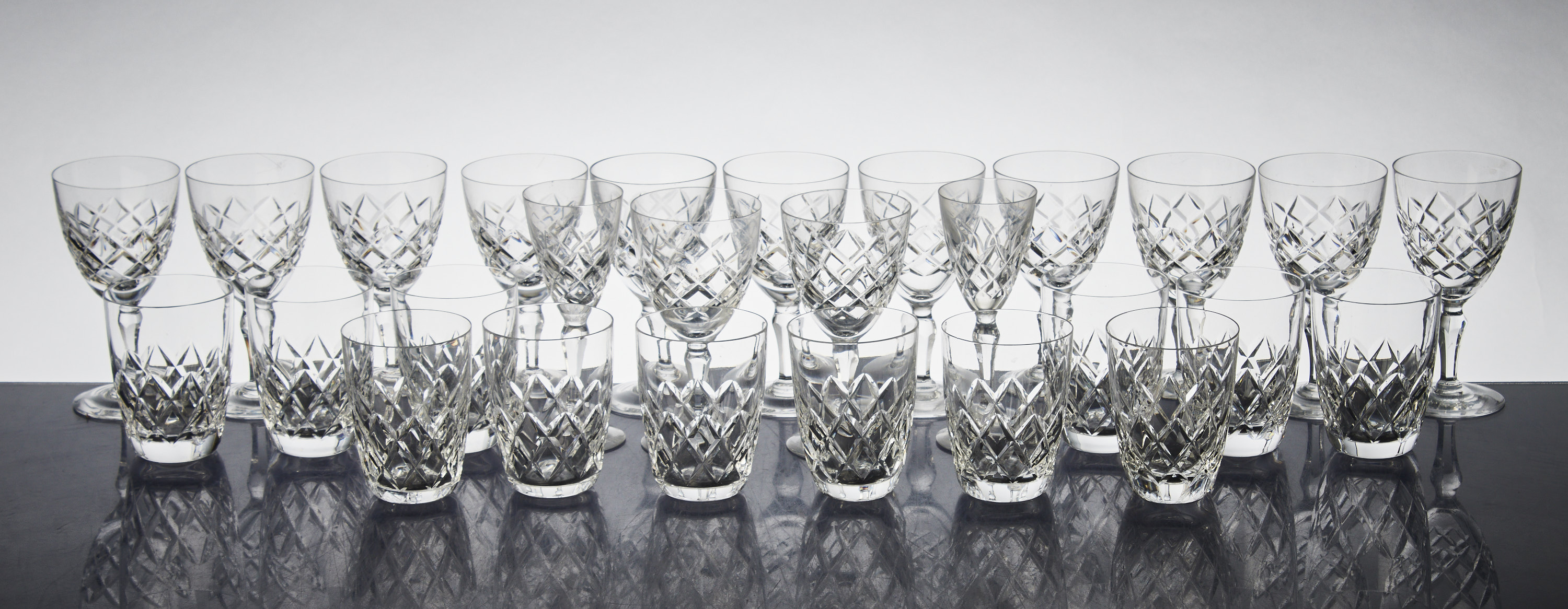 Ekenäs, 29 delar, rutslipat glas, 7 vinglas, 11 se..//