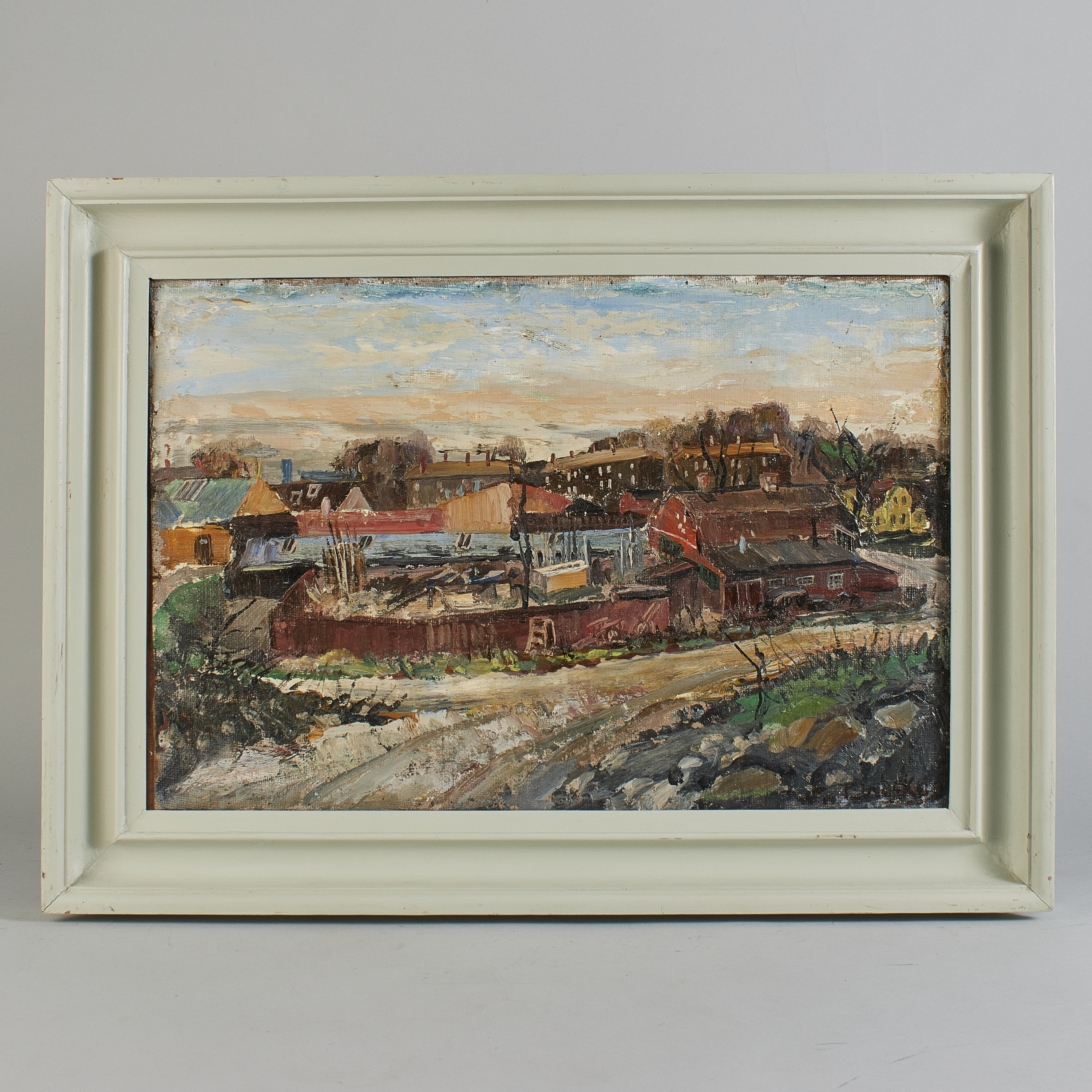 Oidentifierad konstnär. Signerad, "Sveavägen, Råkar". Olja på pannå, 38x57, yttermått inklusive ram: 52x72 cm, Nuvarande Wennergren center