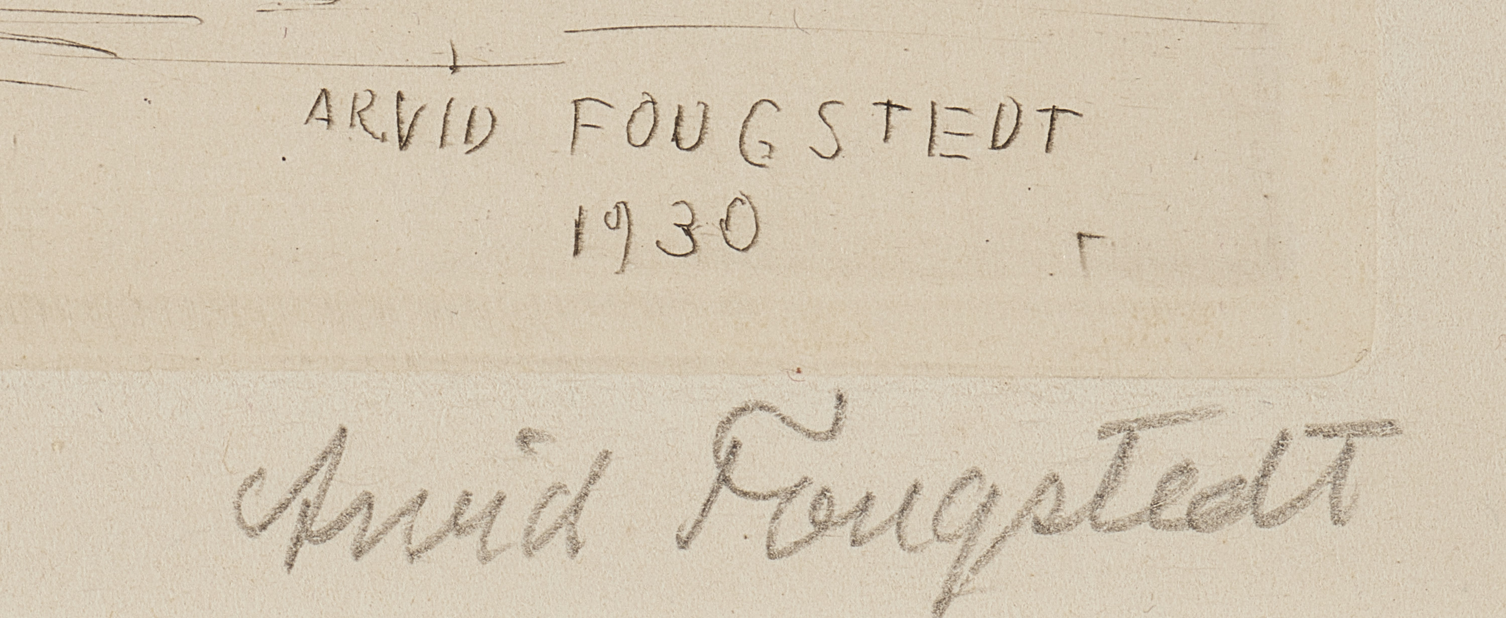 Arvid Fougstedt (1888-1949), Sverige. Signerad, daterad 1930. Bildmått: 25x29. Bladets mått: 41x49, oramat löst blad