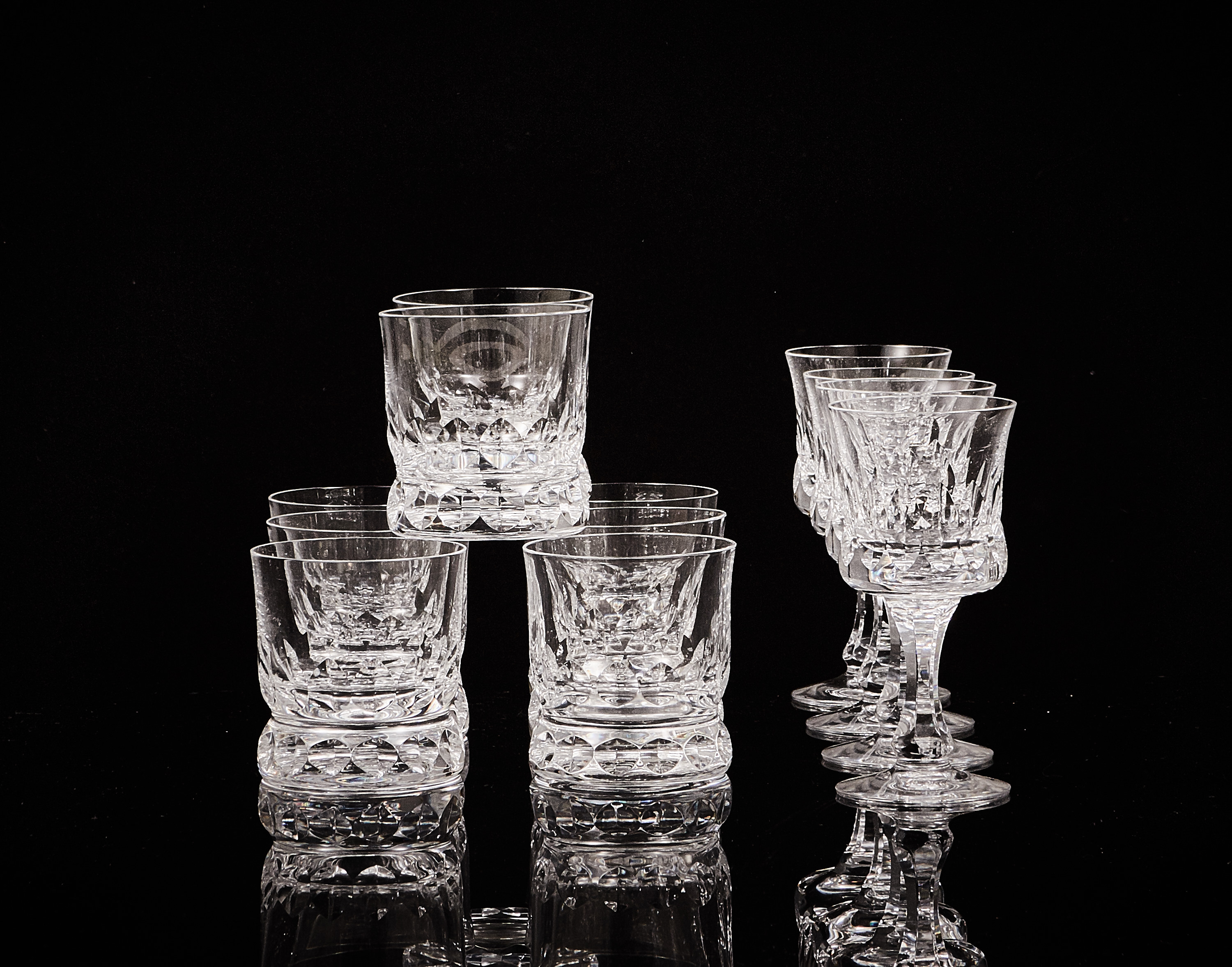 12 delar, Prince, design: Göran Wärff (f. 1933), Kosta, slipad dekor