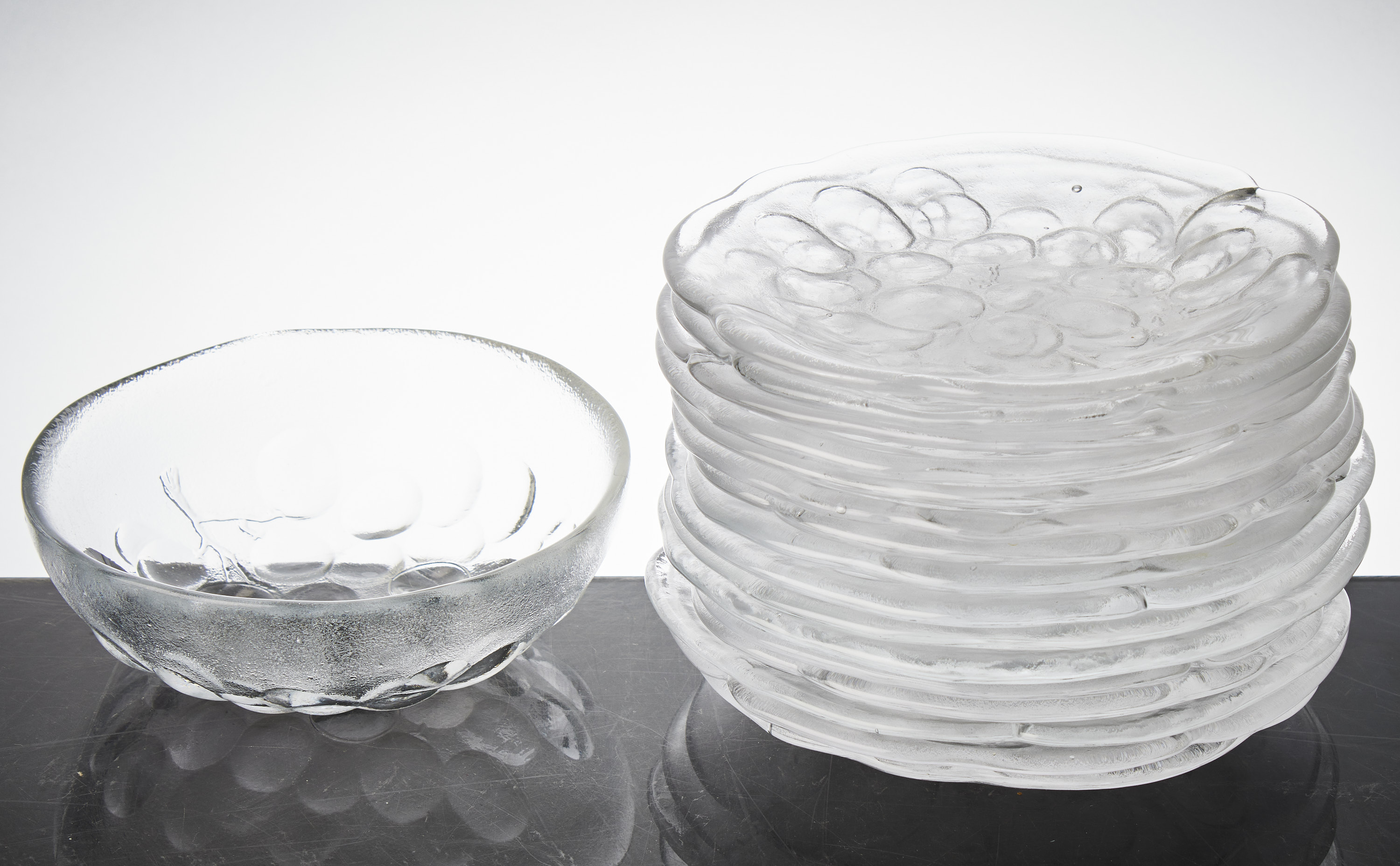 16 st + skål, Kostas Boda, glas, motiv av druvklase. Diameter: 18 cm