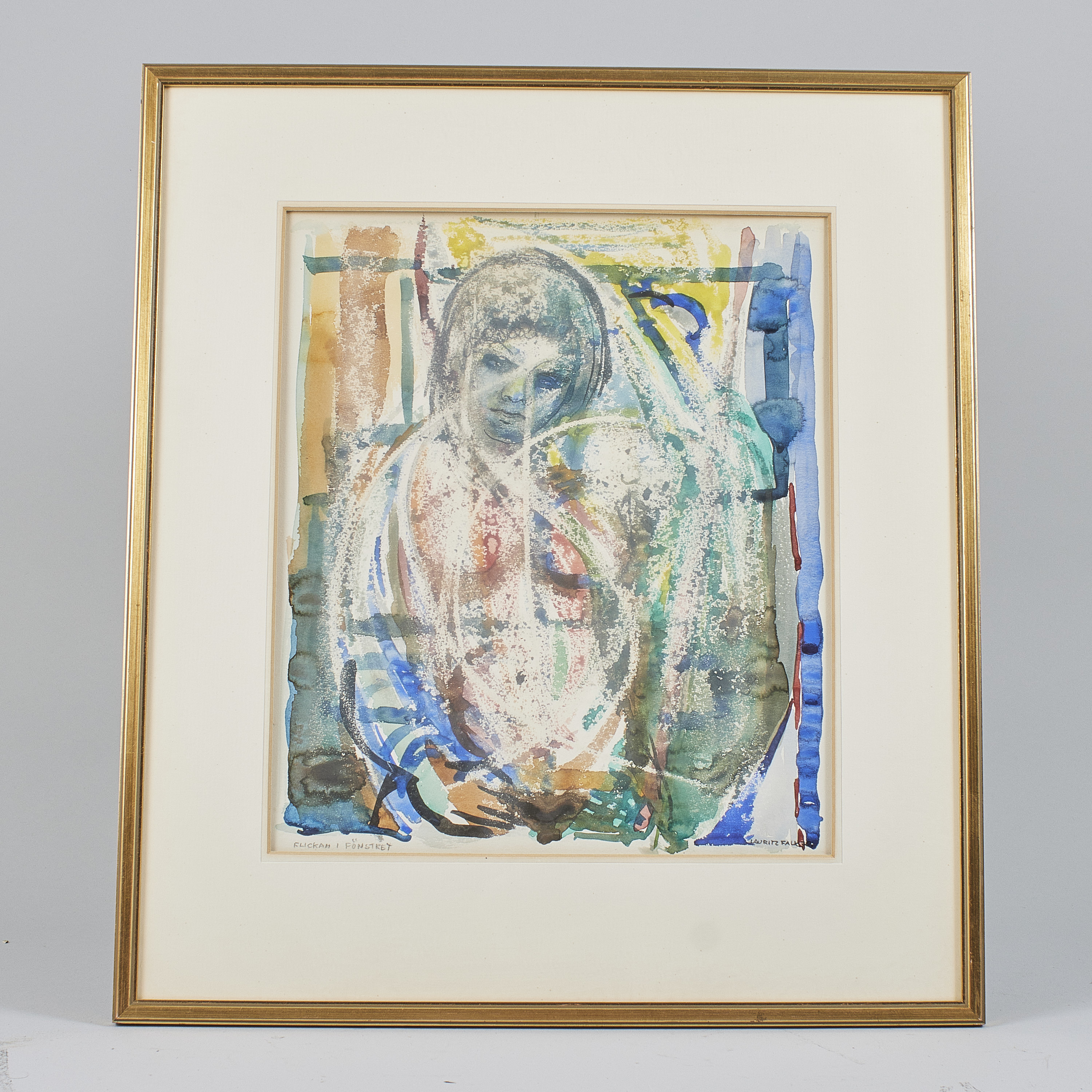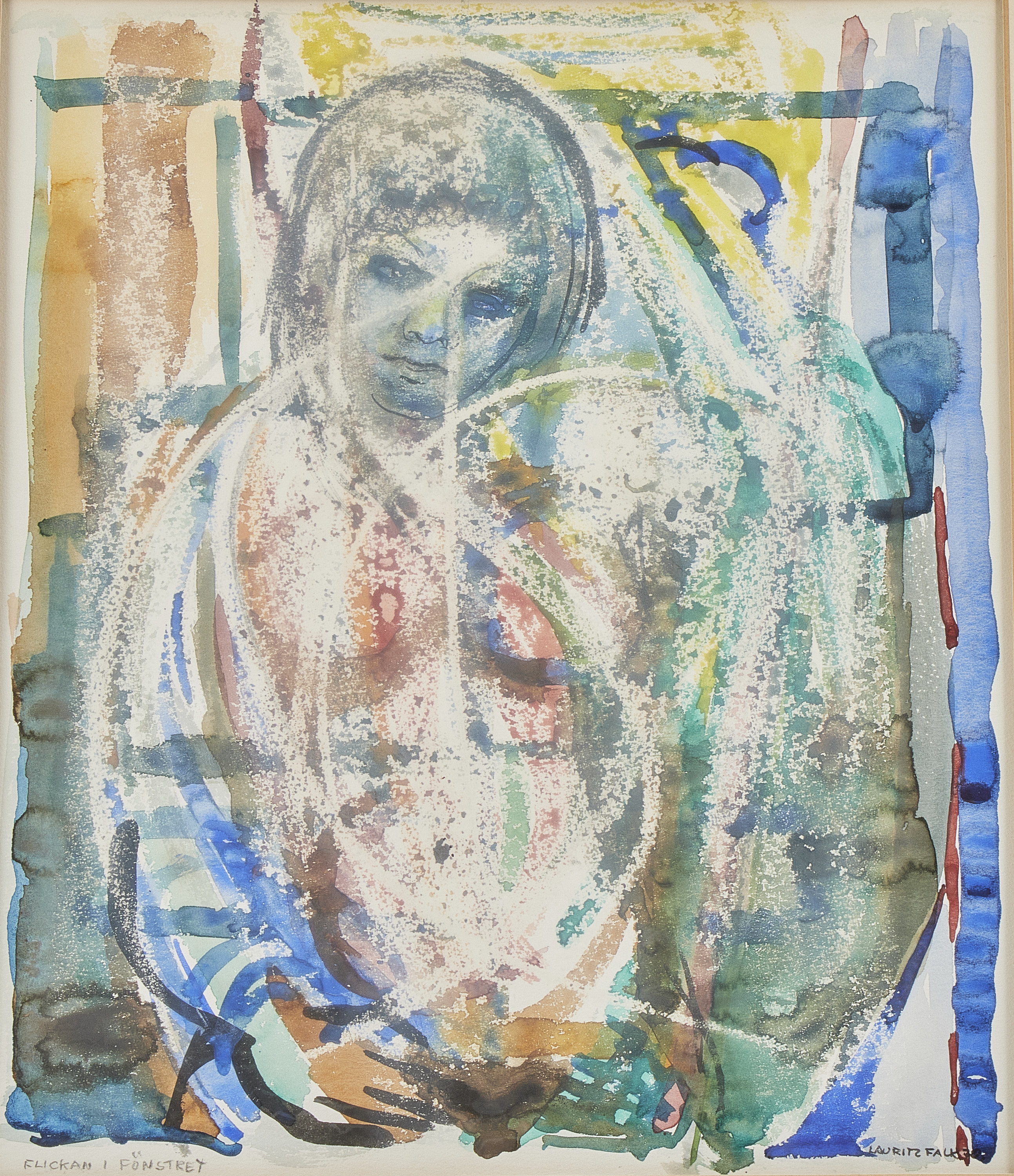 Lauritz Falk (1909-1990), Sverige. Flicka. Signerad, daterad -78. Akvarell, bildmått: 34x29 cm, yttermått inklusive ram: 51x45 cm