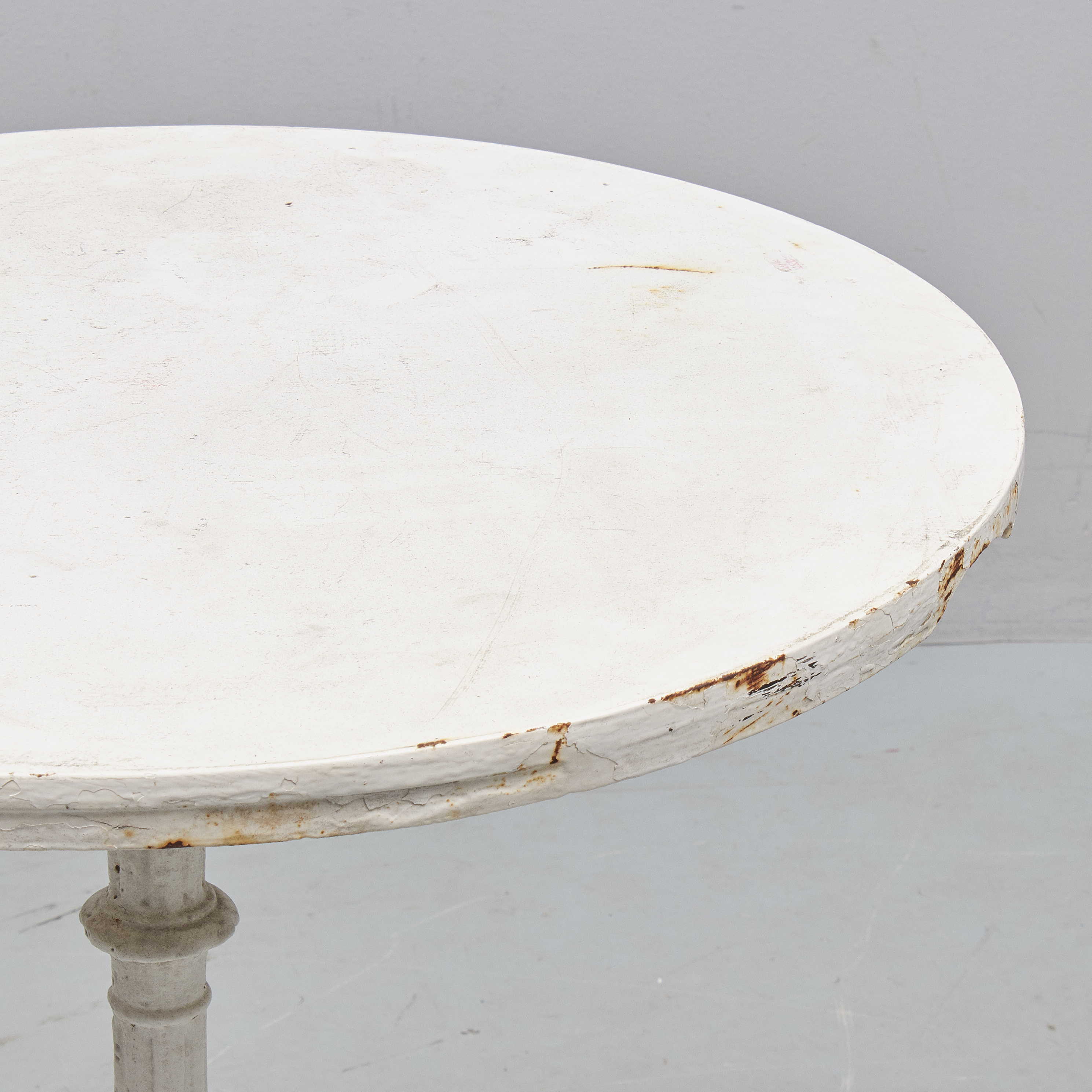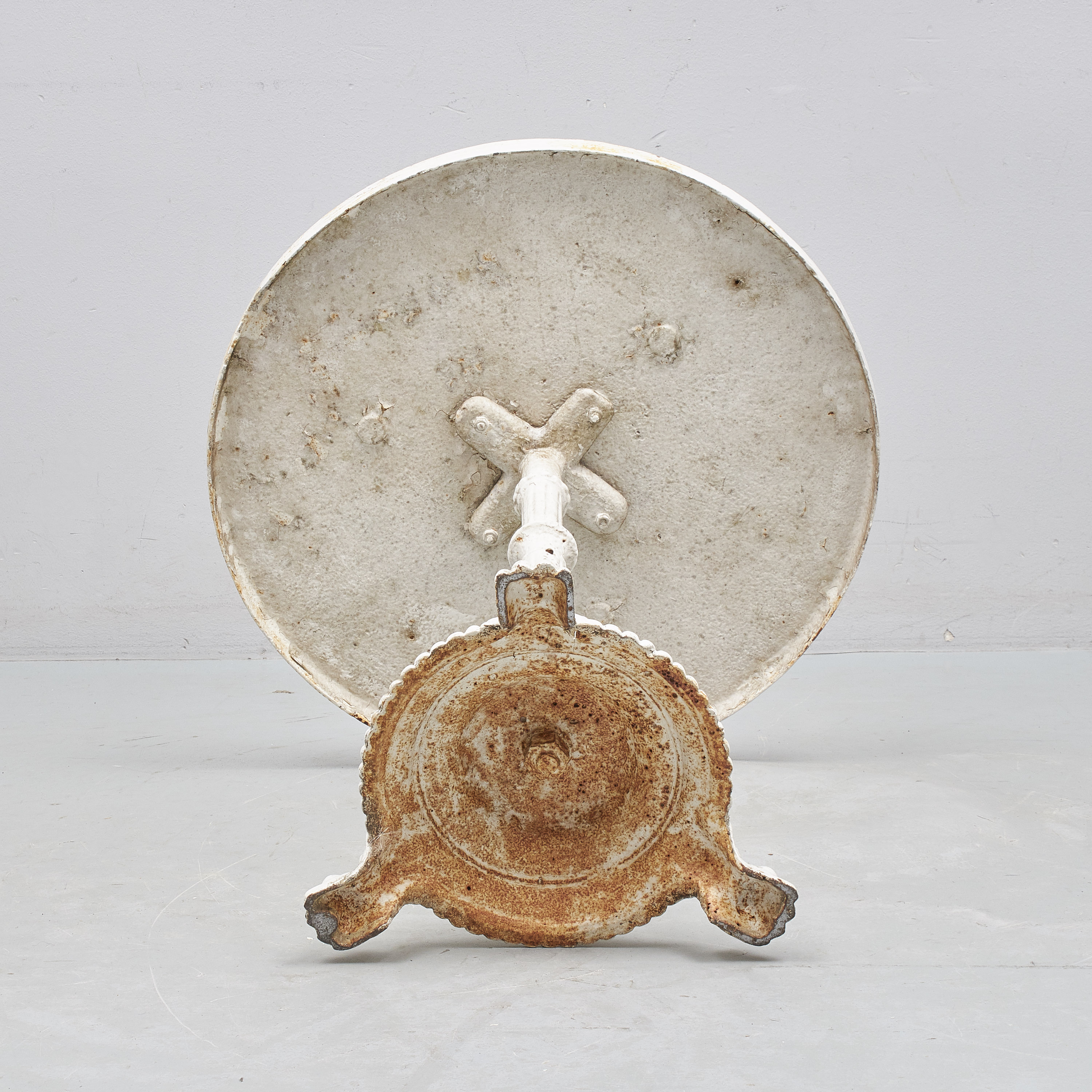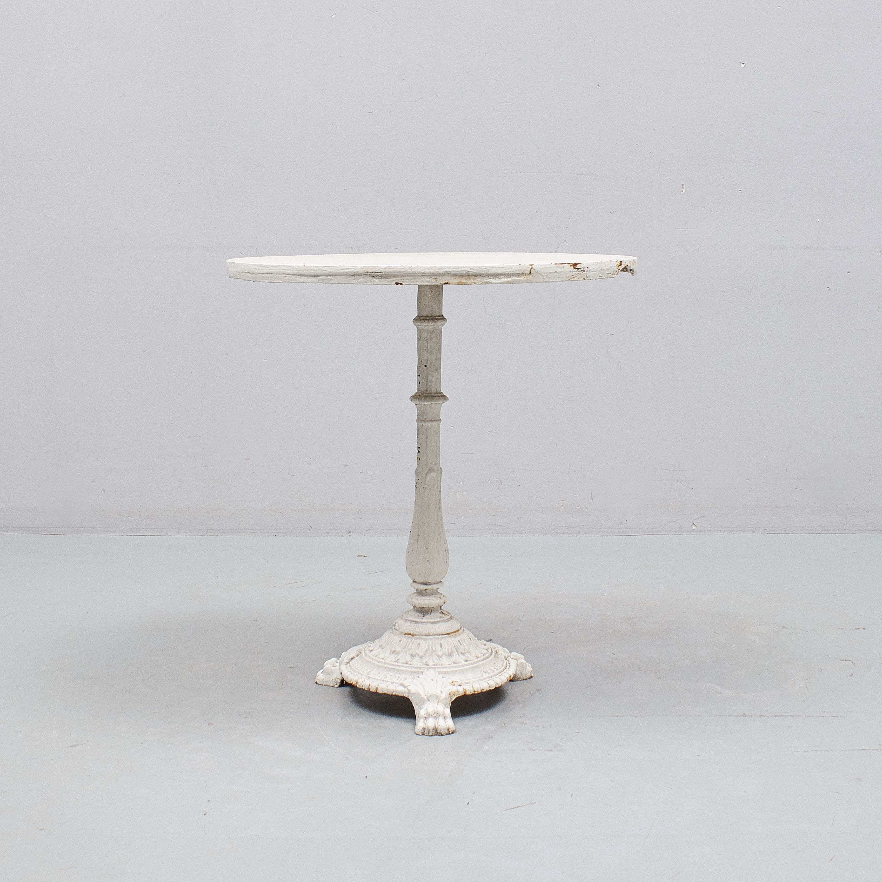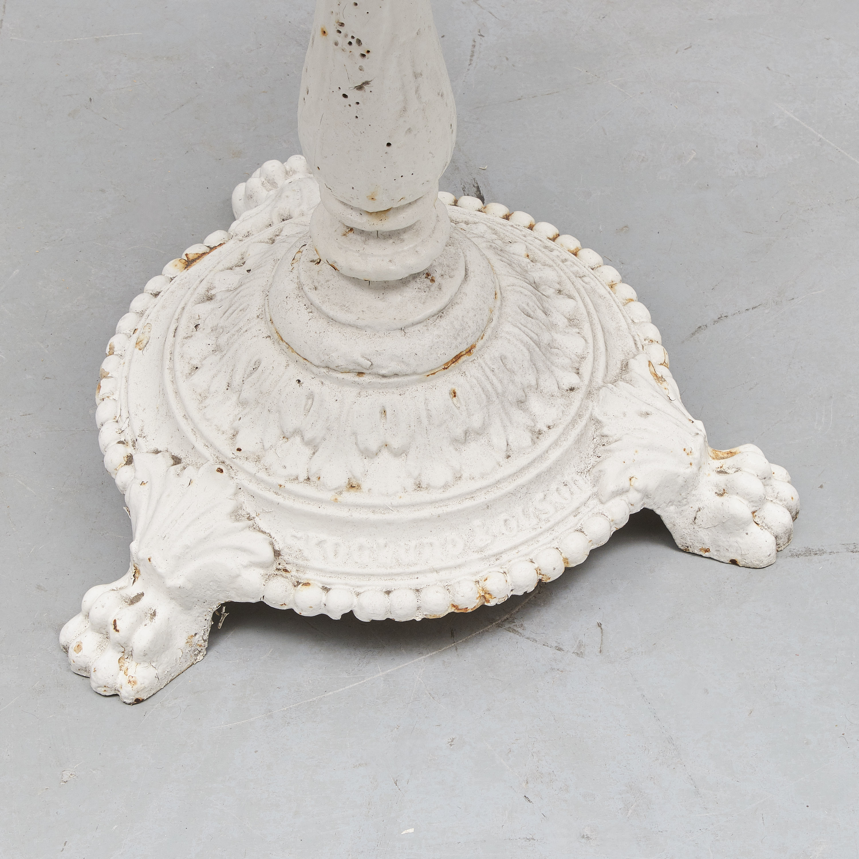 Märkt Skoglund & Olson Gefle. Vitmålat gjutjärn. Diameter: 65cm. Höjd: 72cm, slitage, skador