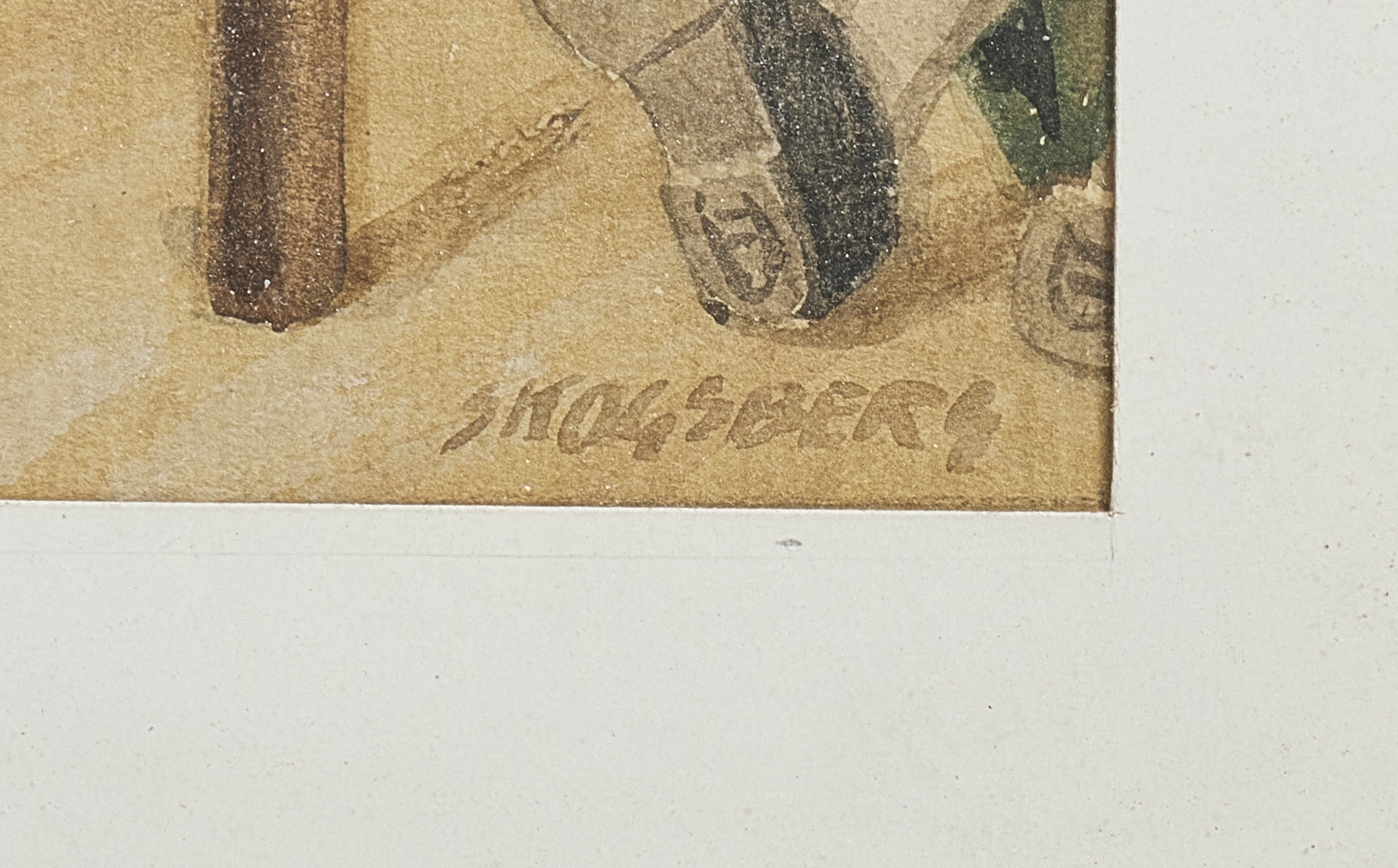 Harald Skogsberg (1889-1980), Sverige. "Skrivvakt". Signerad. Blandteknik, bildmått: 25x21 cm, yttermått inklusive ram: 37x33 cm