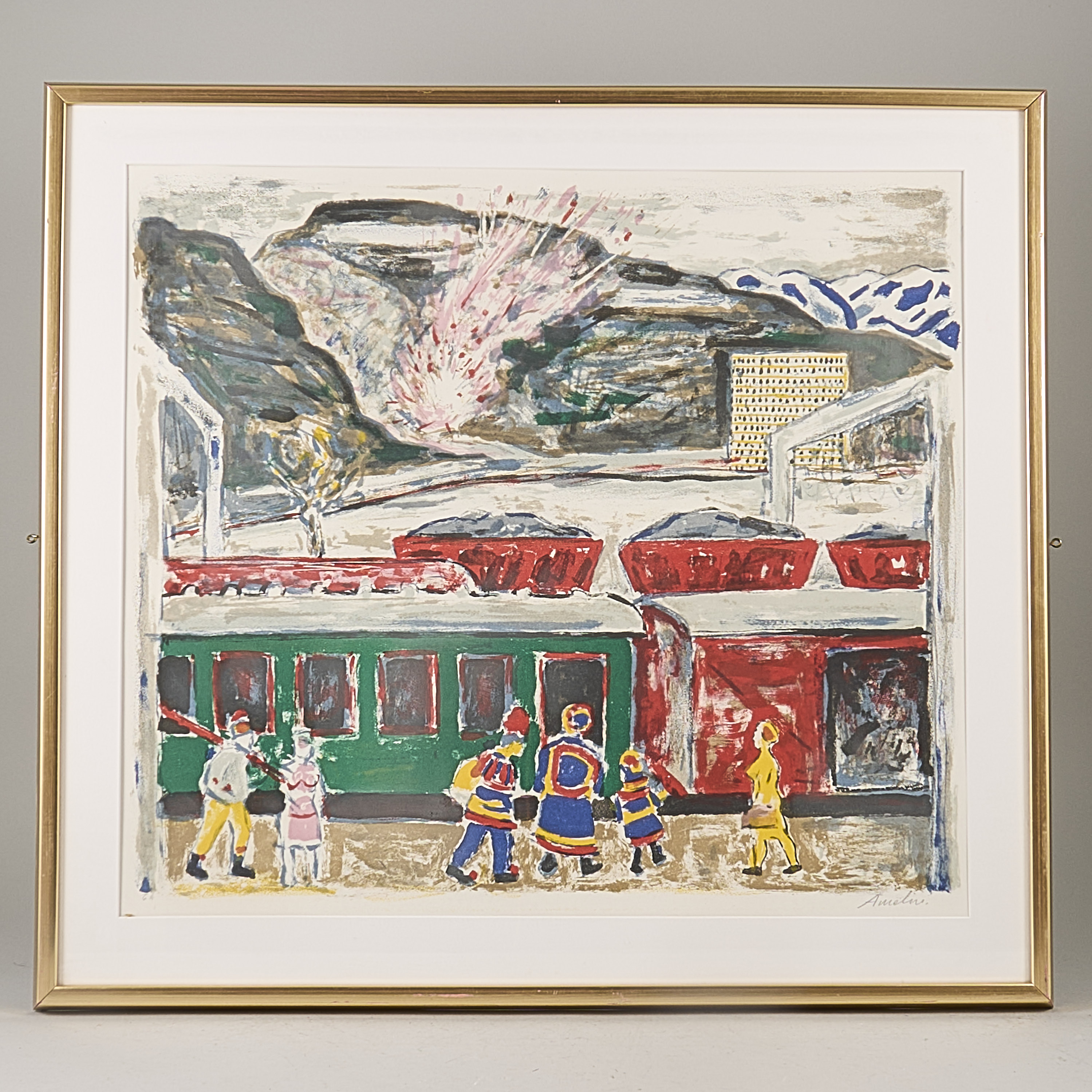 Albin Amelin (1902-1975), Sverige. EA upplaga, mm; 58x64 cm, färglitografi, yttermått inklusive ram: 72x79 cm. Signerad