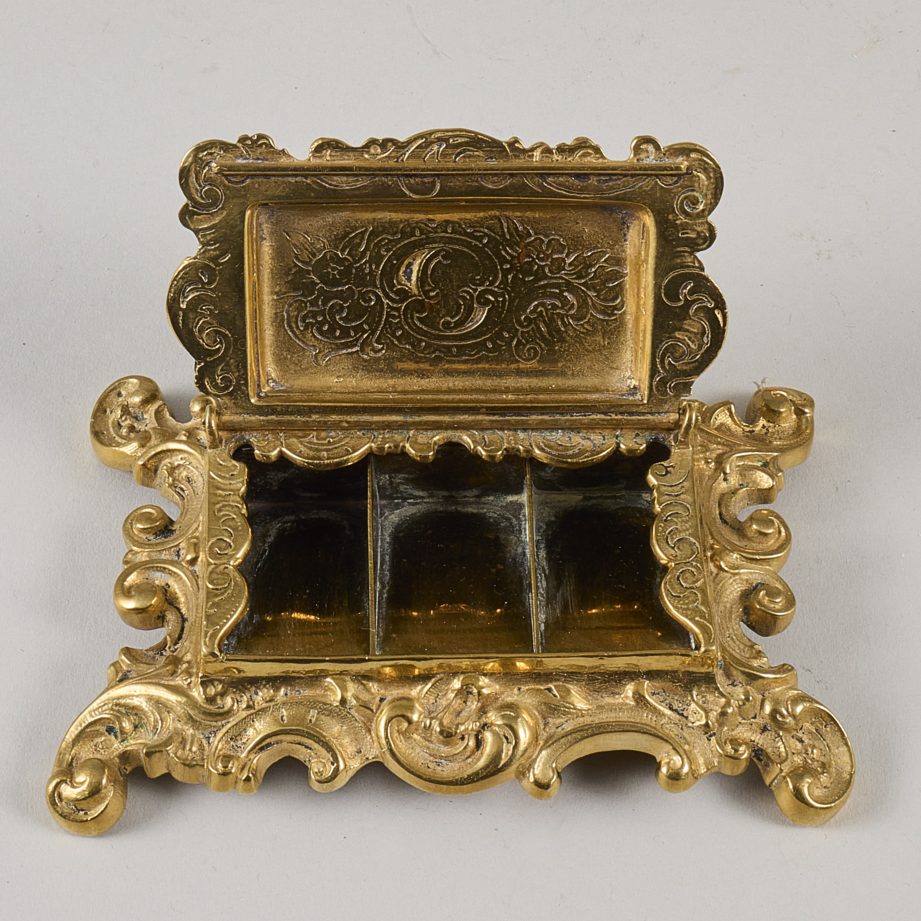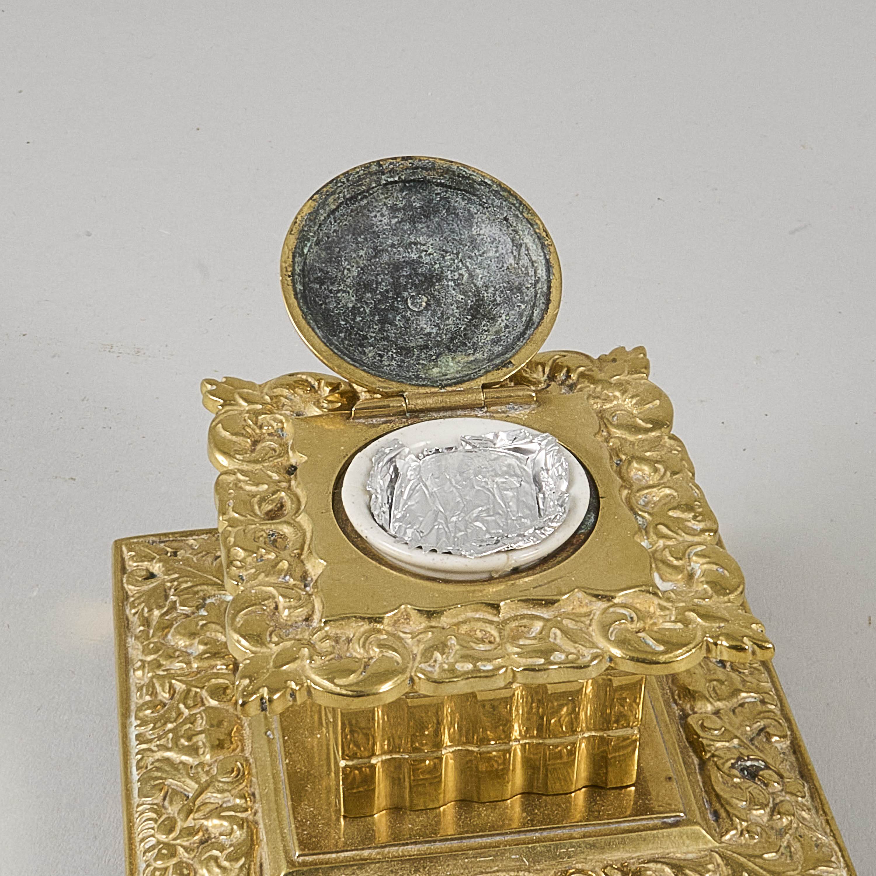 Liknande föremål: bläckhorn frimärkshållare gyllene, guldfärgad metall mässing