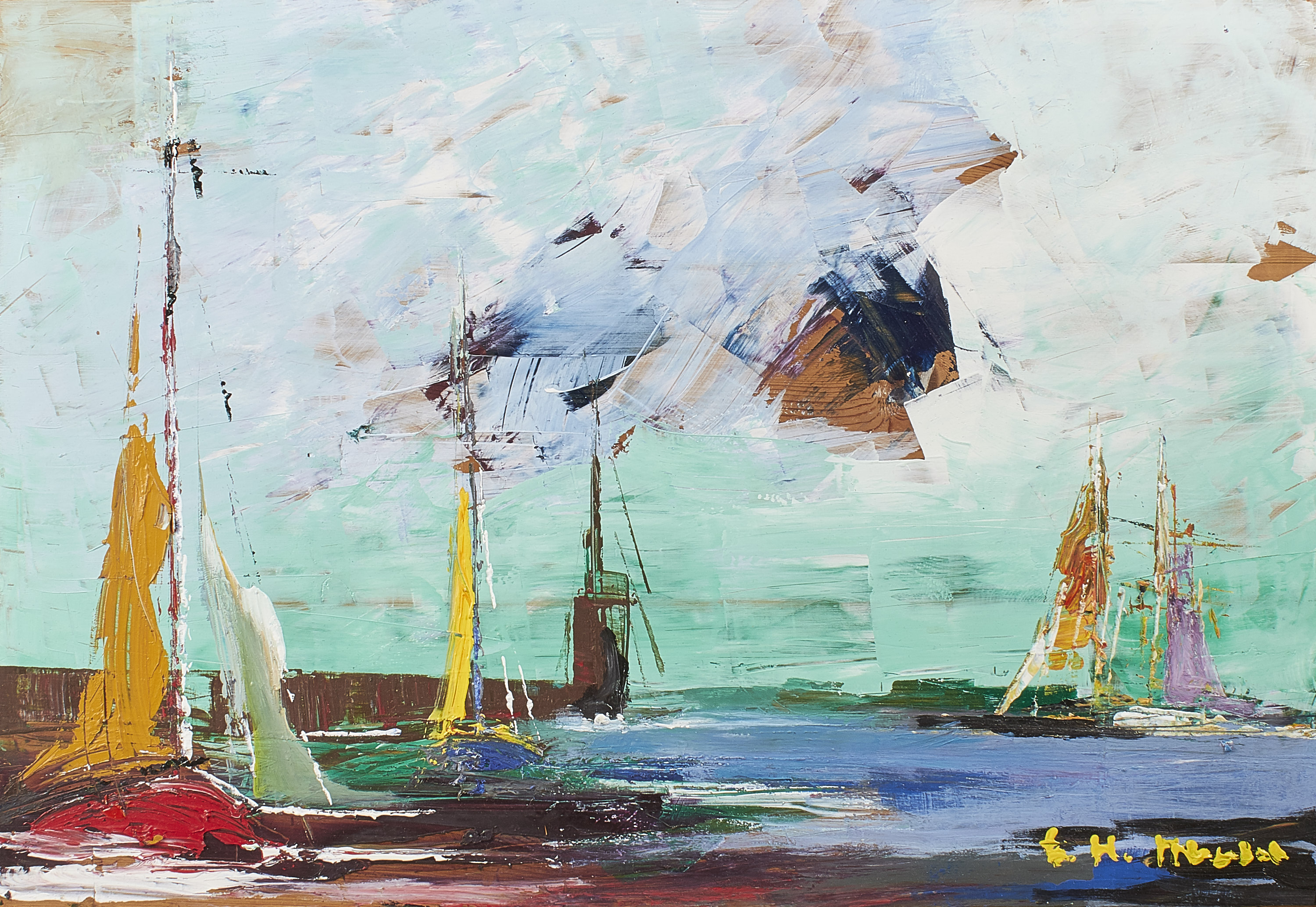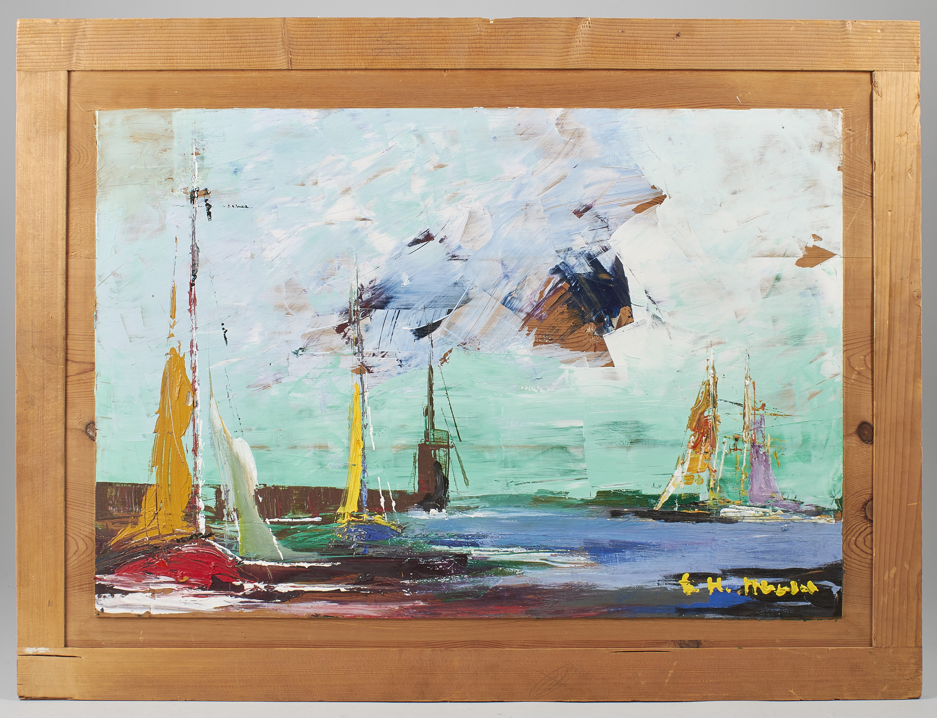 Helmut Mantel (1925-1979), Tyskland. Segelbåtar. Olja på pannå, 45x65 cm