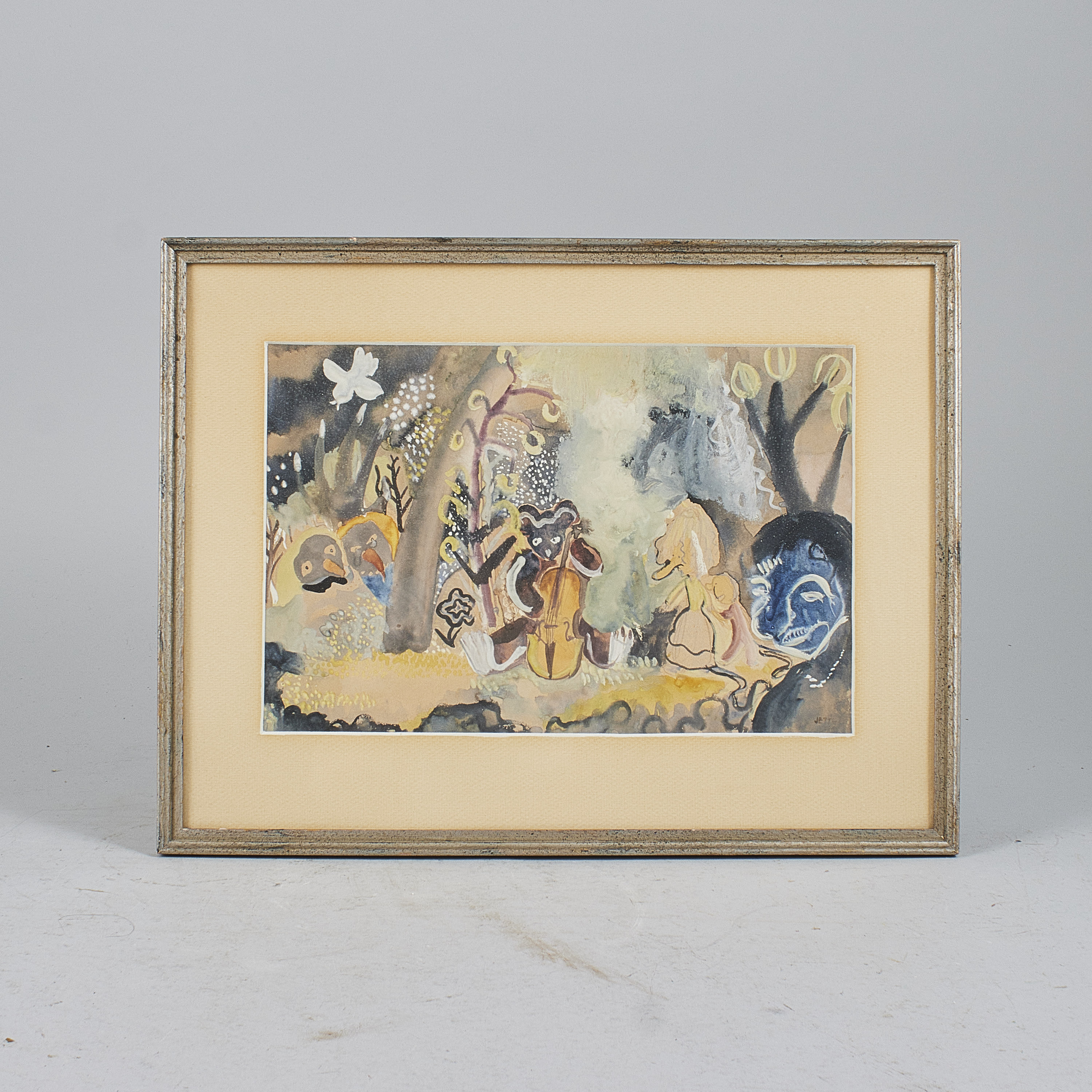 Jette Stoltz (1923-2010), Sverige. Troll i skog. Signerad, akvarell, 22x32 cm, yttermått inklusive ram: 34x44 cm