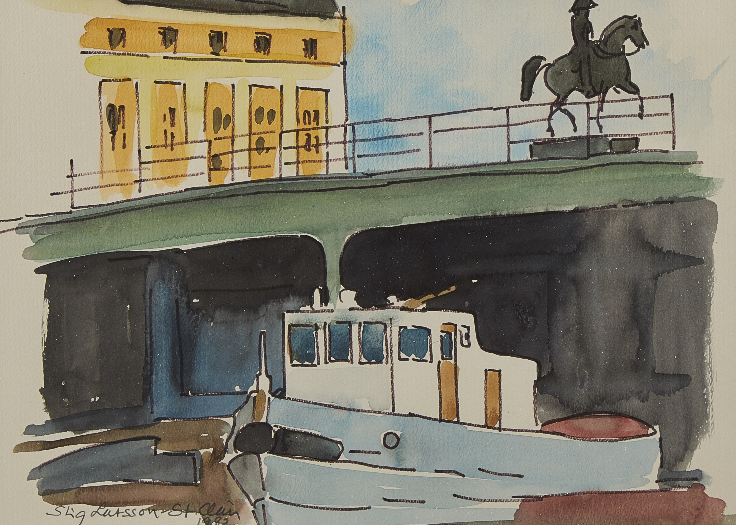 Stig Larsson-St Clair (f. 1918), Sverige. Slussen, Stockholm. Signerad. Motivet: 22x31 cm