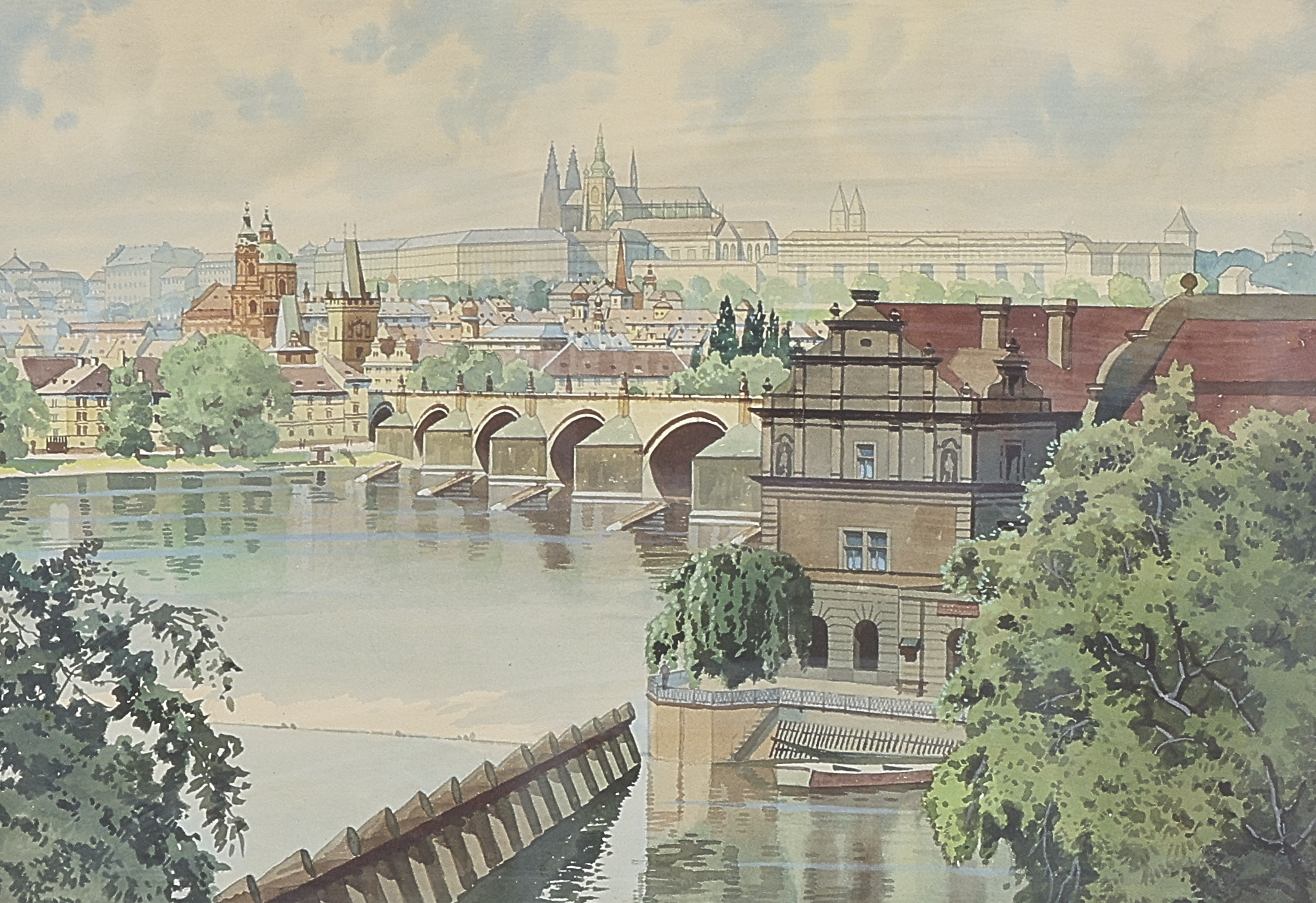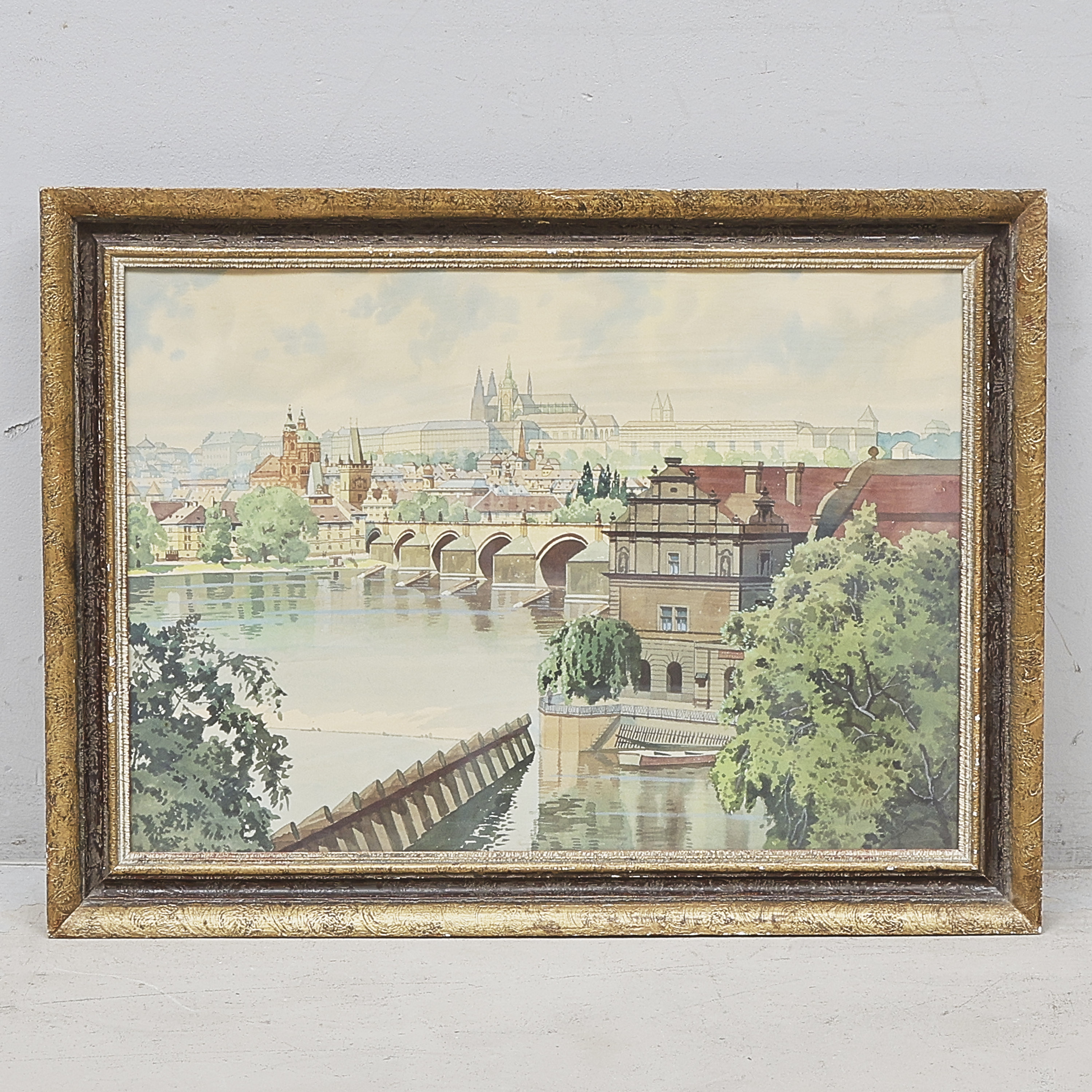 Oidentifierad konstnär. Signerad, akvarell, otydlig signatur, motiv av Prag, 48x68 cm, yttermått inklusive ram: 61x81 cm