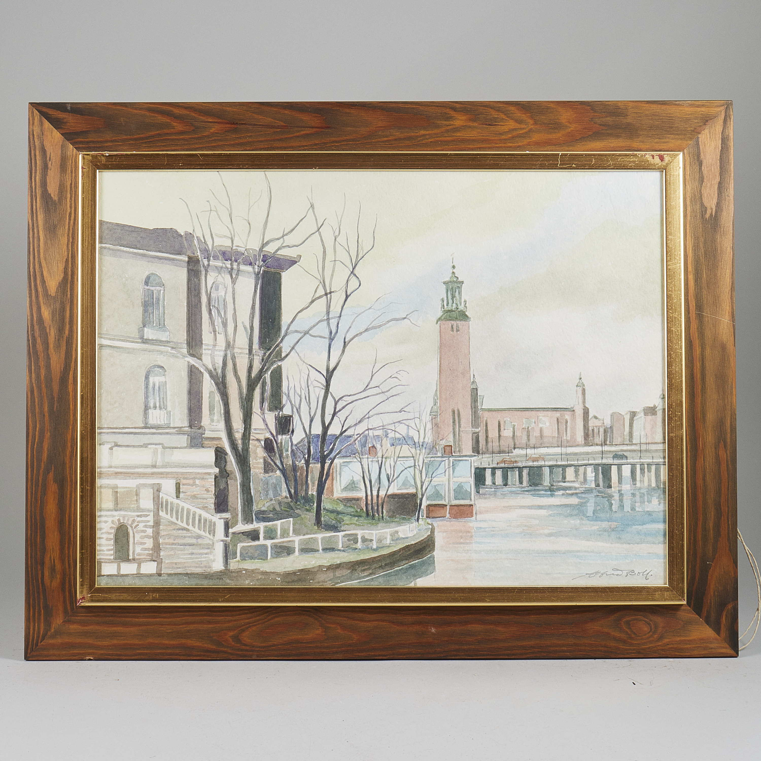 Alfred Boll, Stockholmsmotiv, Signerad, 43x59 cm, yttermått inklusive ram: 58x74 cm, akvarell