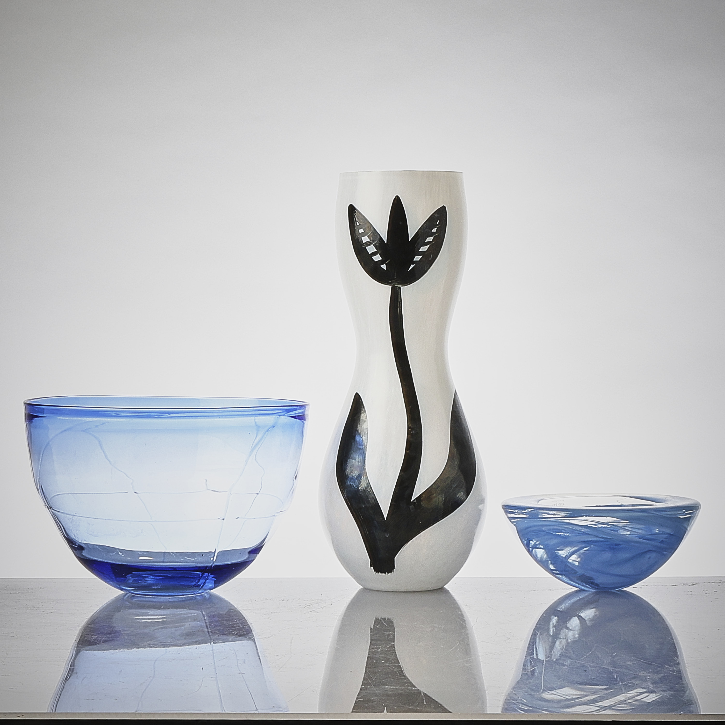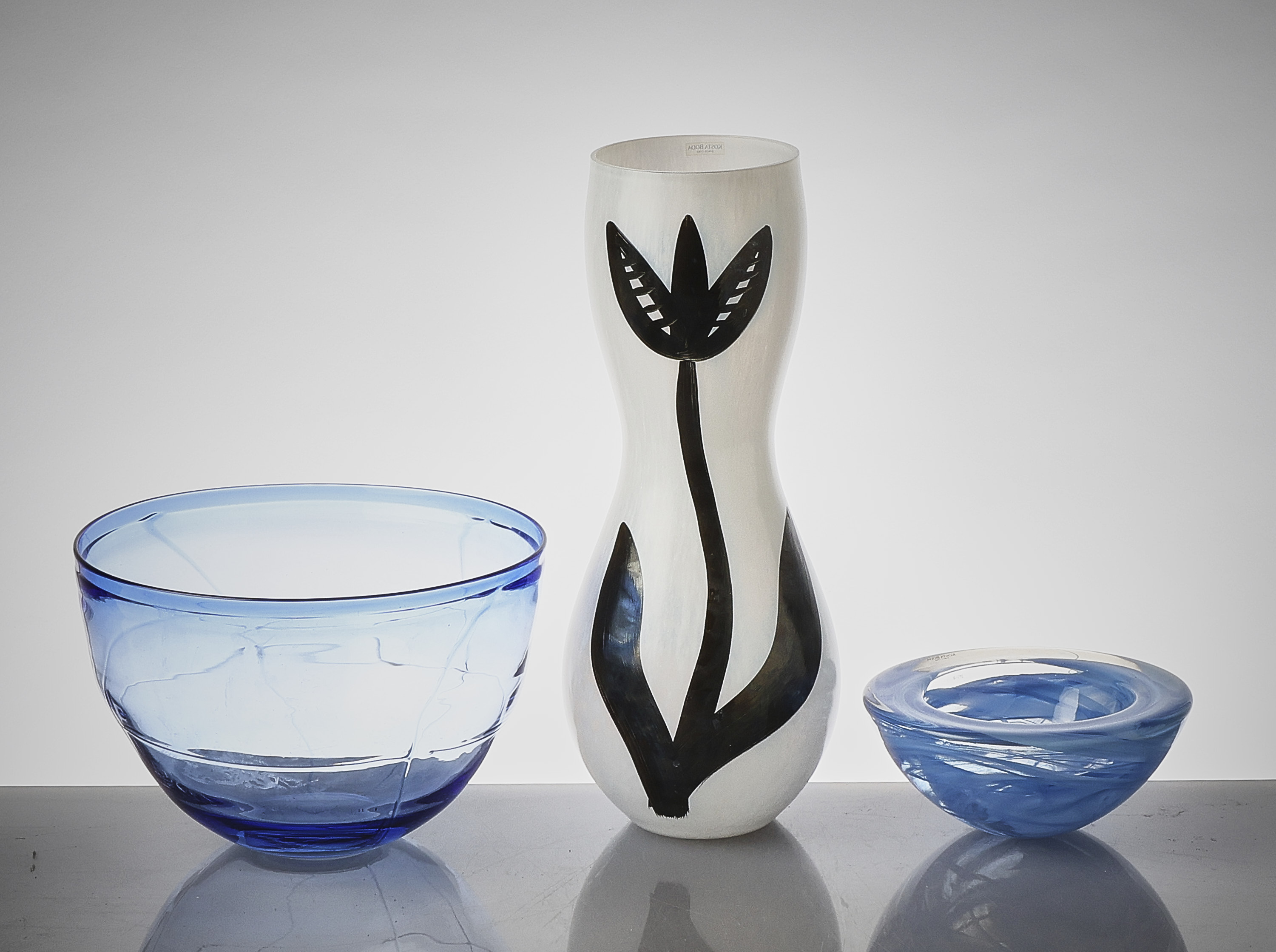 2 st + vas, Kosta Boda. Höjd: 7-37 cm