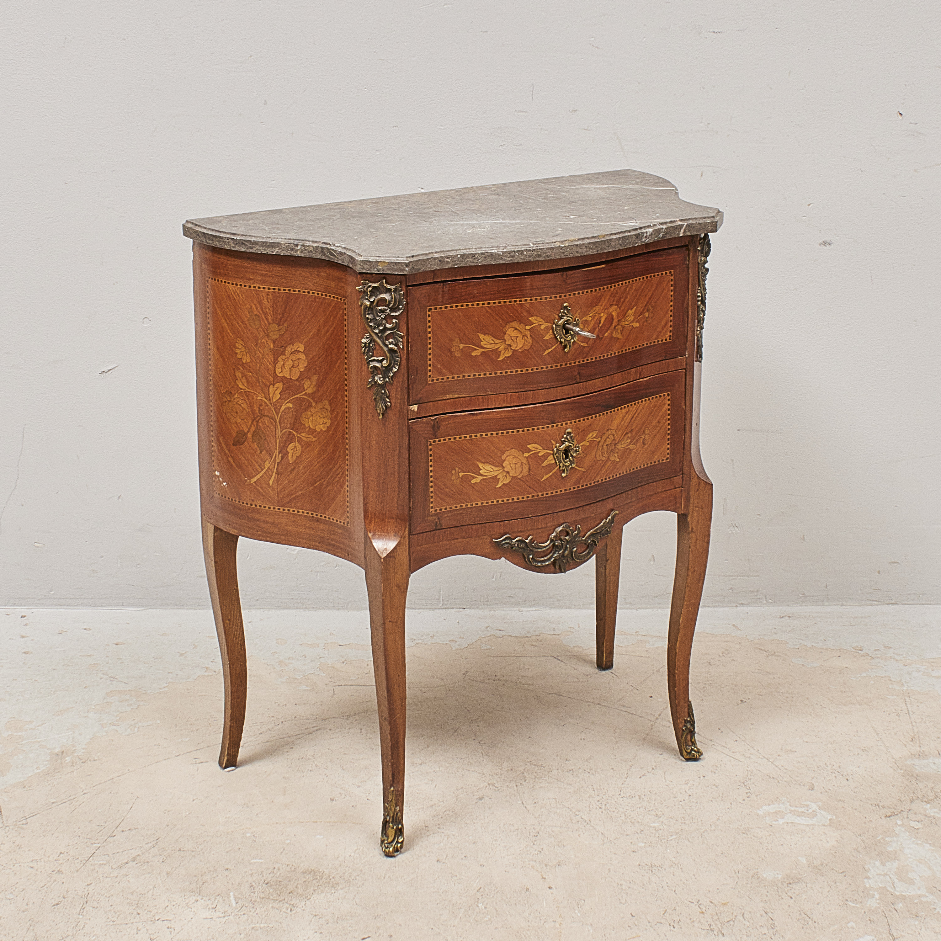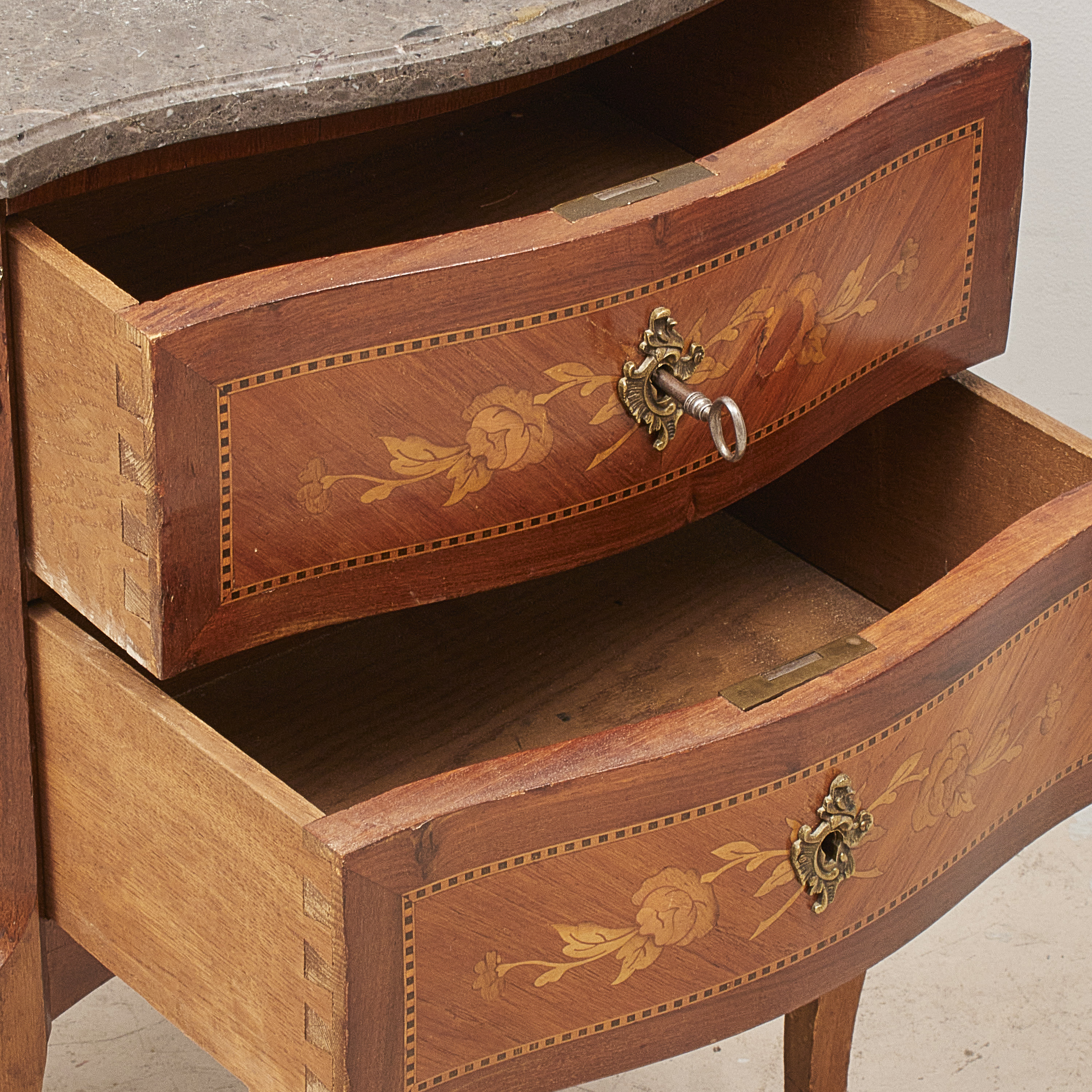 Louis XVI-stil, stenskiva. Bredd: 68 cm, djup: 36 cm, höjd: 74 cm, nyckel
