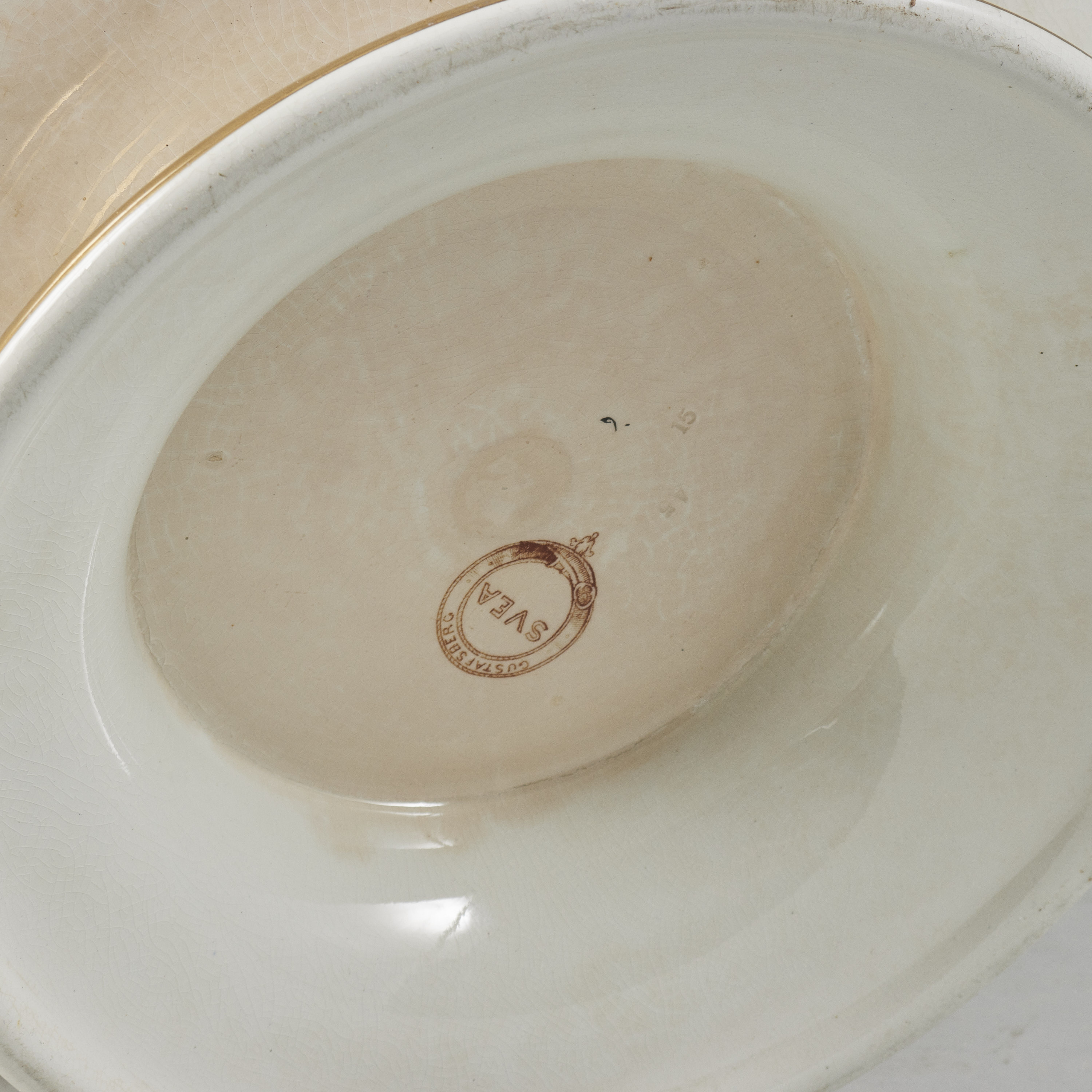 Gustavsberg, Svea. Diameter: 39, höjd: 20 cm, slitage