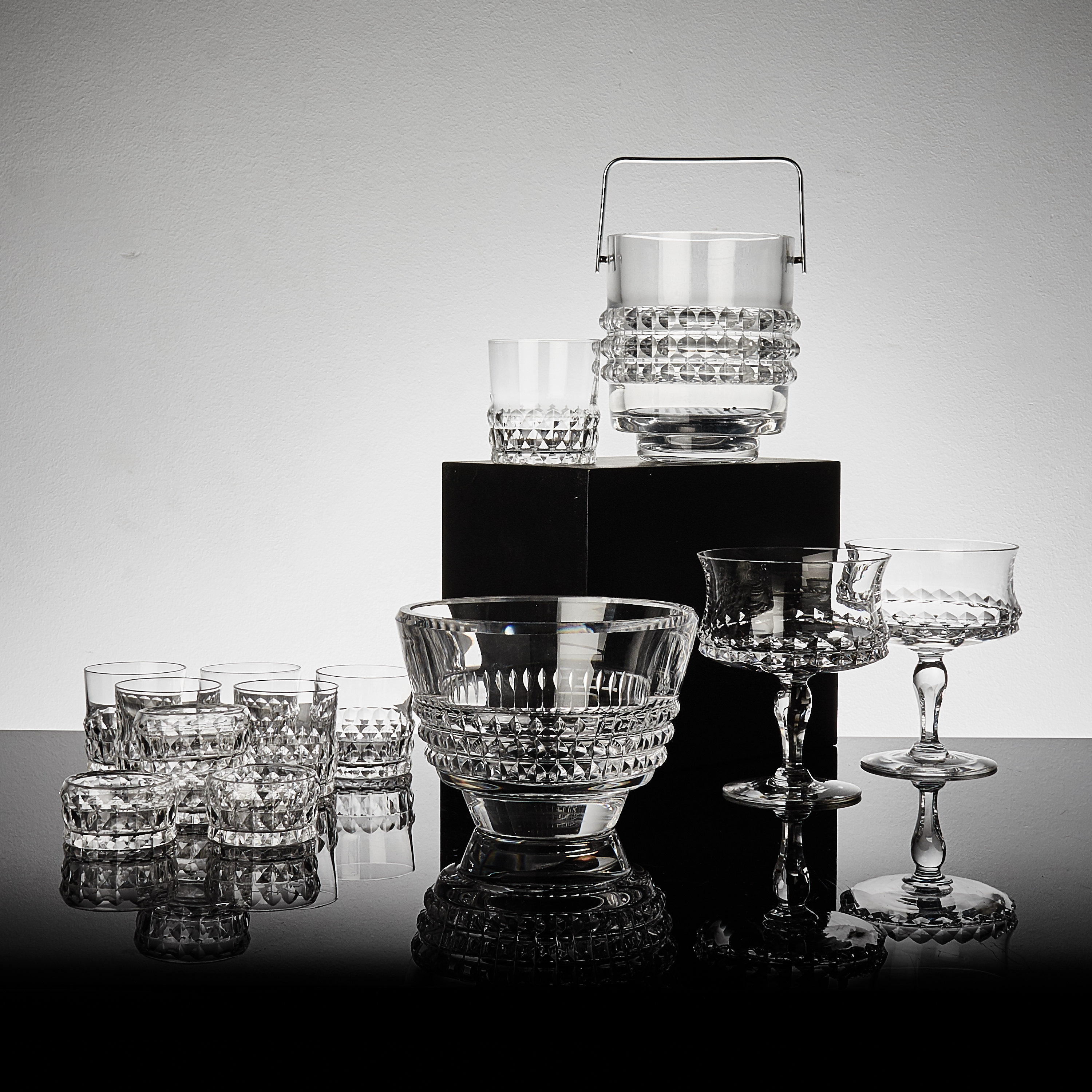 14 delar, 12 st Orrefors, Silvia, 2 ishinkar Skruf Edenfalk