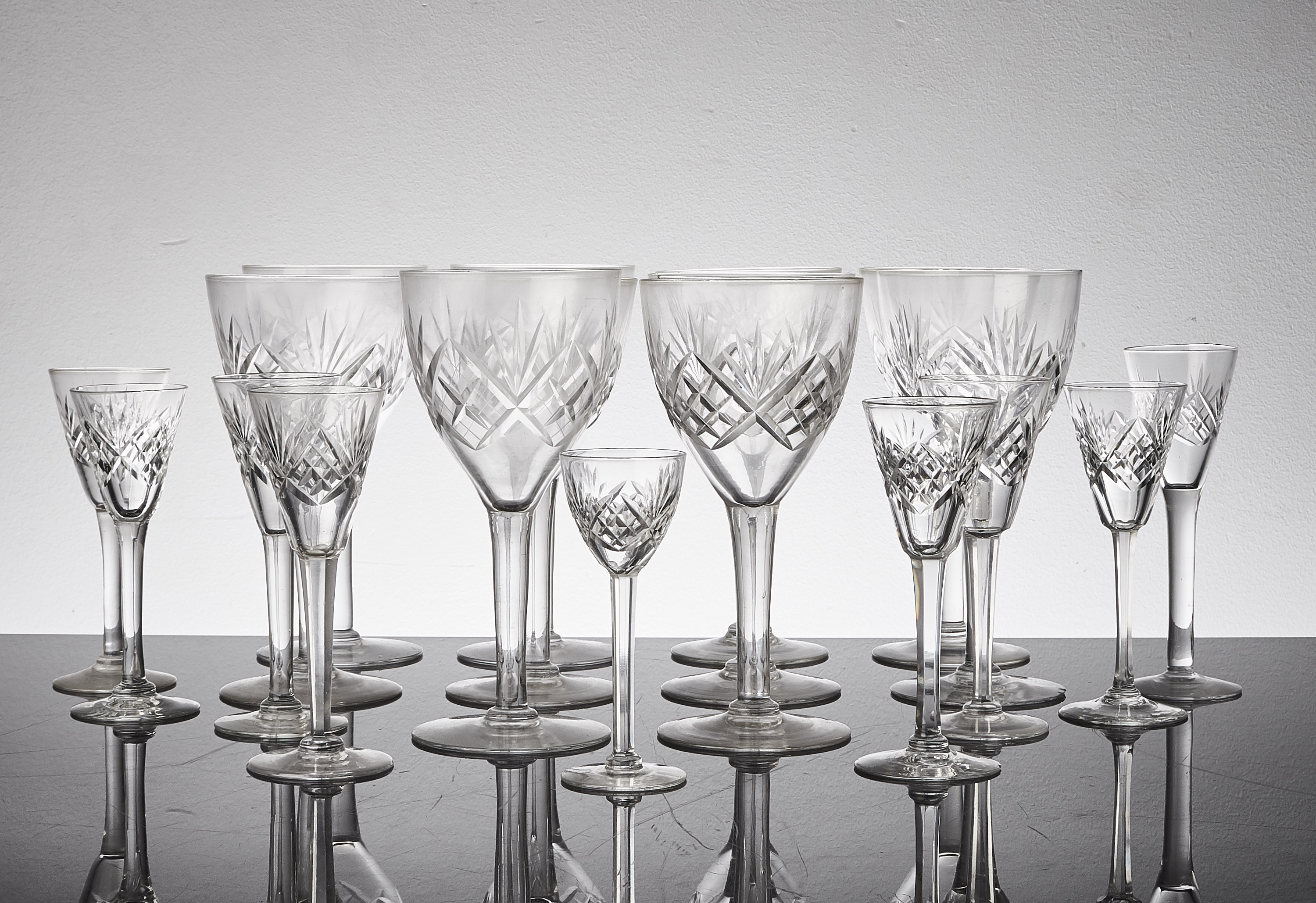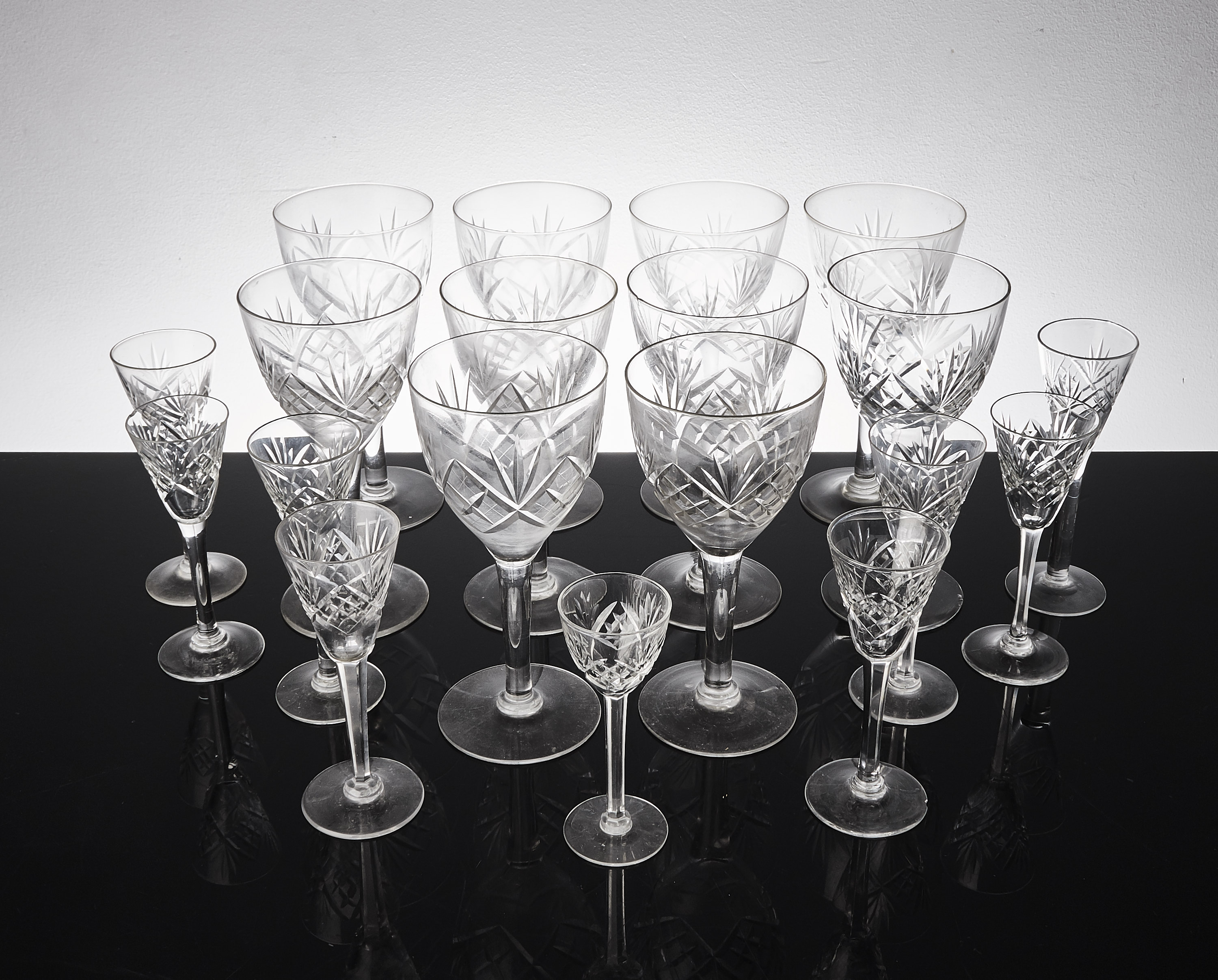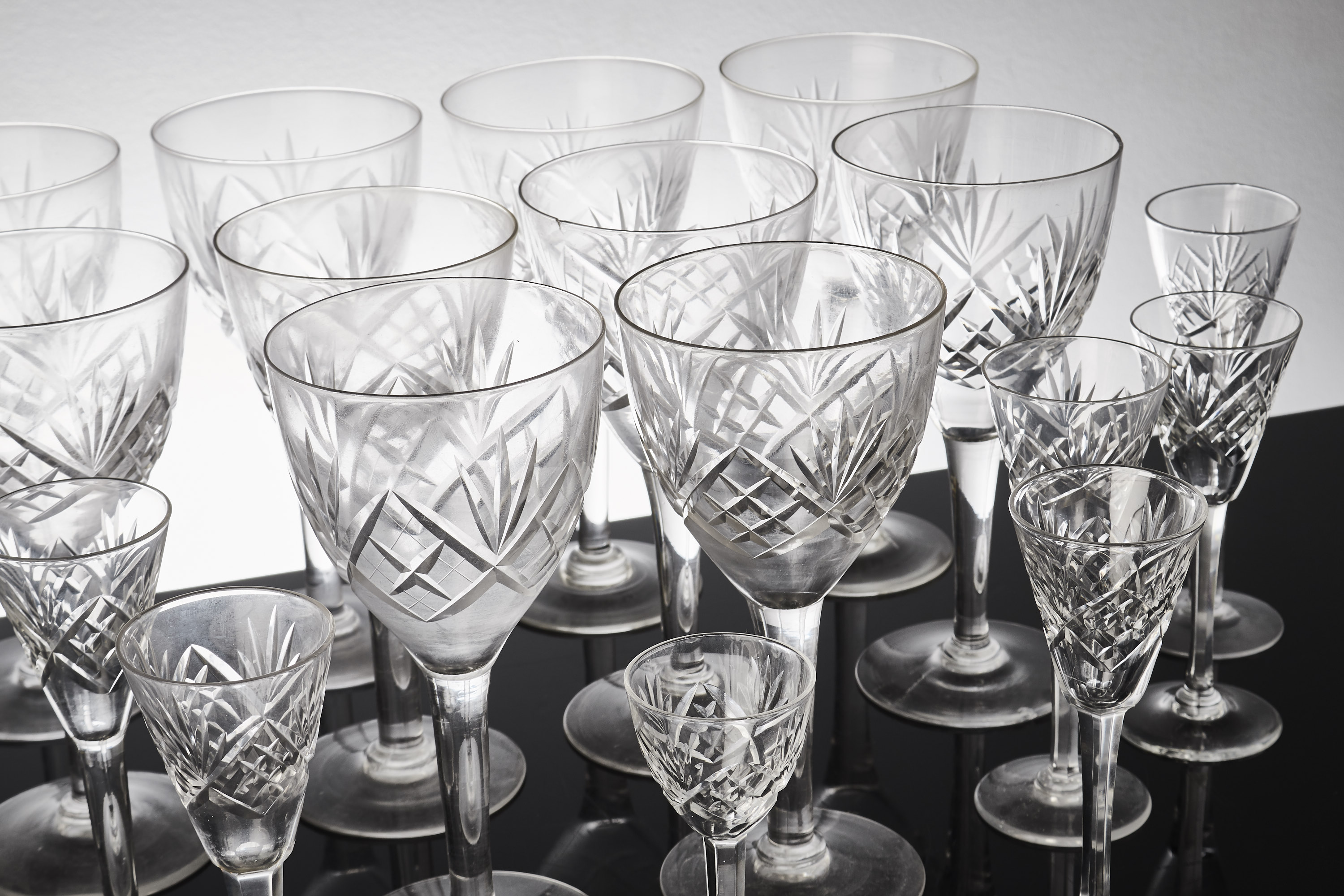 Ekenäs, 29 delar, rutslipat glas, 7 vinglas, 11 se..//