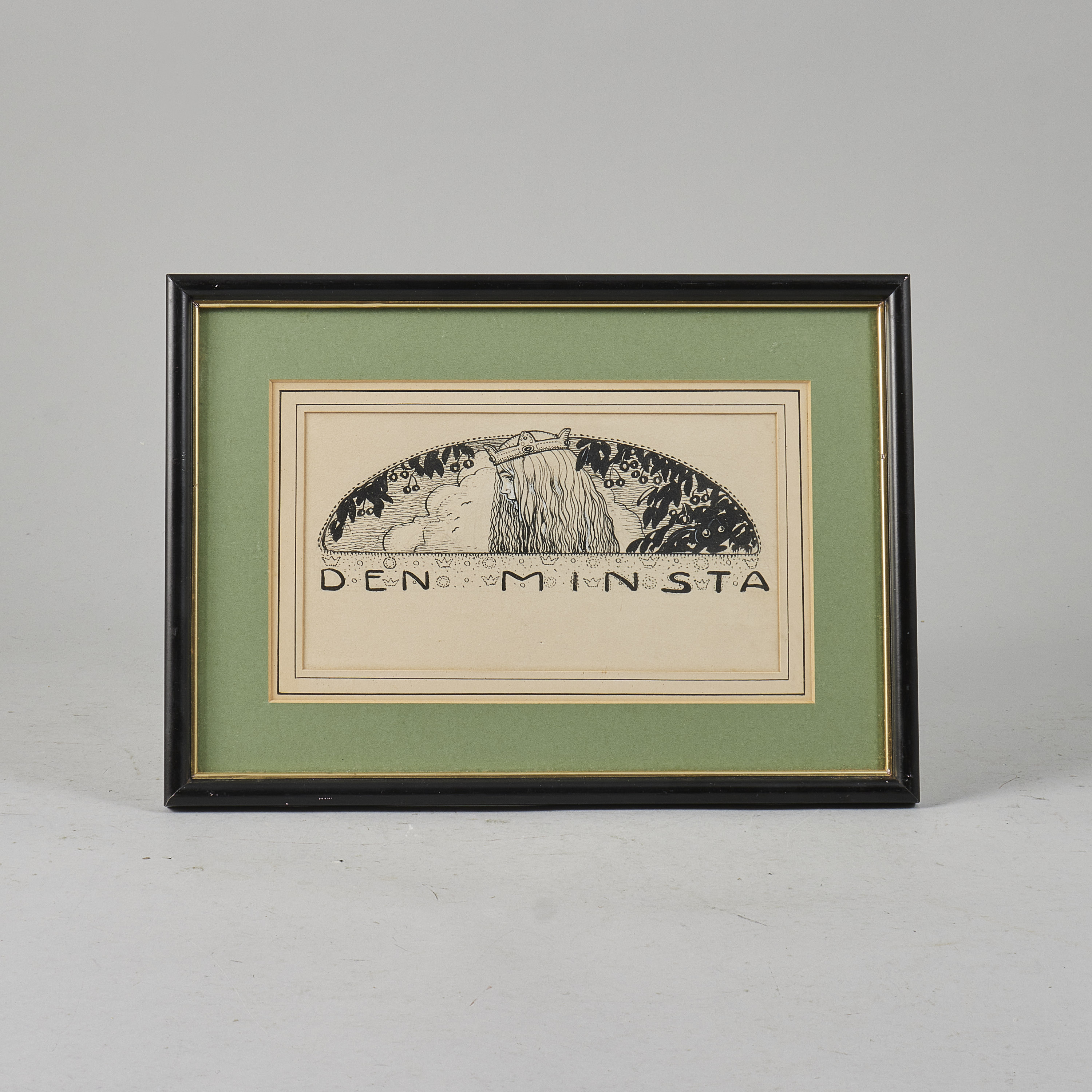 John Bauer (1882-1918), Sverige. "Den minsta". Ej signerad. Litt: se Nyblom, Helena "Den Minsta". Tusch och täckvitt. Blandteknik, bildmått: ca 7,5x19,5 cm, yttermått inklusive ram: 22x32 cm