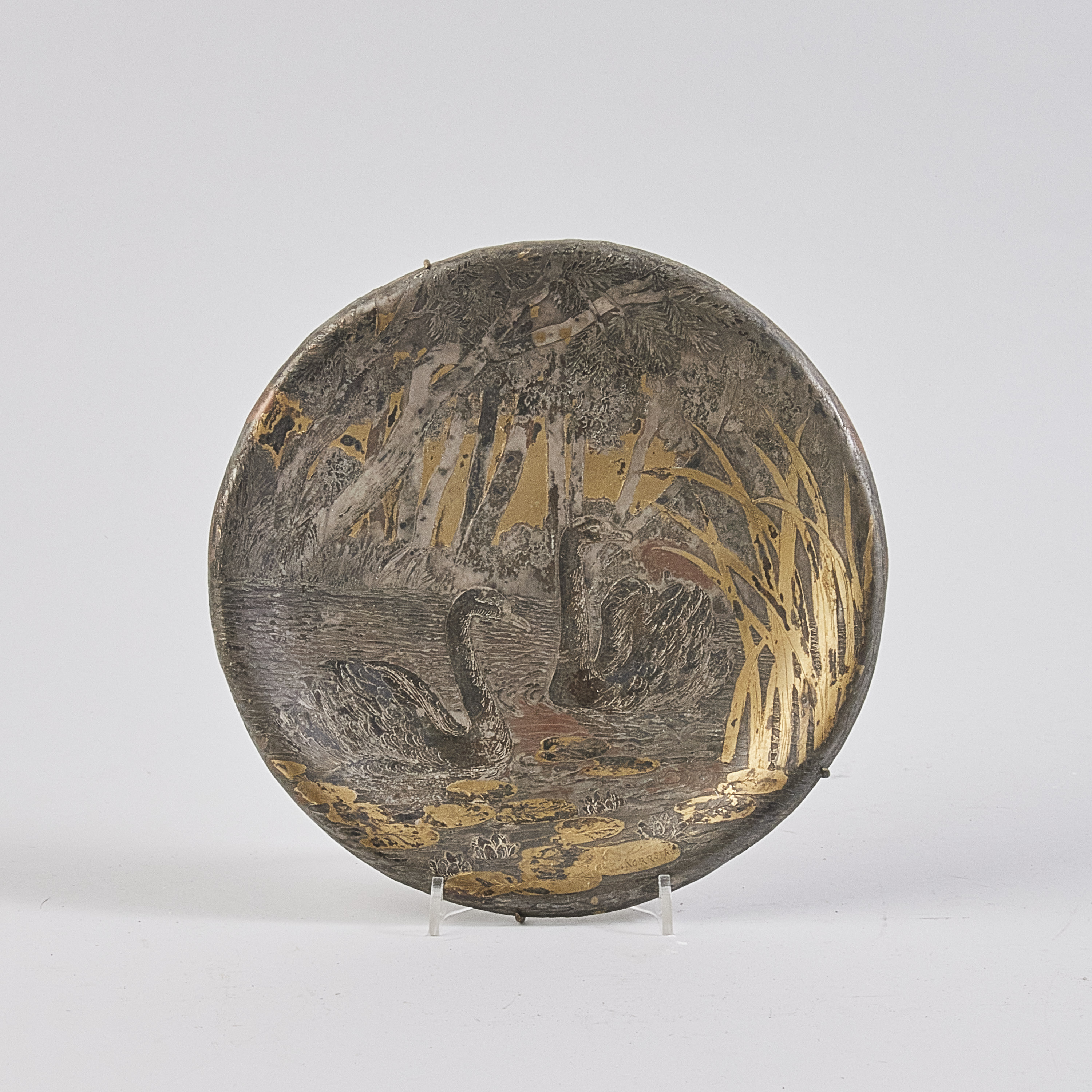 Liknande föremål: fat fat med ståletsning hjalmar norrström konsthantverk motiv med två svanar skulptur svensk konst svensk konstnär svenska konstnärer sverige