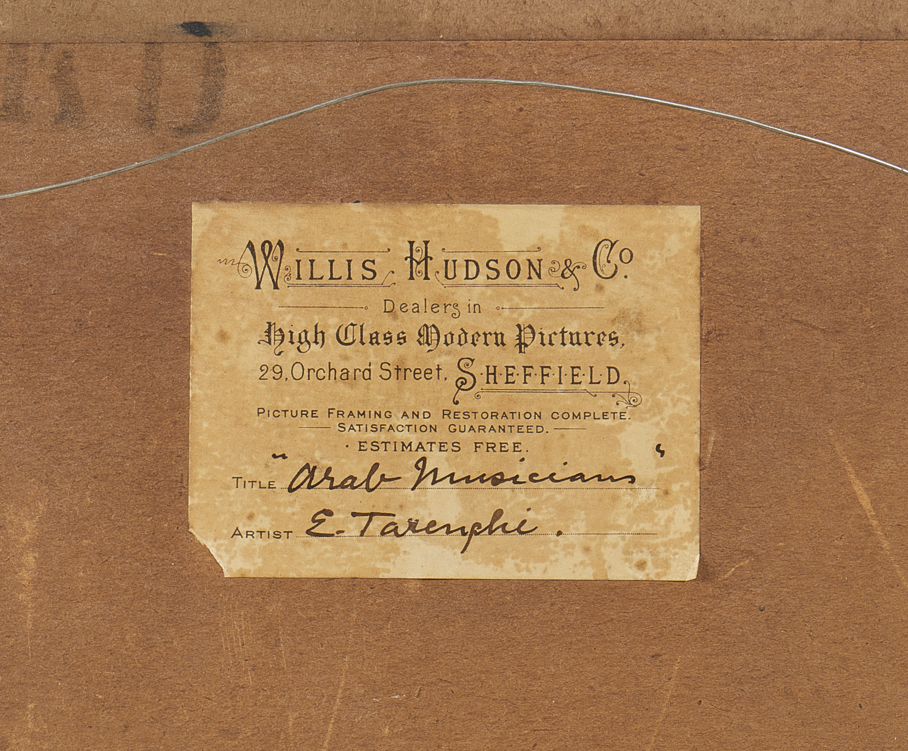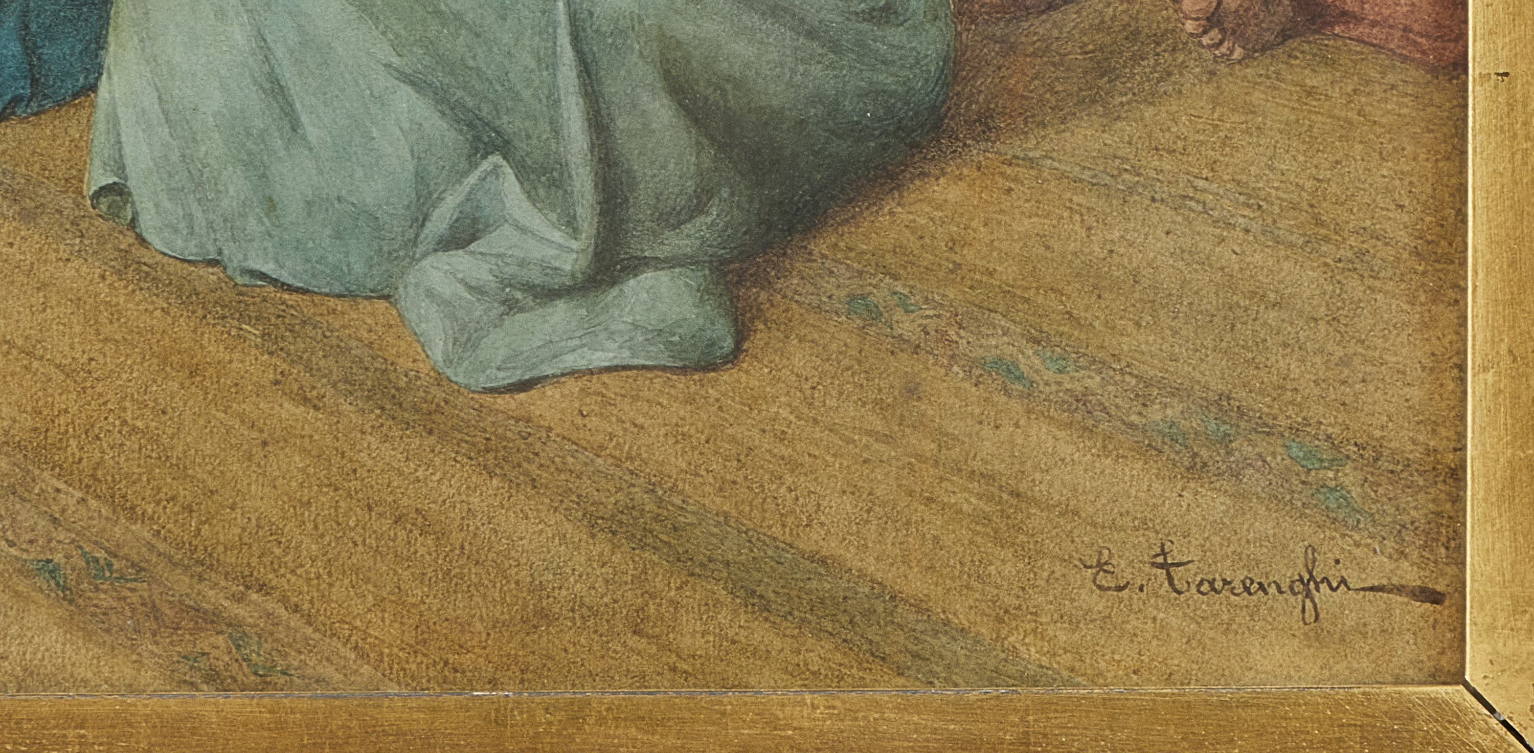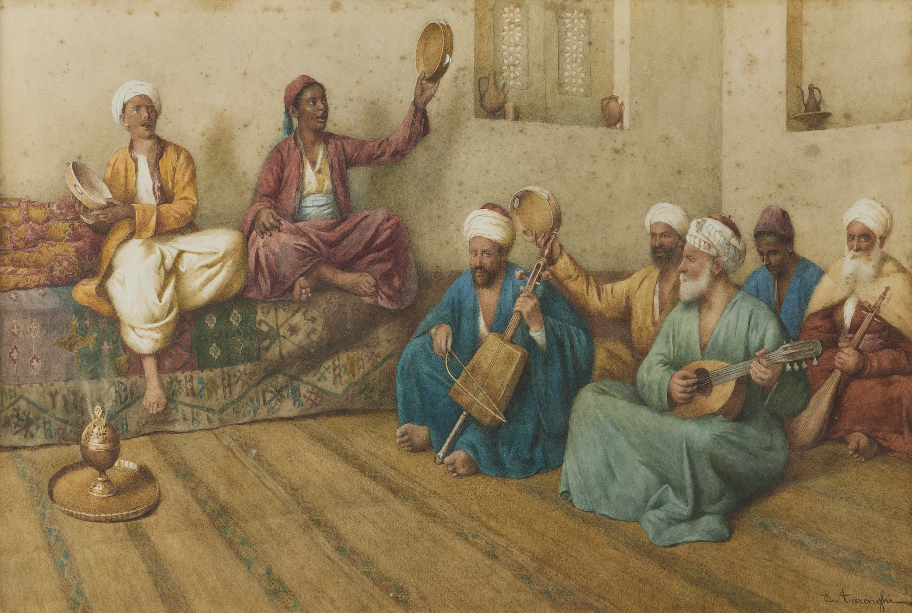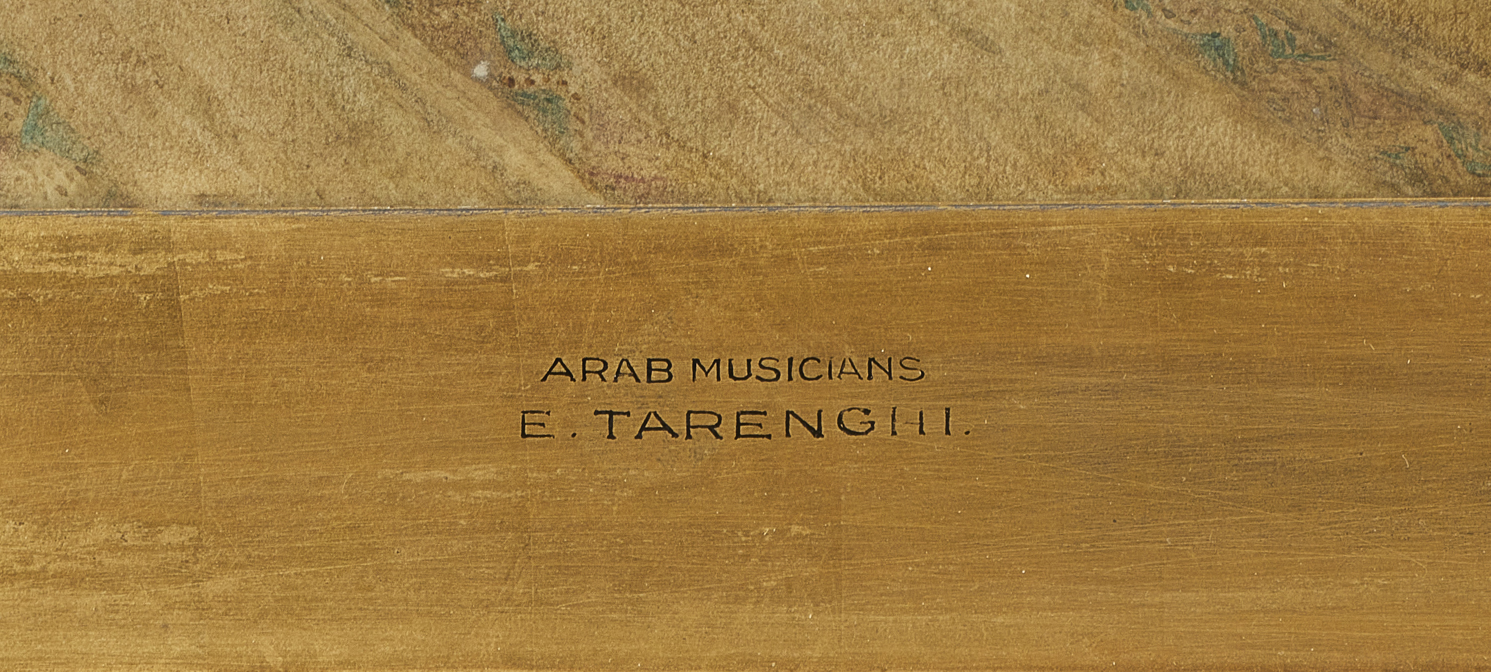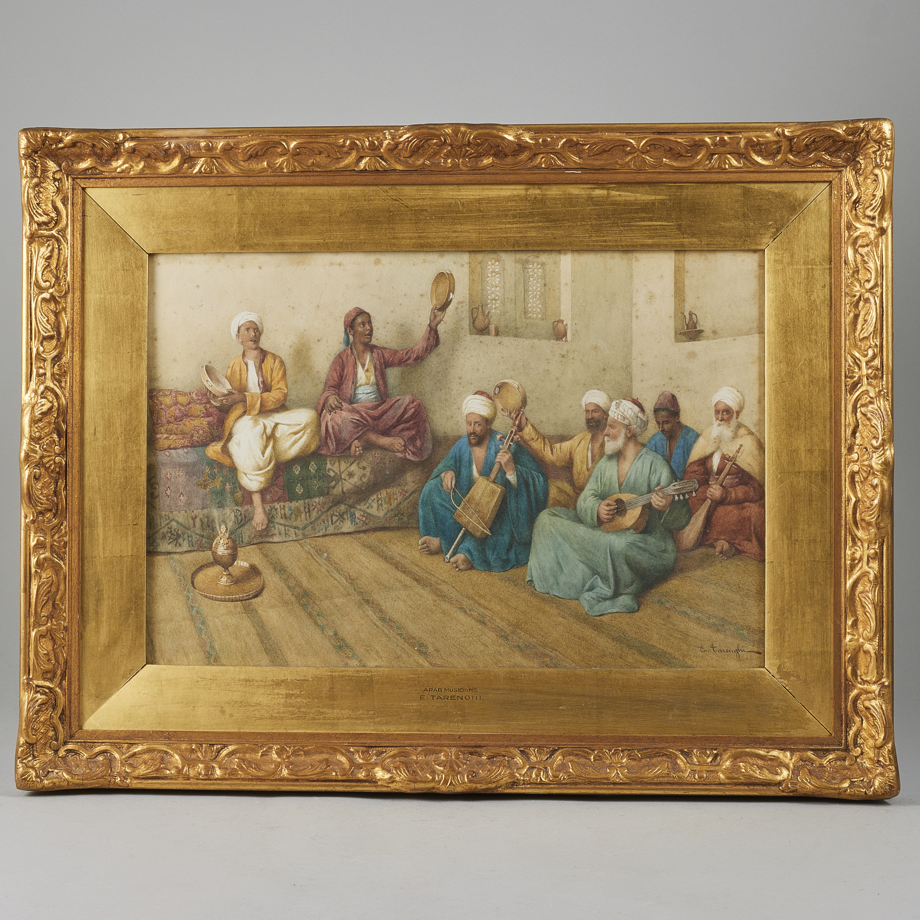 Enrico Tarenghi (1848-1938), Italien. Musikanter. Signerad. Akvarell, 36x54cm, yttermått inklusive ram: 57x75cm, fuktskador, missfärgningar