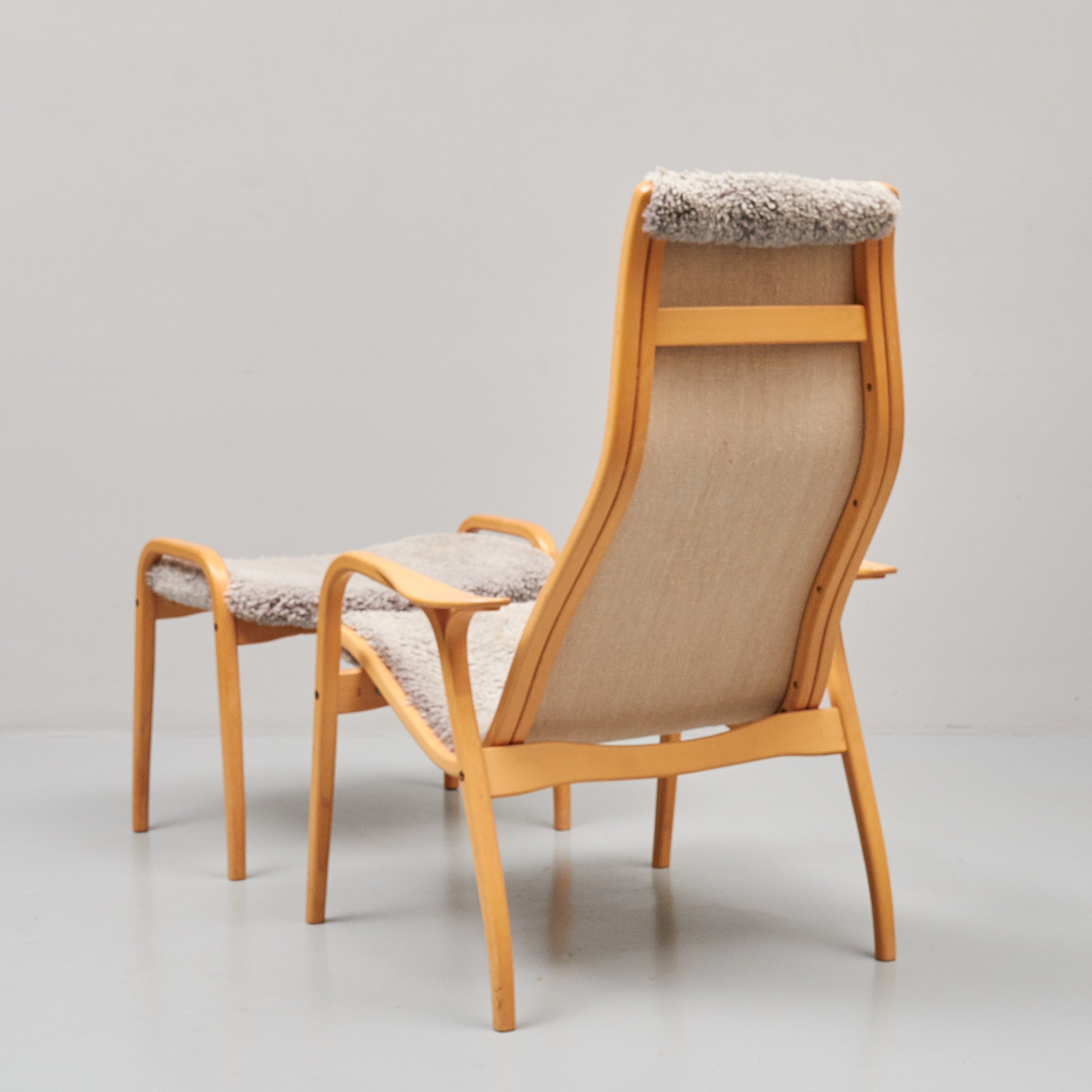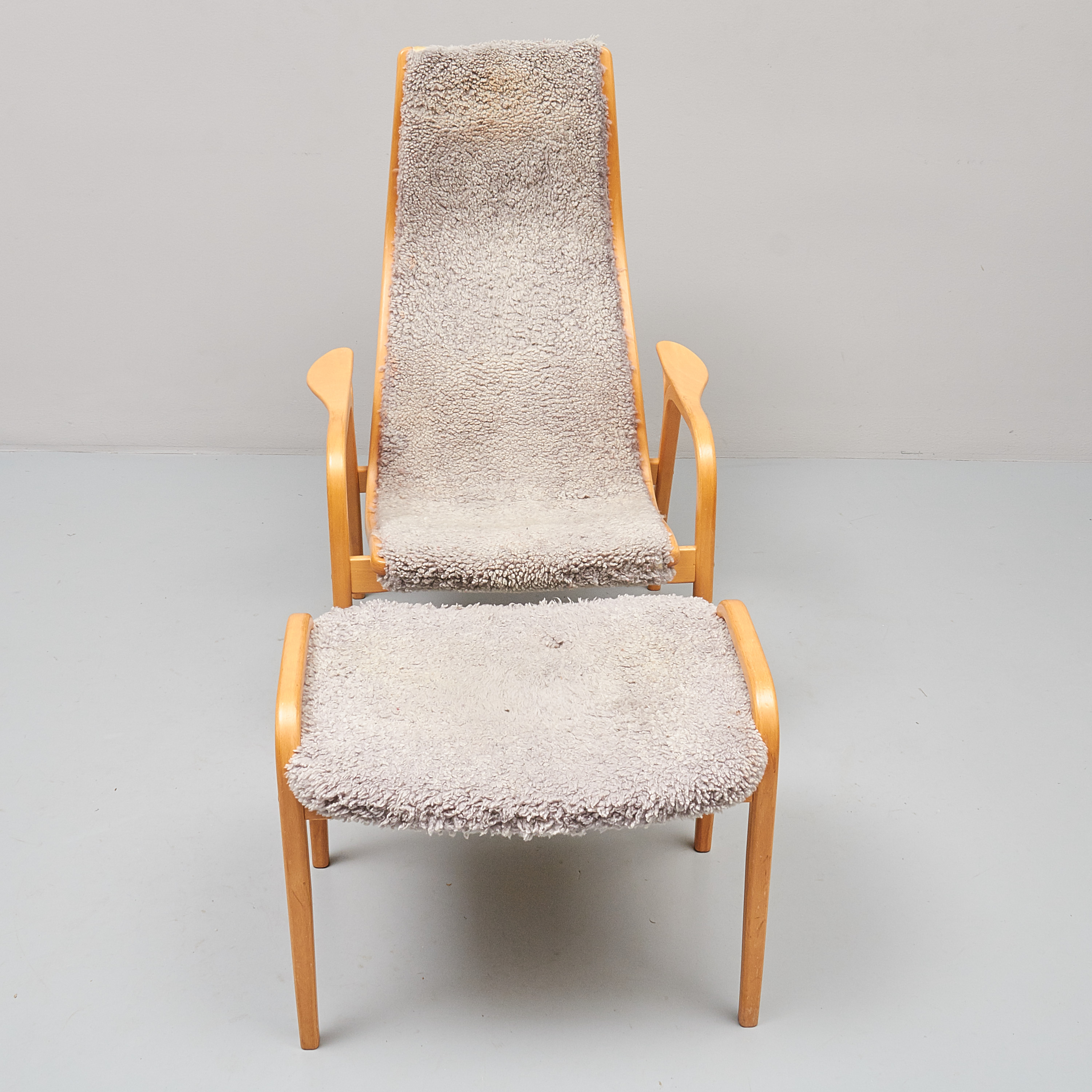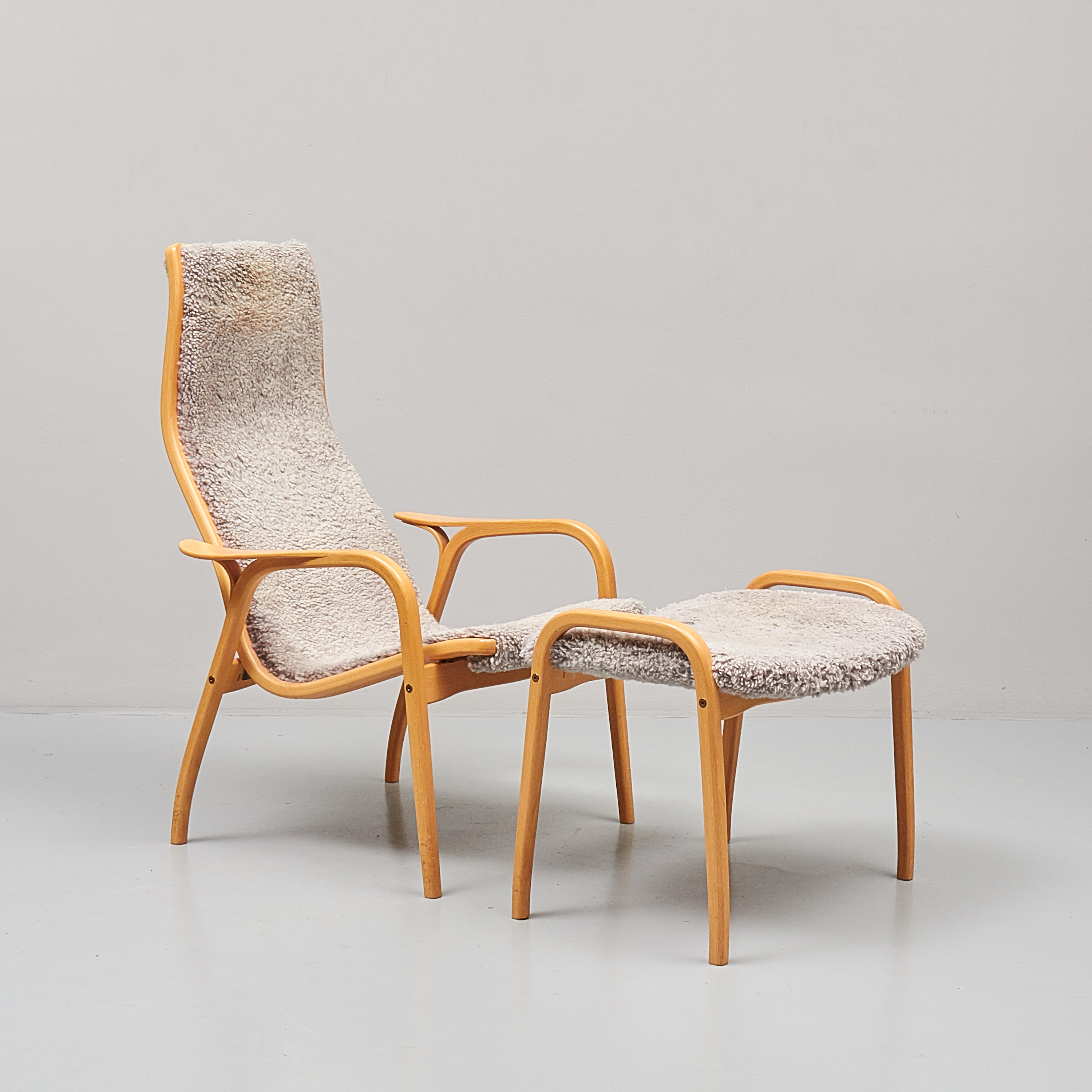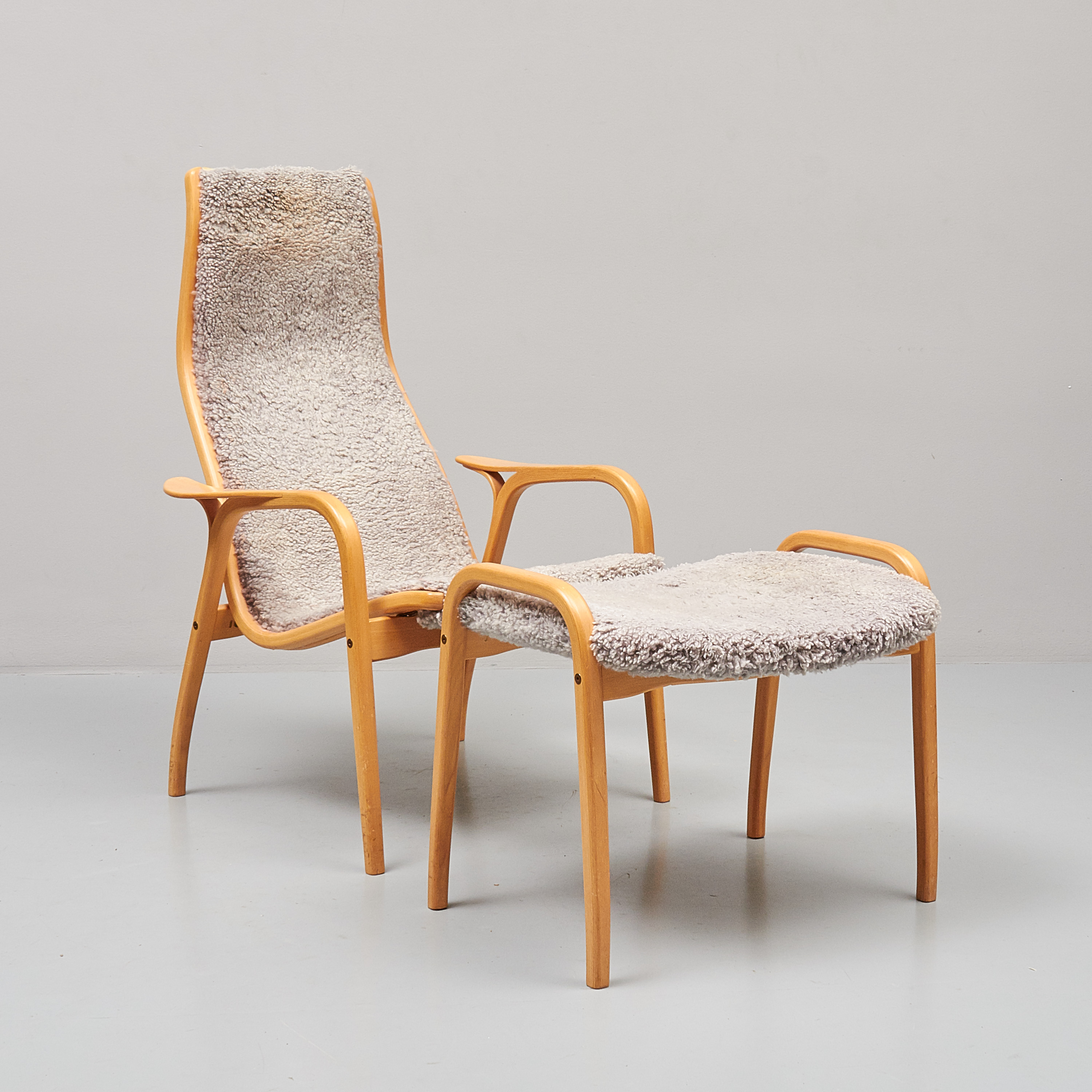 Yngve Ekström (1913-1988), Lamino, Swedese. Skiktlimmat och formpressat trä, brännmärkt Swedese, + pall, slitage, skador