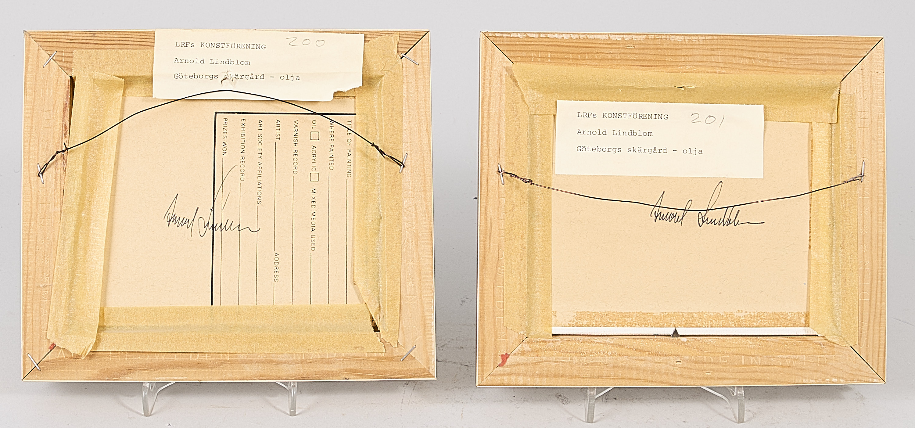 2 st. Arnold Lindblom (f. 1930), Sverige. Signerad, Göteborgs Skärgård, pannå, 11x14 cm, yttermått inklusive ram: 18x21