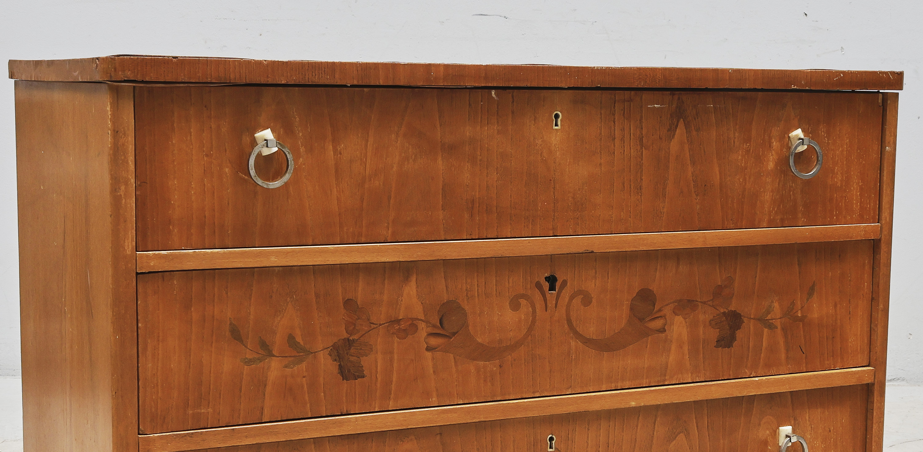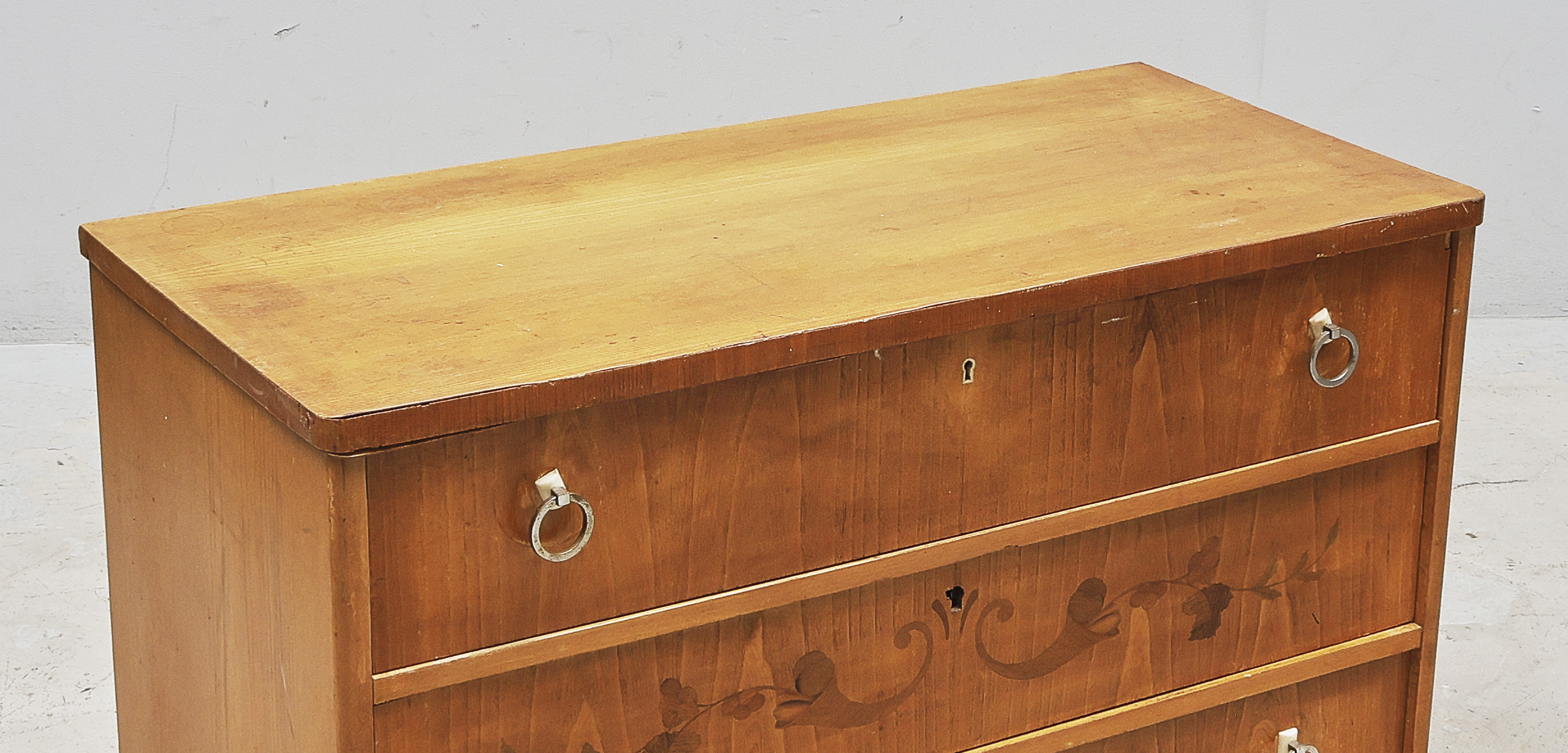 2 lådor, rosa stenskiva, intarsia. Bredd: 68 cm, d..//