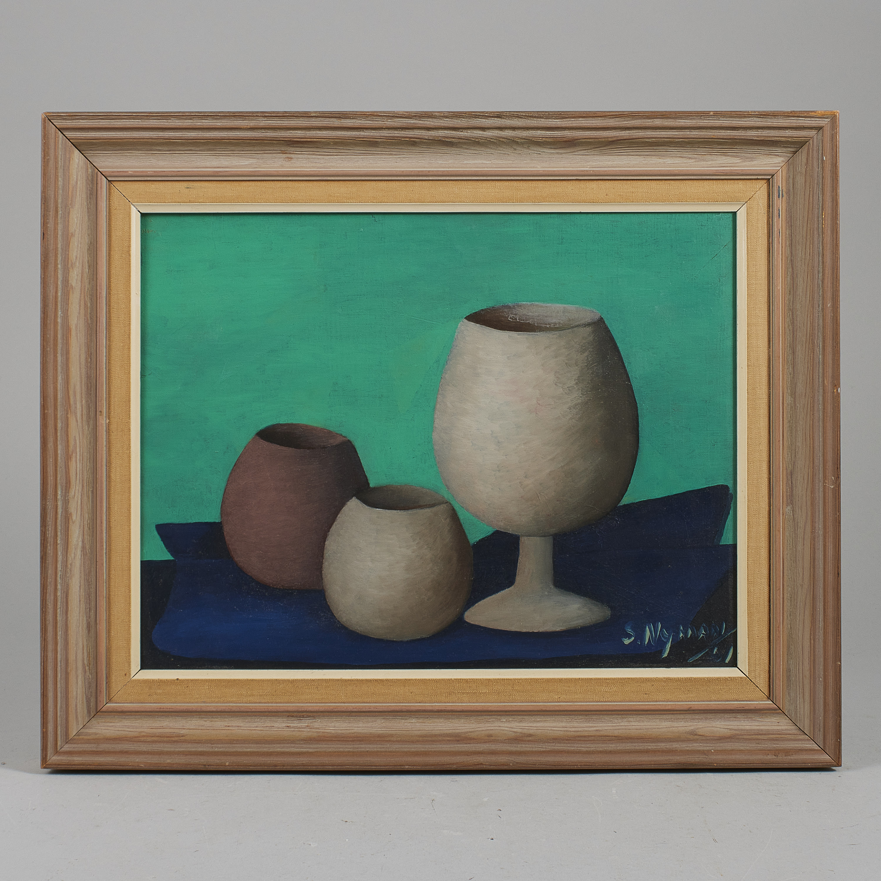 Svea Nyman (1902-1986), Sverige. Stilleben. Signerad. Olja på pannå, 26x35 cm, yttermått inklusive ram: 37x45 cm