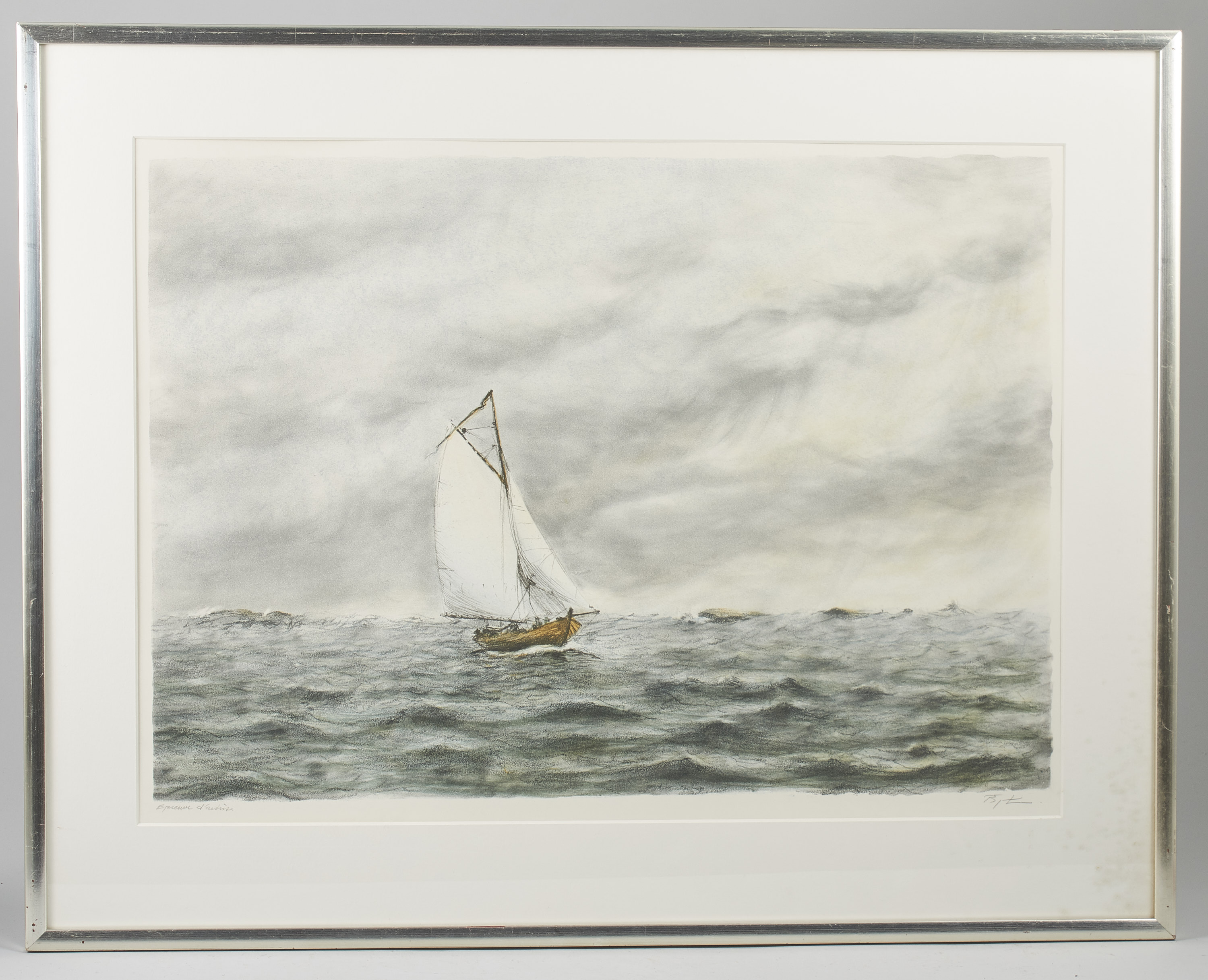 Björn Lindroth (1931-1999), Sverige. Segelbåt, signerad. EA-upplaga. Motivet: 45x65