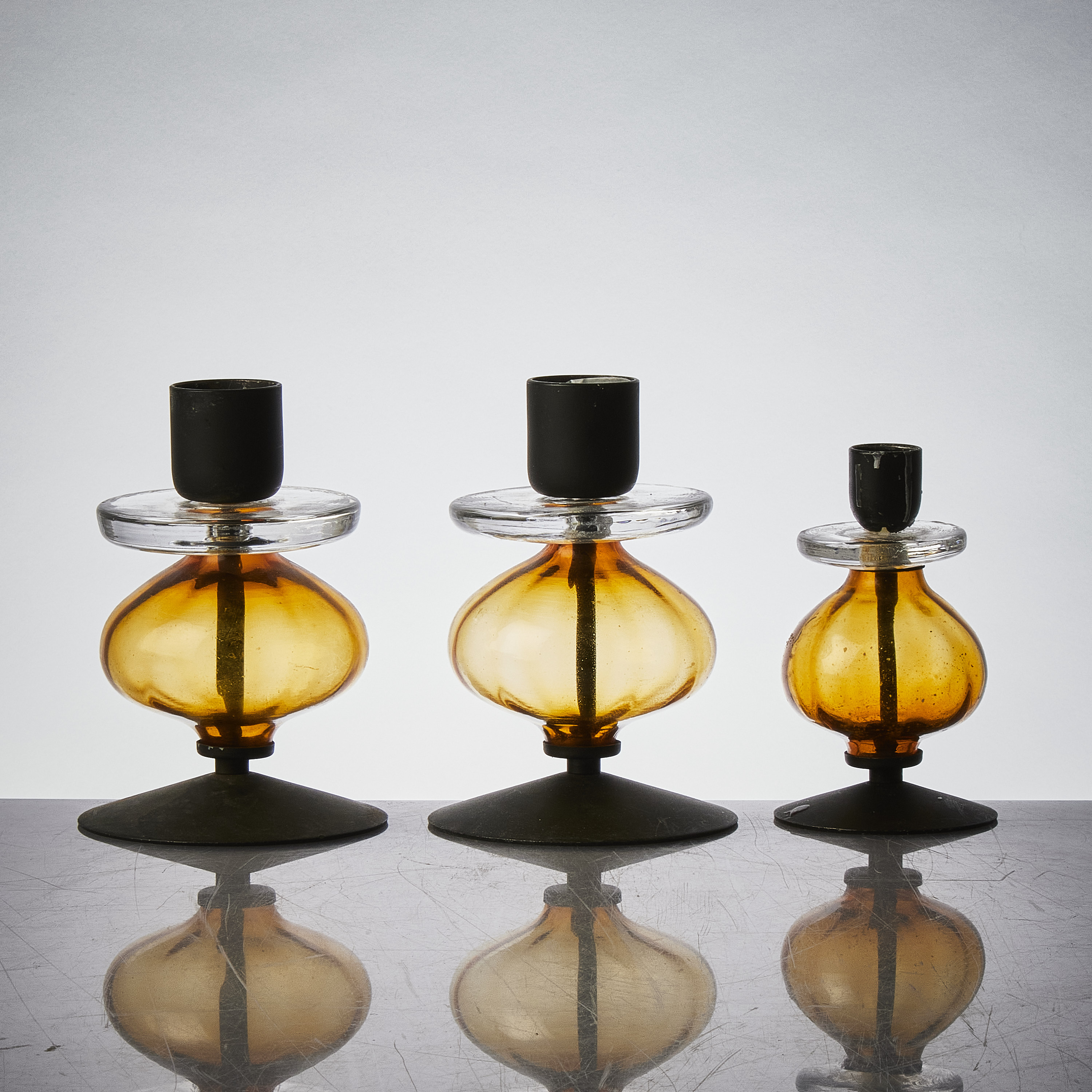 3 st. Erik Höglund (1932-1998), Sverige. Boda. 2+ 1 st, glas och smide. Höjd: 13-16 cm
