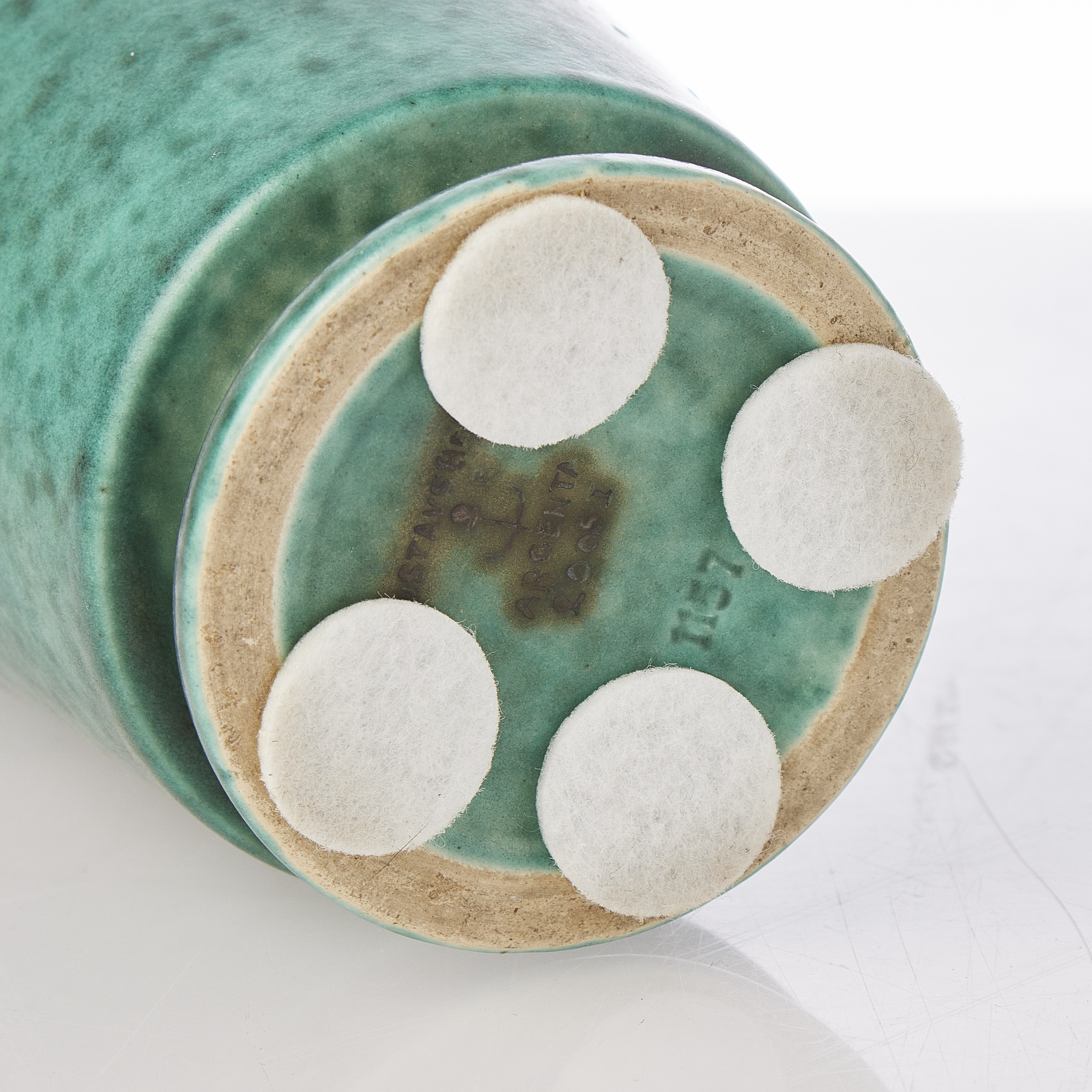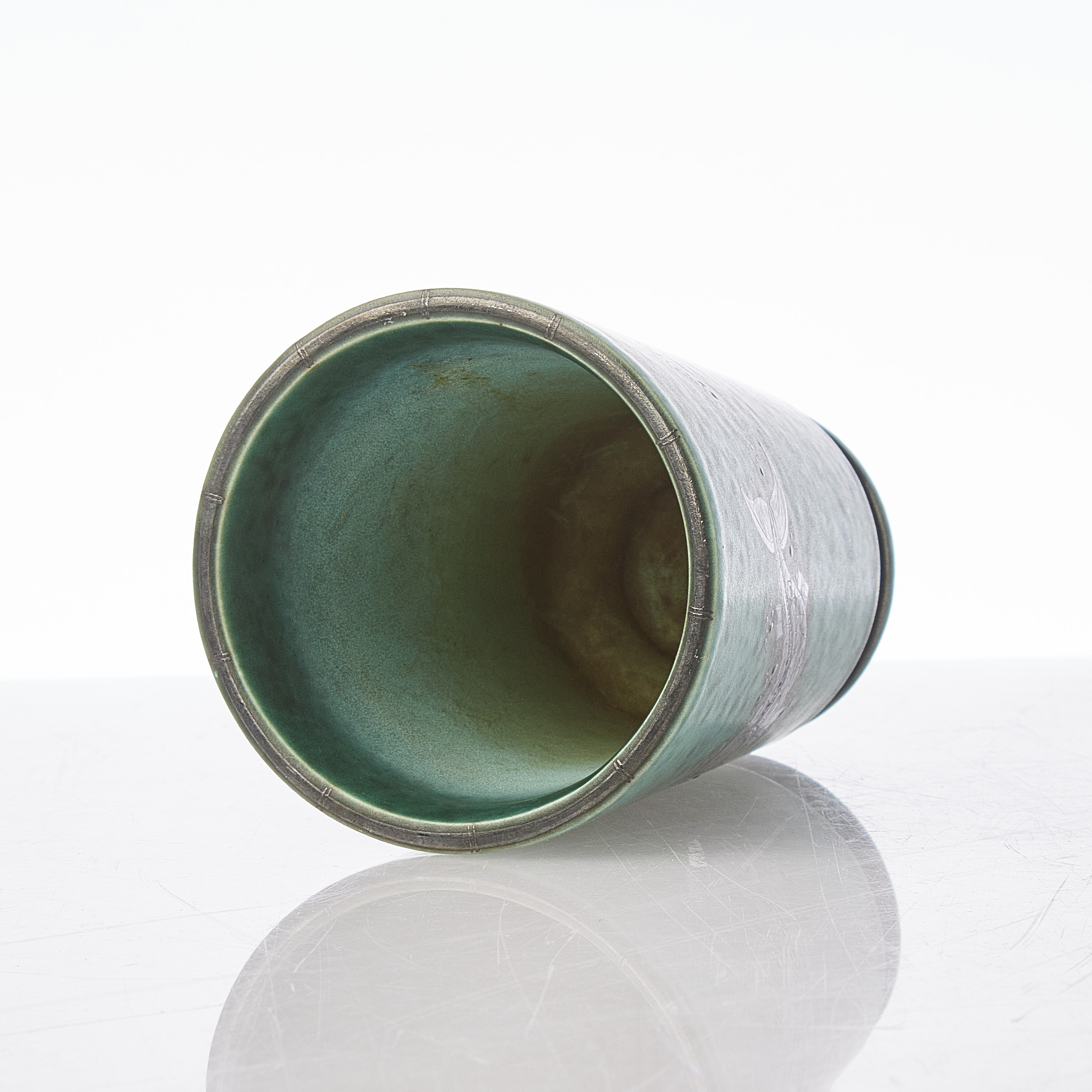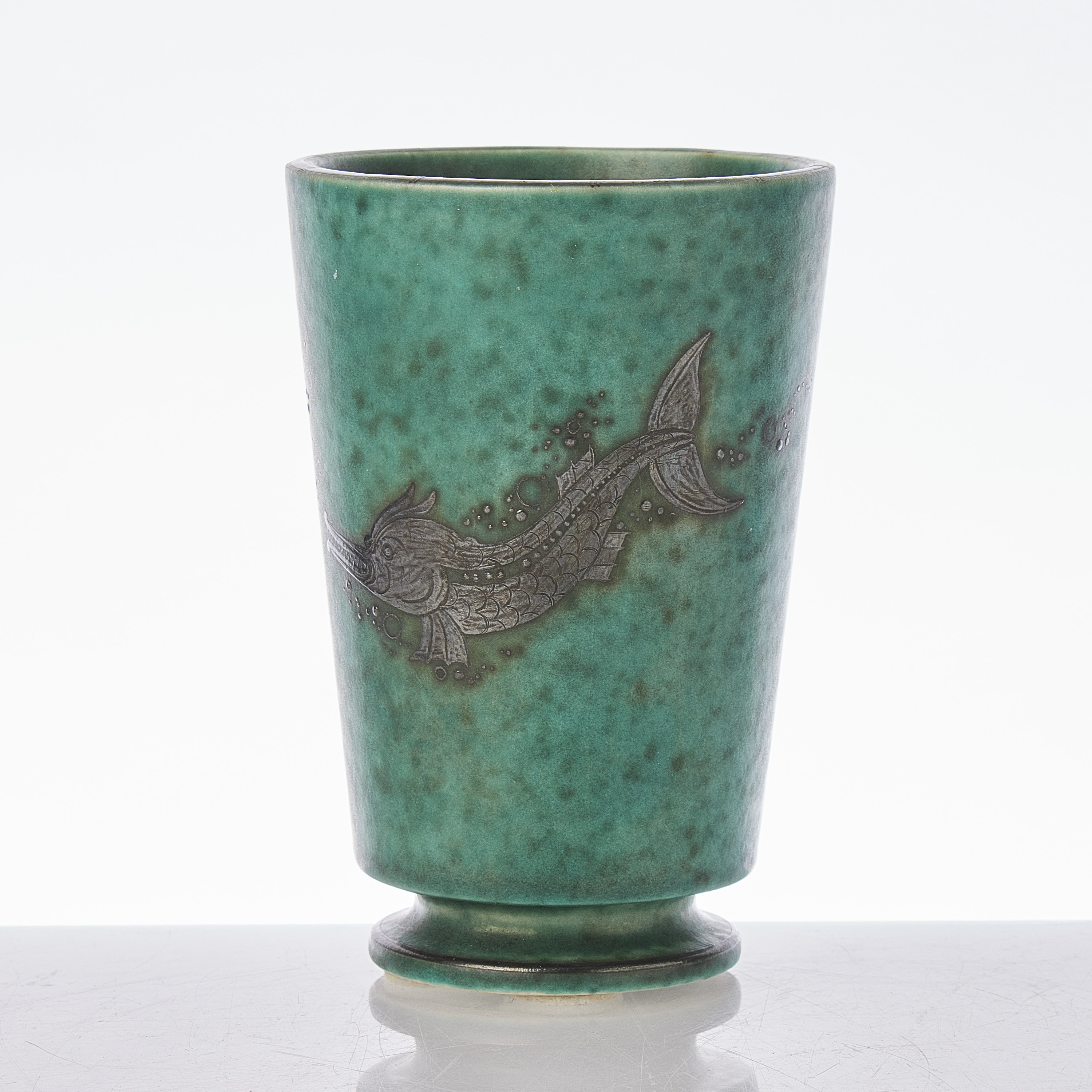 Wilhelm Kåge (1889-1960), Sverige. Argenta, Gustavsberg. Stengods, grön glasyr med målad silverdekor. Höjd: 14 cm