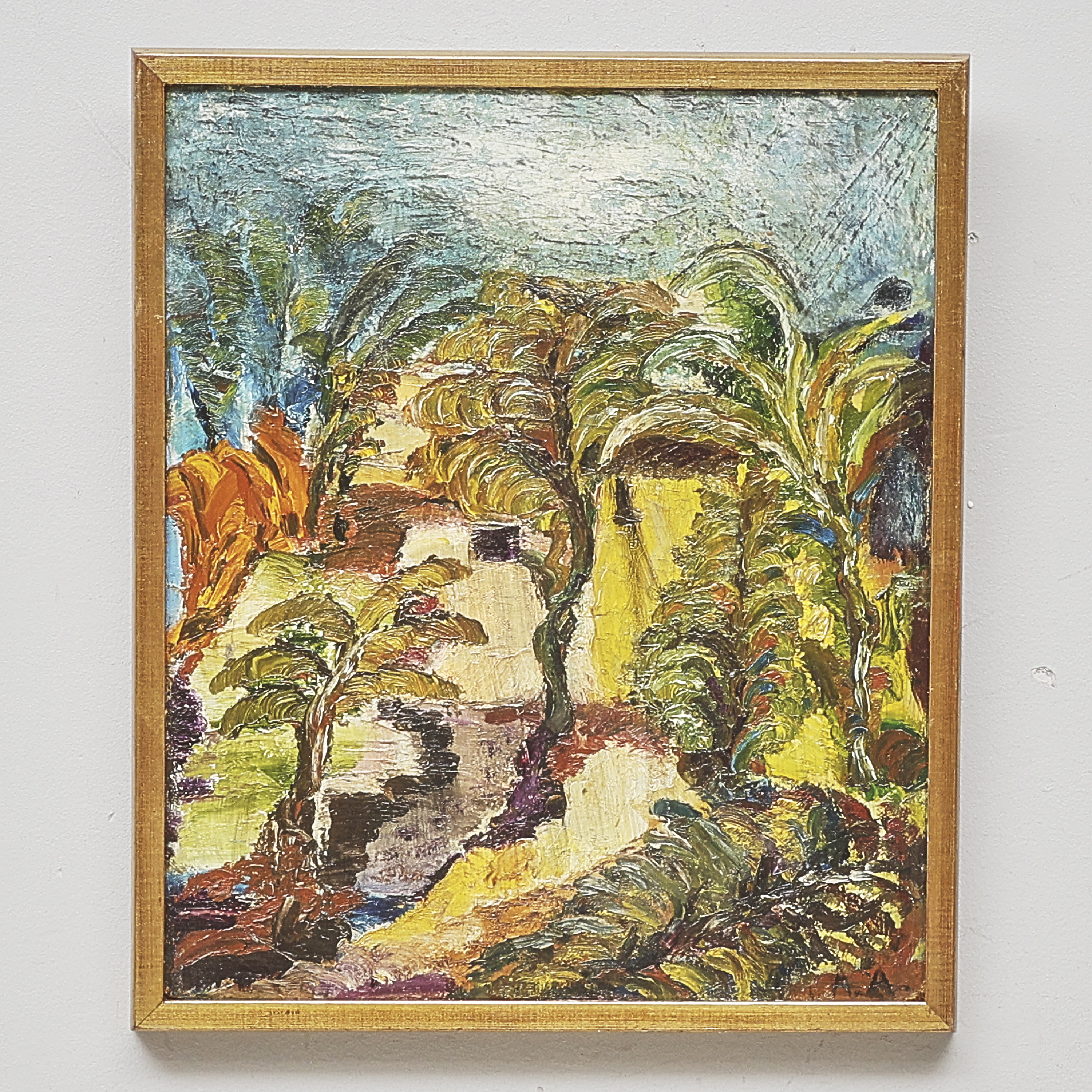 Agnes Ahlberg (1896-1972), Sverige. Träd, monogramsignerad. Olja på pannå, 54x45 cm, yttermått inklusive ram: 59x50 cm