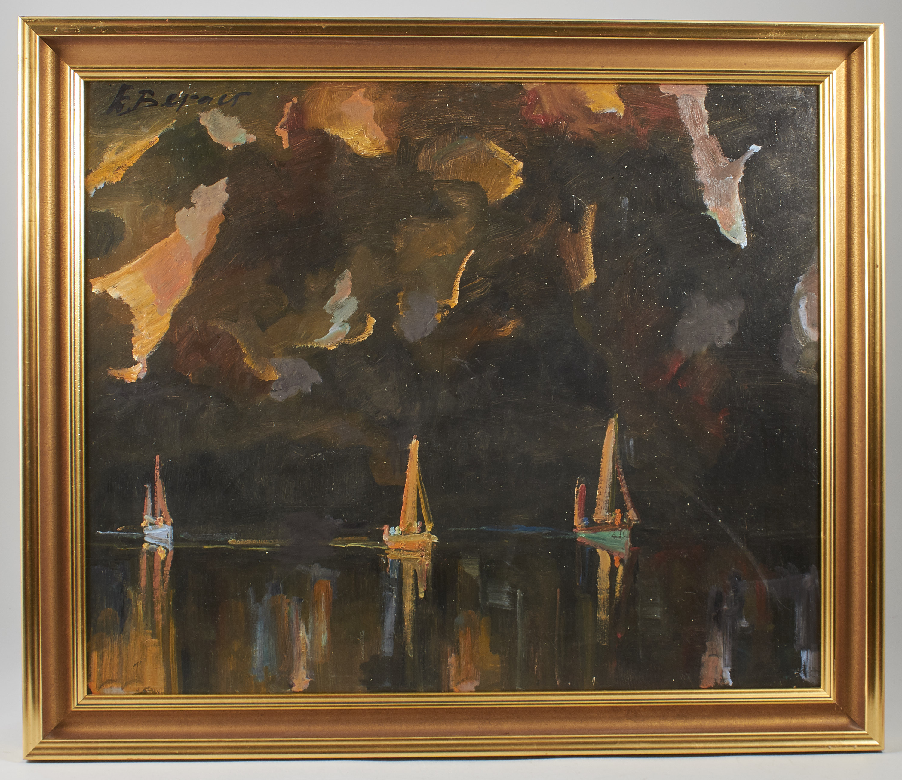 Einar Berg, Segelbåtar, signerad. Olja på pannå, 61x72