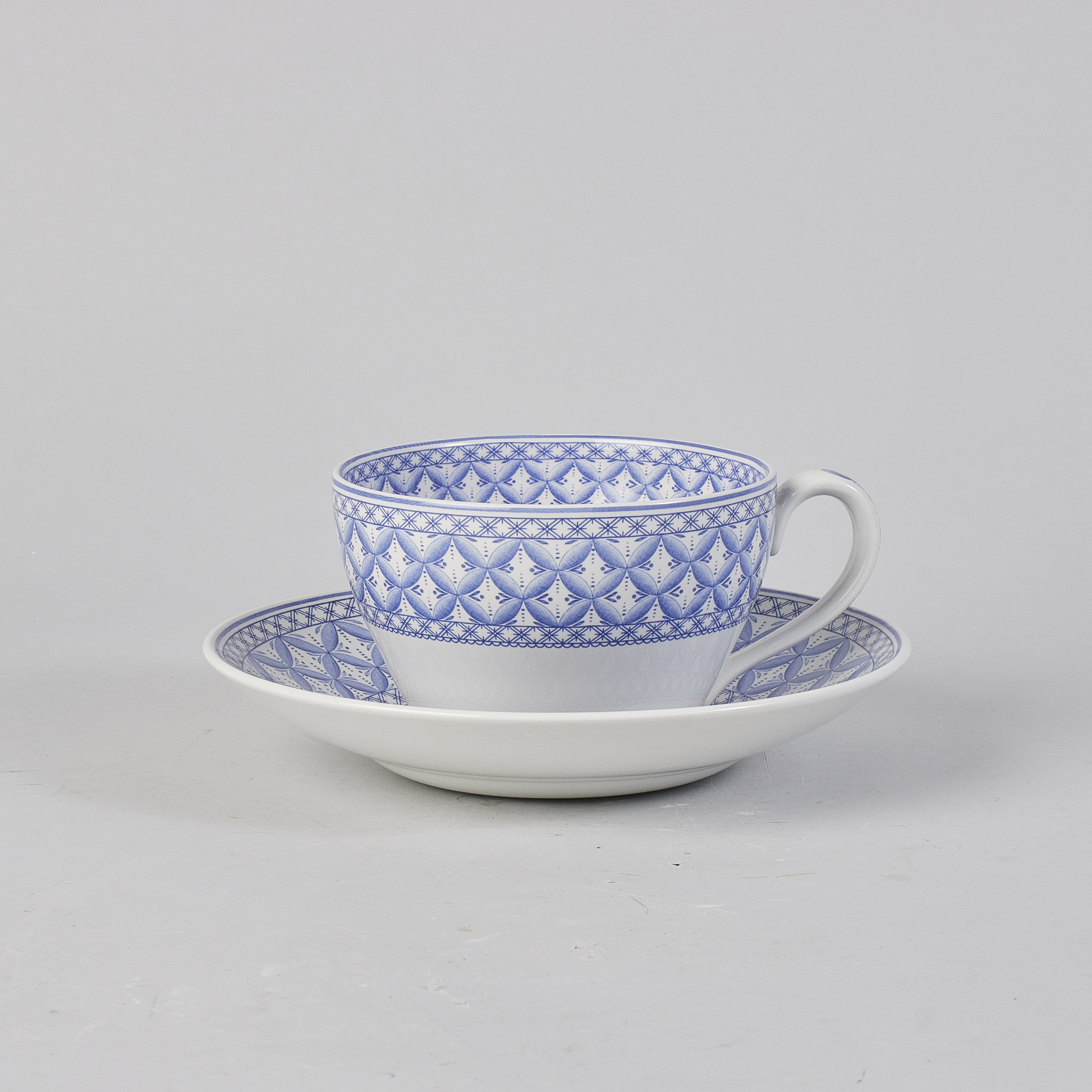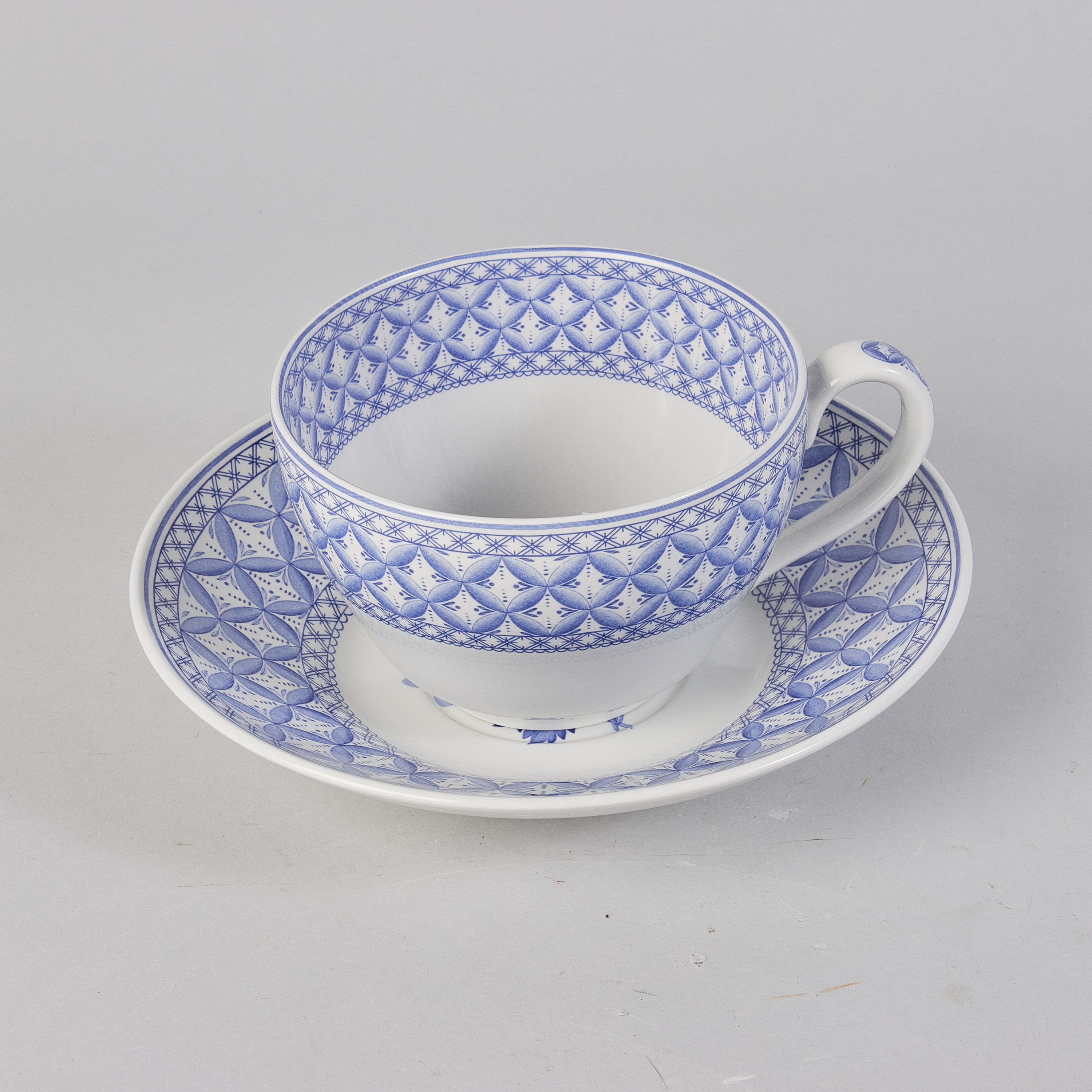 6 st, Ostindia, Rörstrand. Blå dekor på ljusblå bo..//