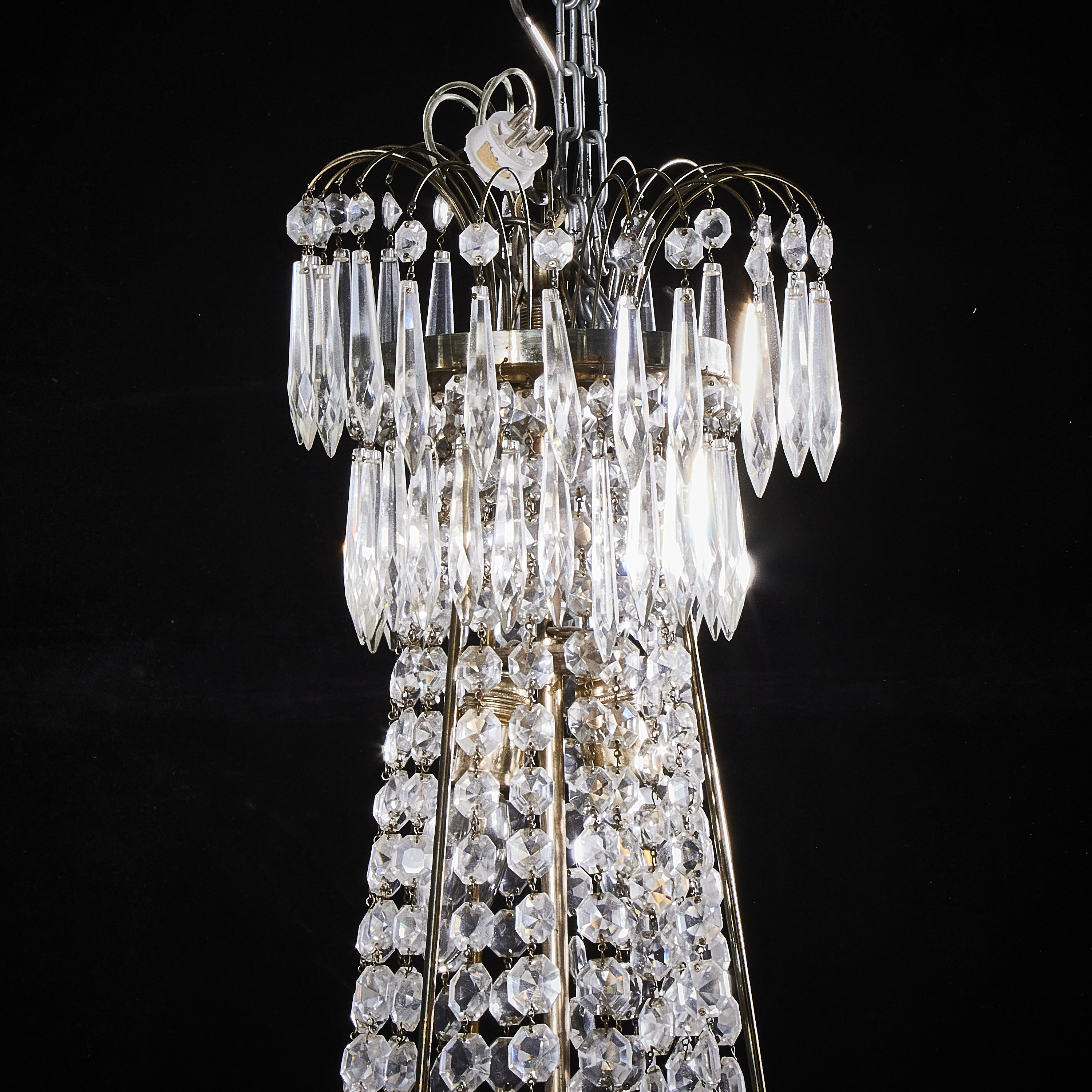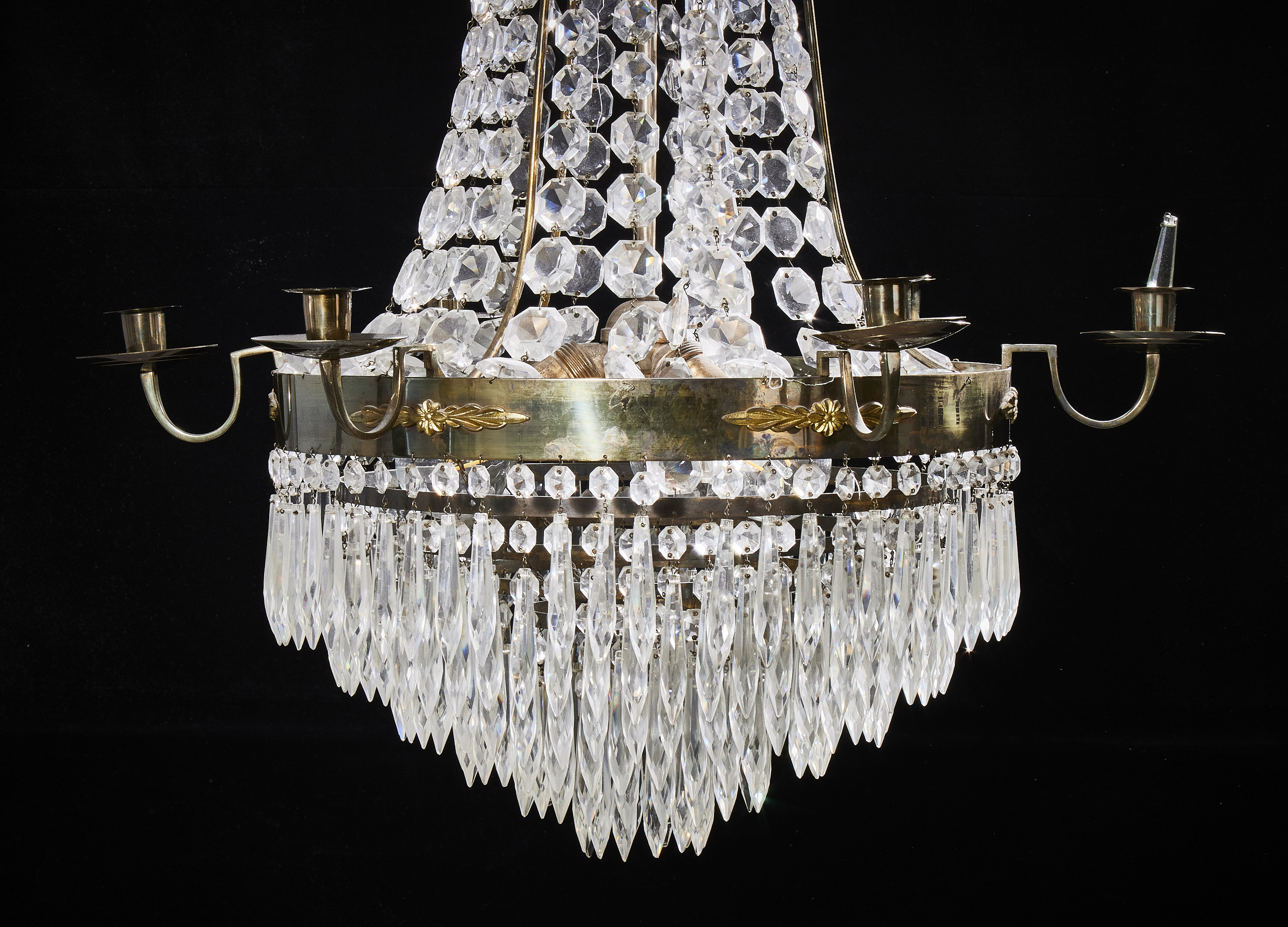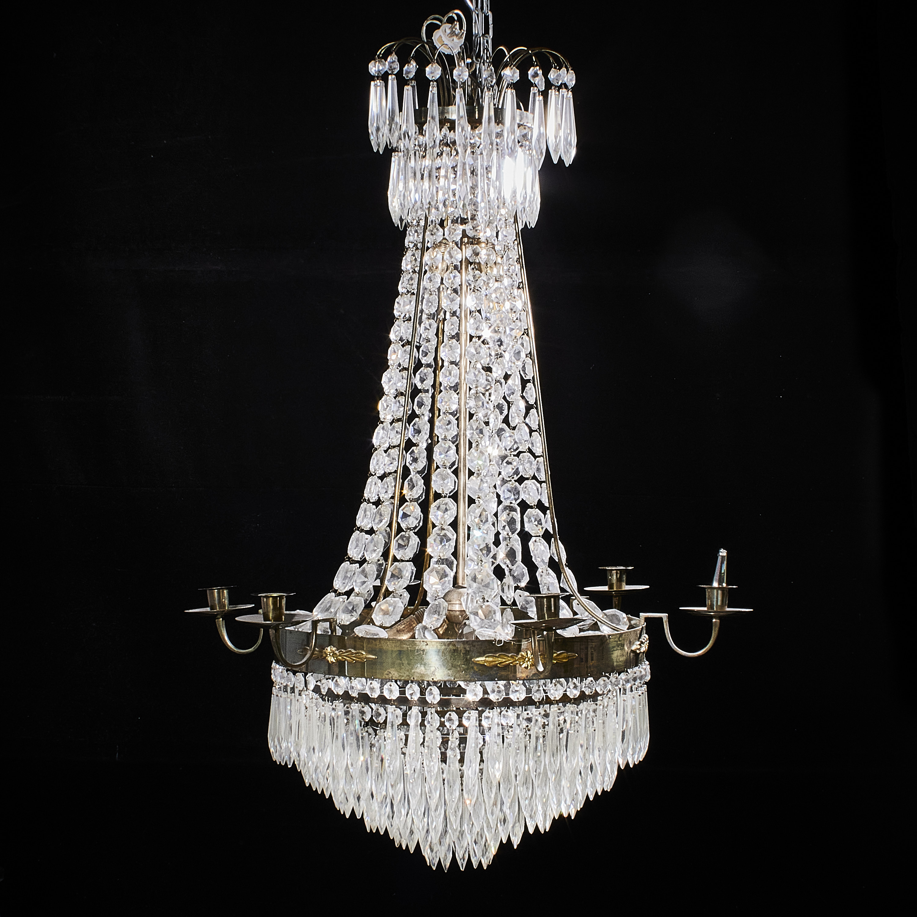 Liknande föremål: empire empirestil gustaviansk stil gustavianska gustavianskt karl johan karl johan-stil kristallkrona ljuskrona ljuskronor stomme i mässing takkrona taklampa