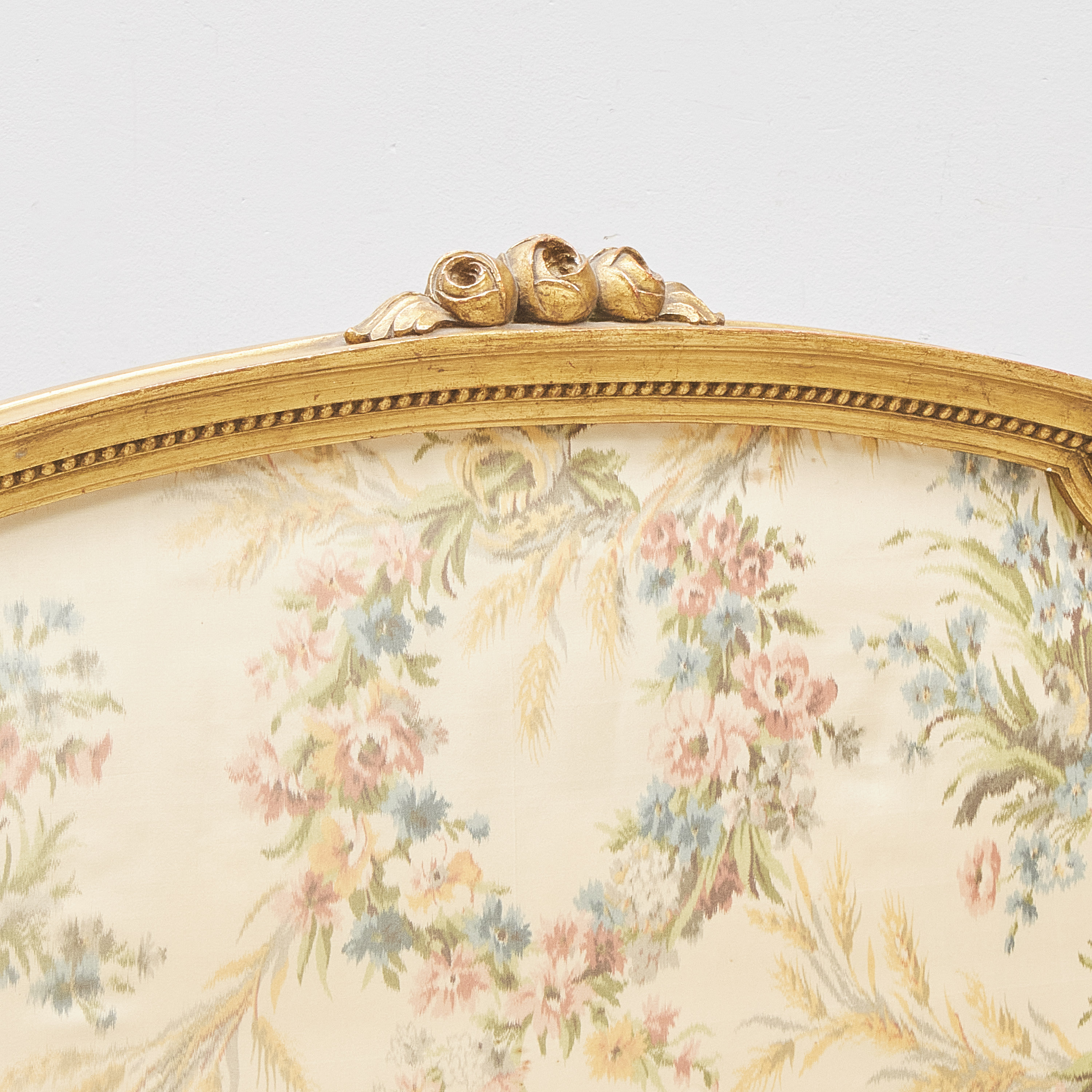 rokokostil, guldbemålad, med tyg. Bredd: 85 cm, höjd: 115 cm, skadad, ett hål
