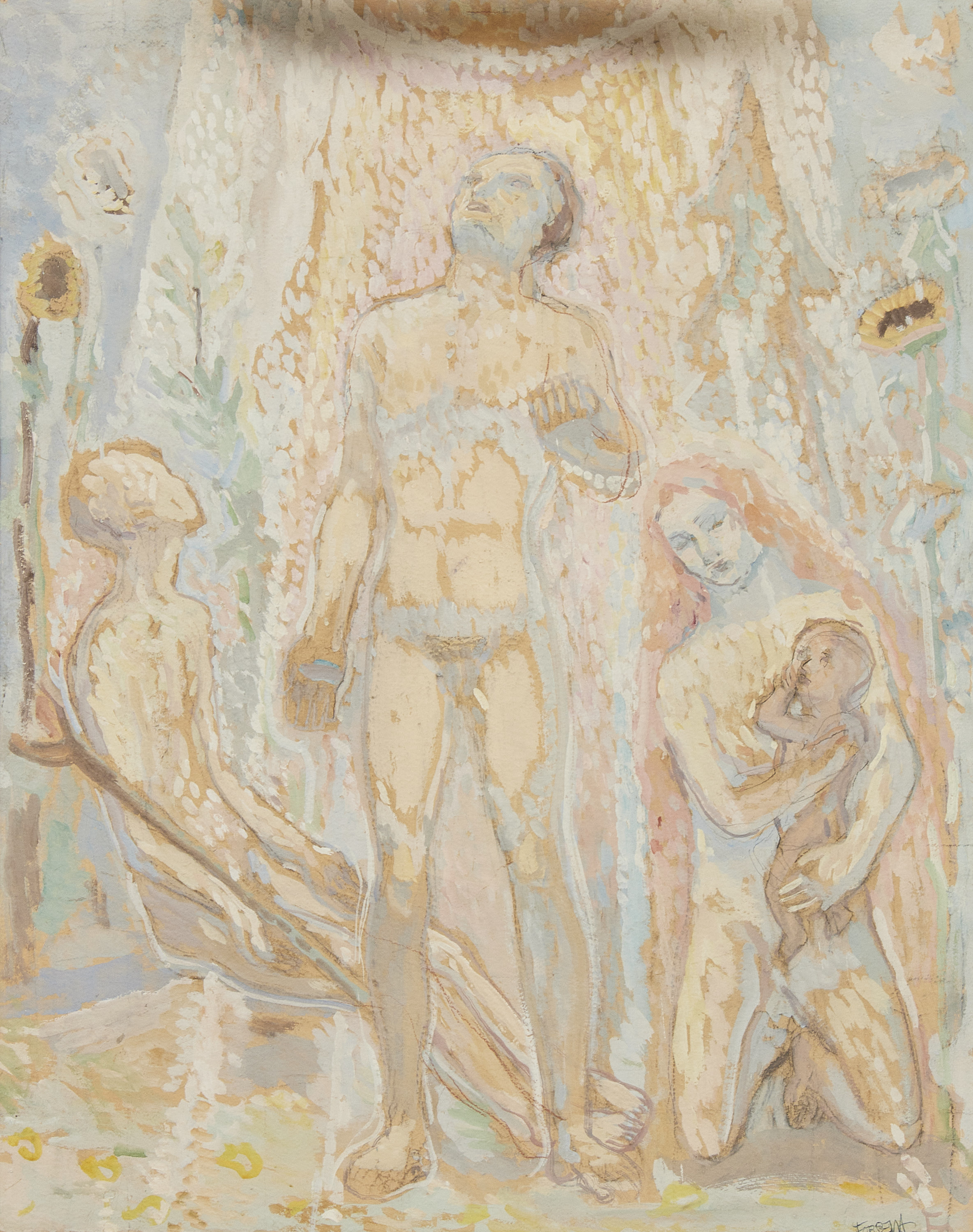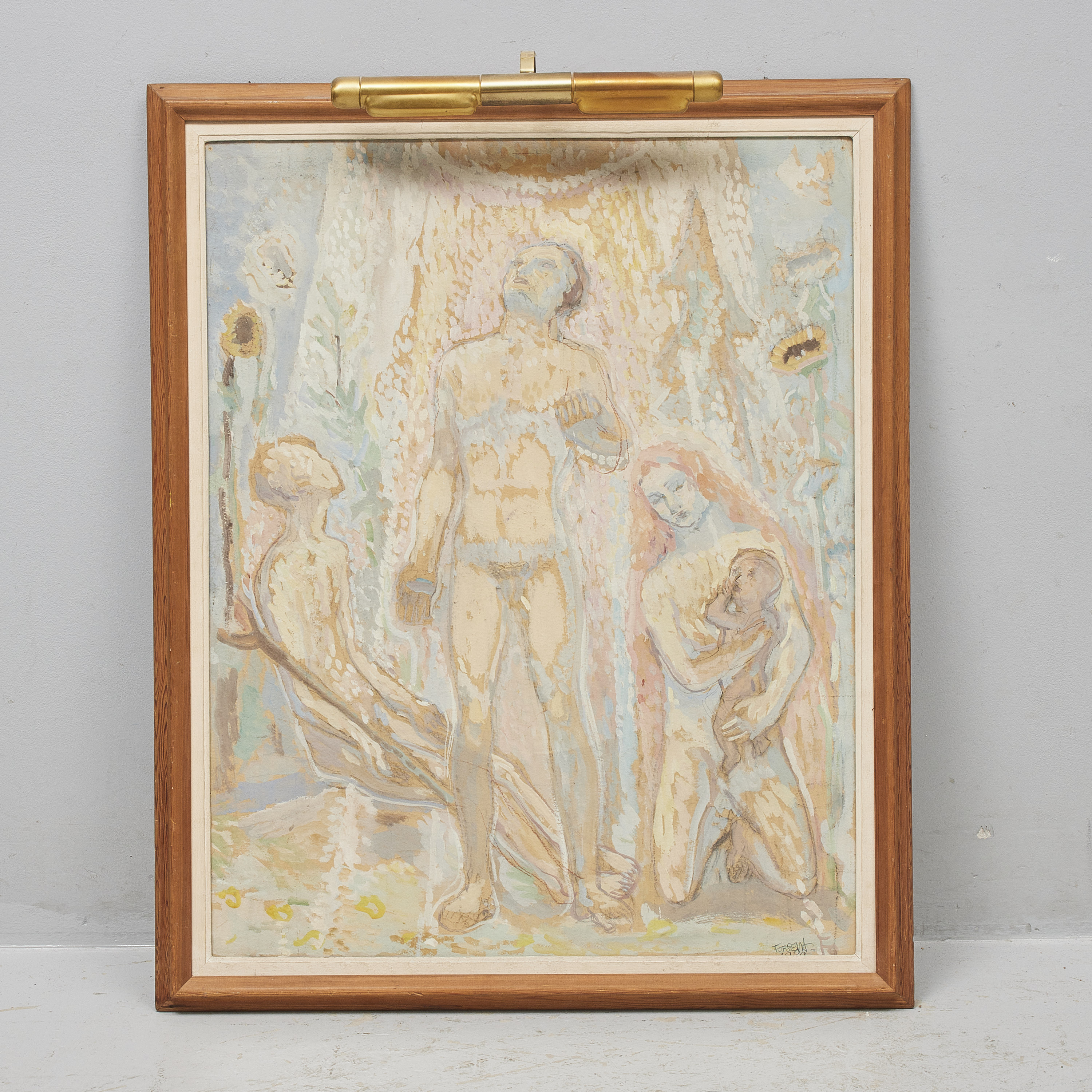 Einar Forseth (1892-1988), Sverige. "Solen", Studie till väggmålning Karolinska sjukhuset 1939. Signerad, 91x72 cm, yttermått inklusive ram: 103x85 cm