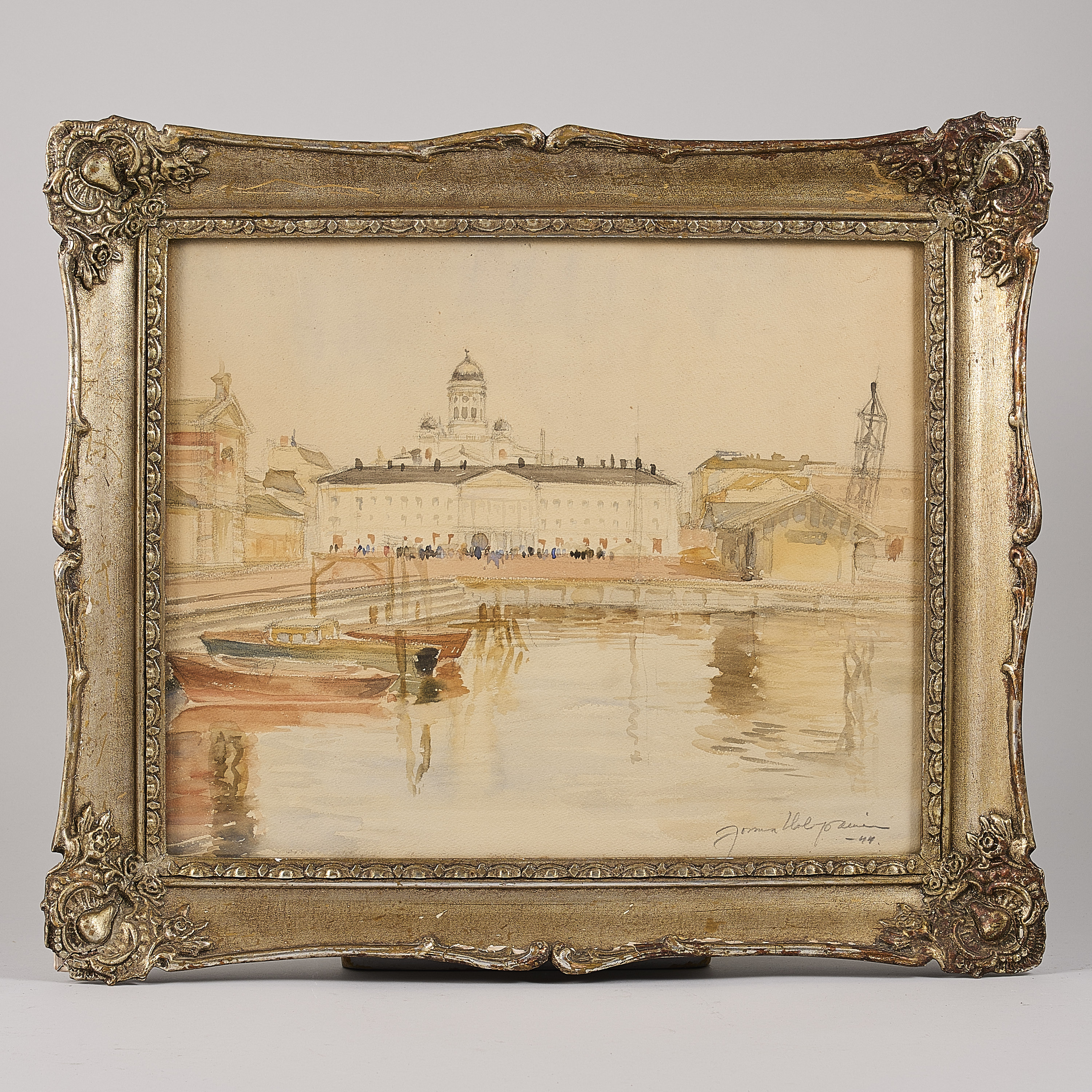 Jorma Holopainen (1916-1965), Finland. Signerad. Helsingfors, daterad -44. Akvarell. Akvarell på papper, 35x43cm, yttermått inklusive ram: 50x58cm