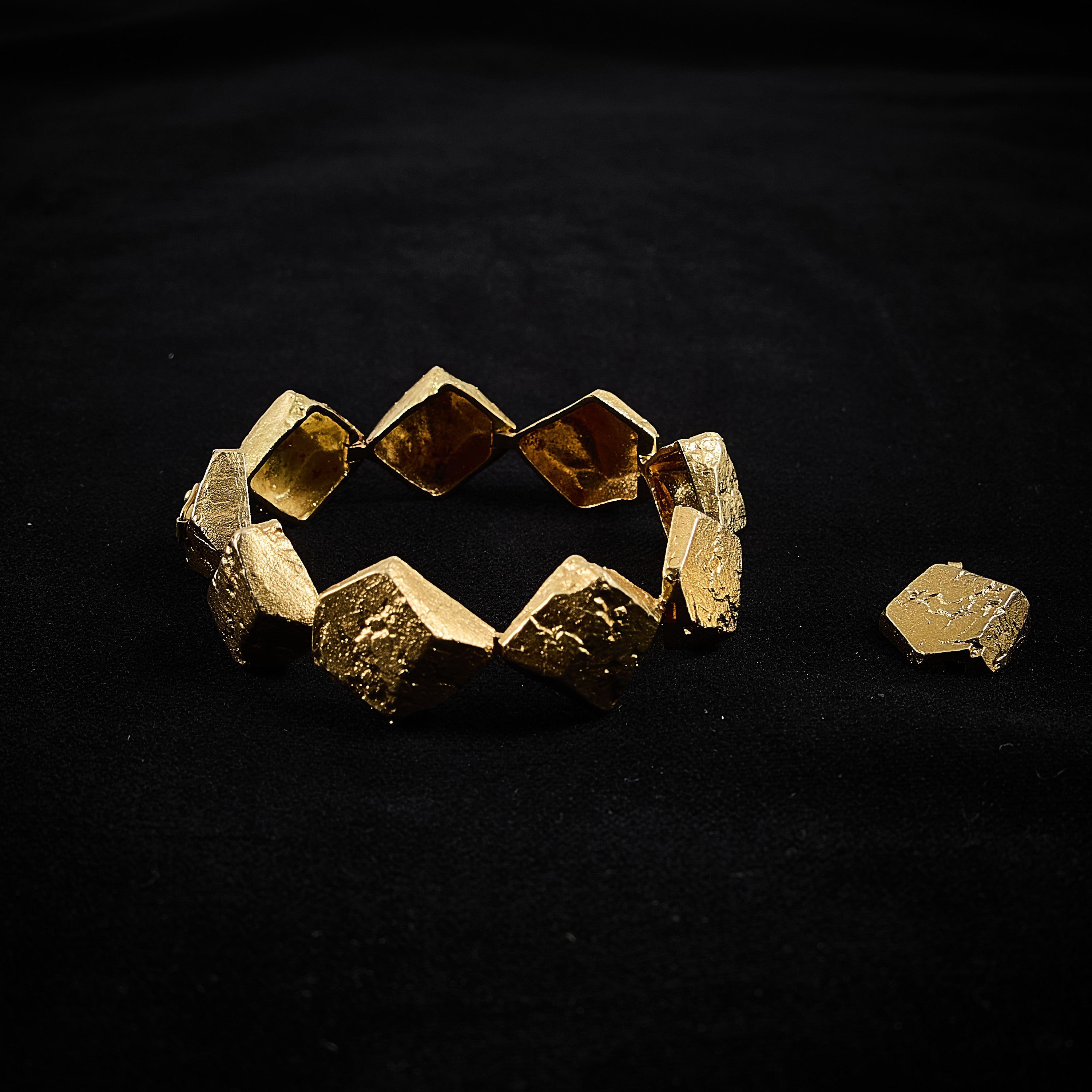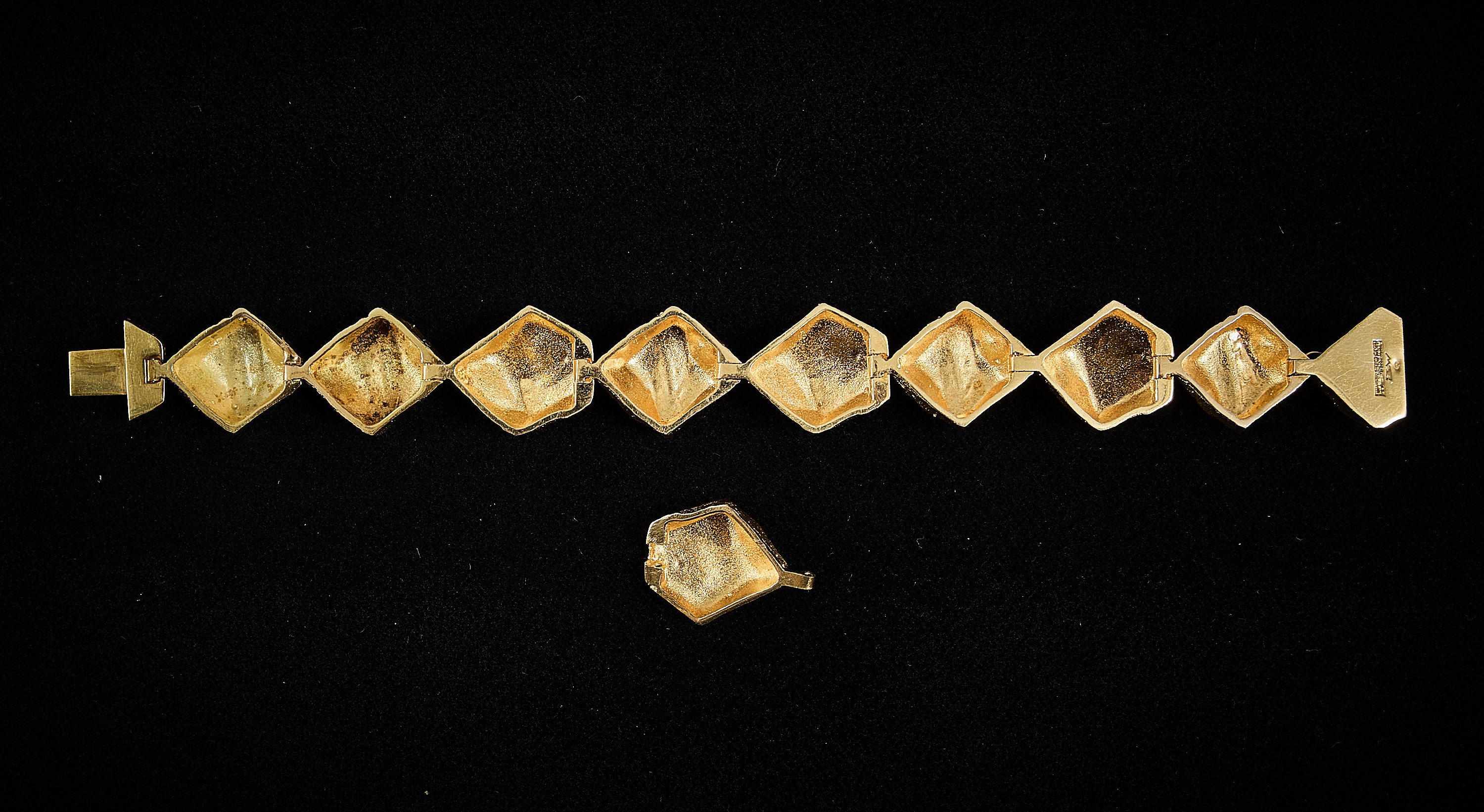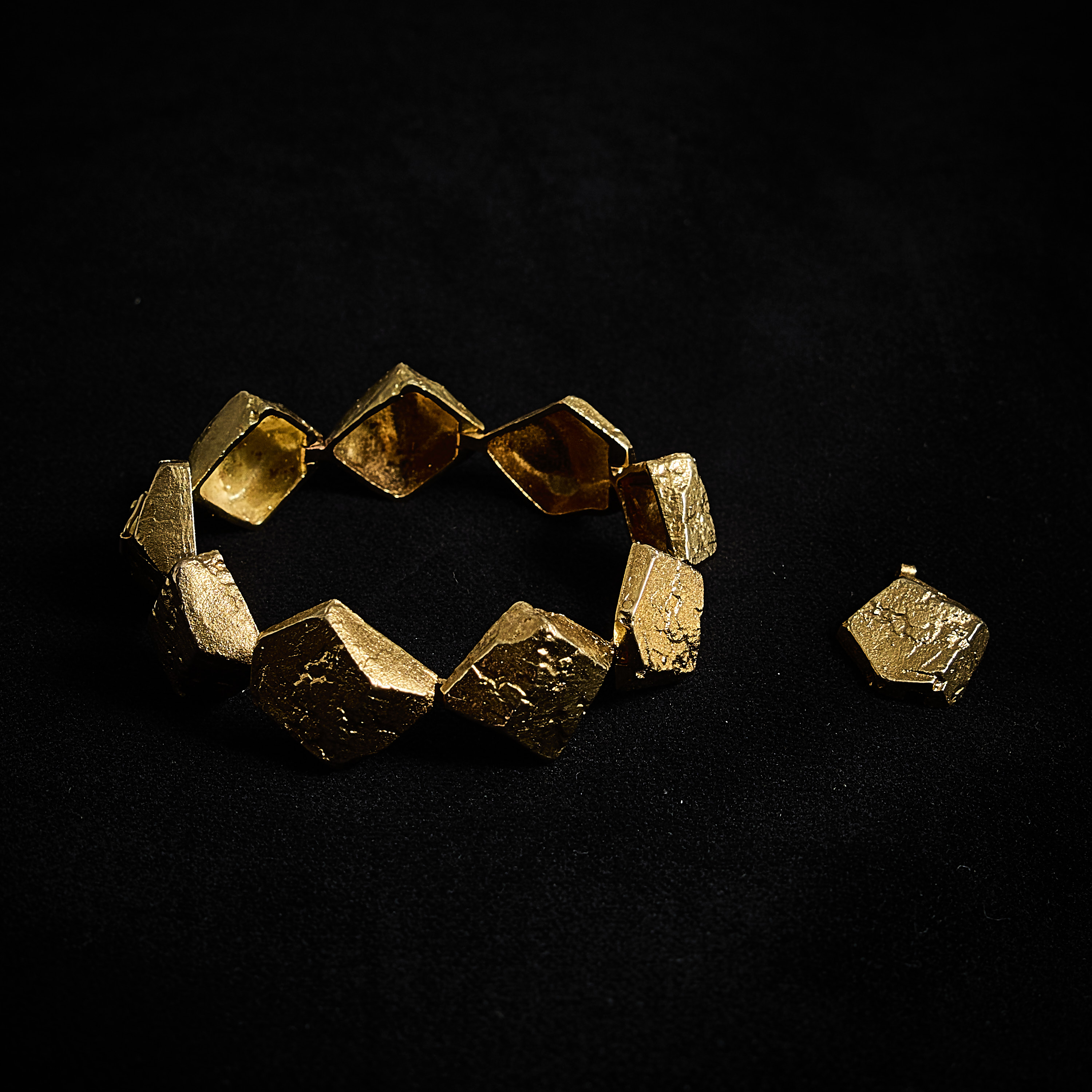 18k guld, Björn Weckström (f. 1935), Finland. Lapponia, "Lapplands stenar". Längd: 17,5 cm. Bredd: 1,5 cm ca, medföljer 1 extra länk om ca 2 cm. Vikt: 48,4 g, stämplad BW