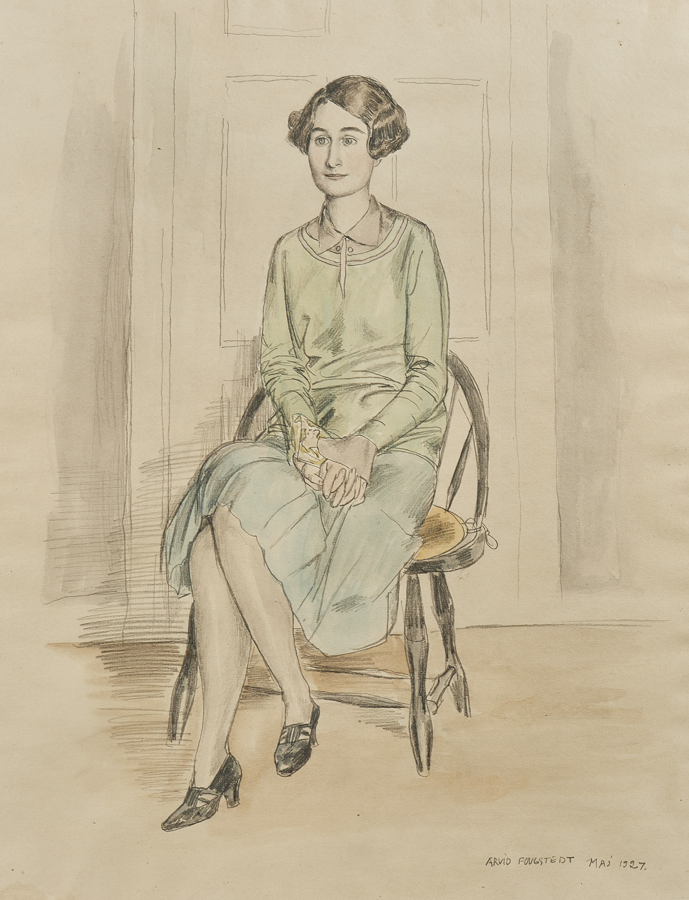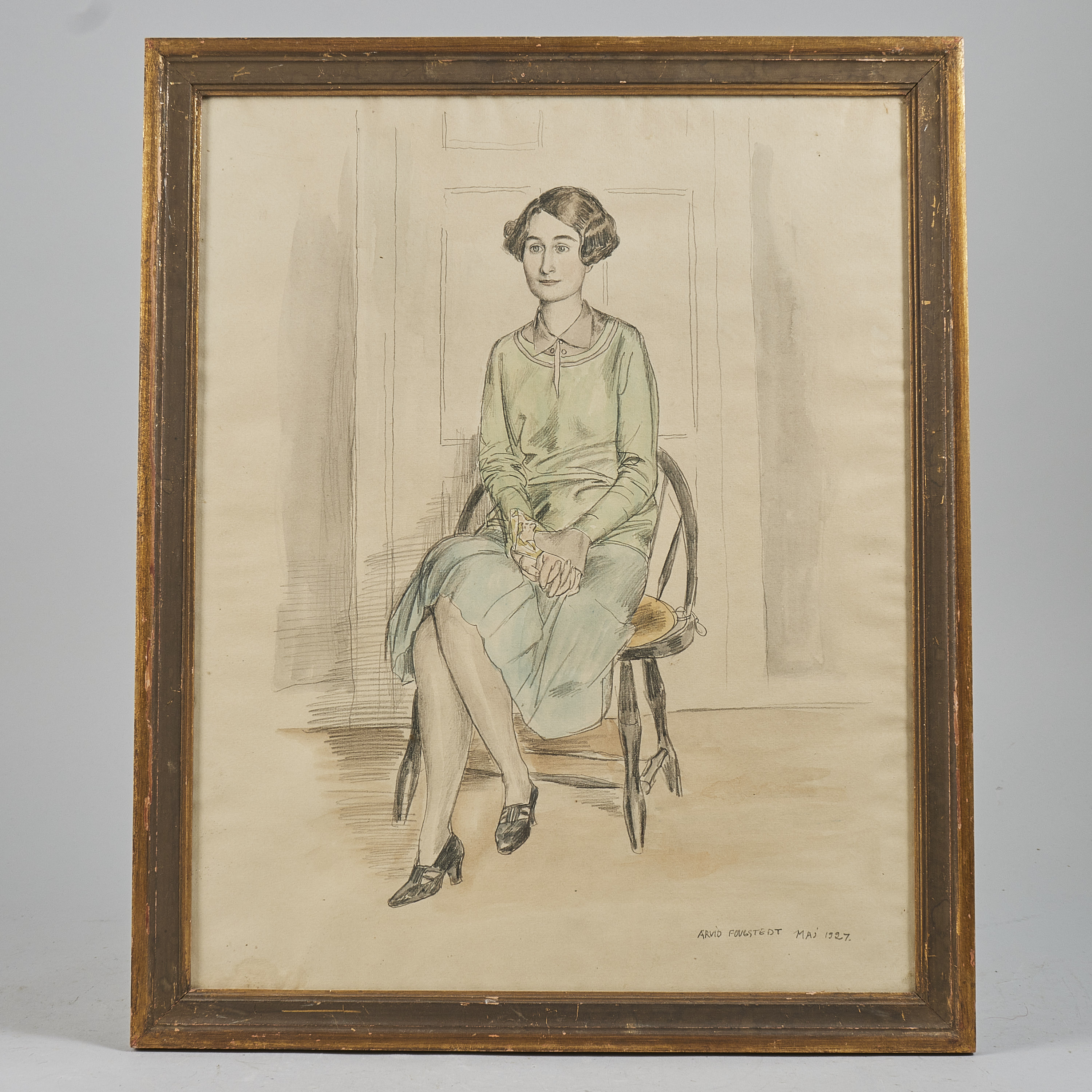 Arvid Fougstedt (1888-1949), Sverige. Porträtt. Signerad, blandteknik, maj, 1927,47x38, yttermått inklusive ram: 54x44