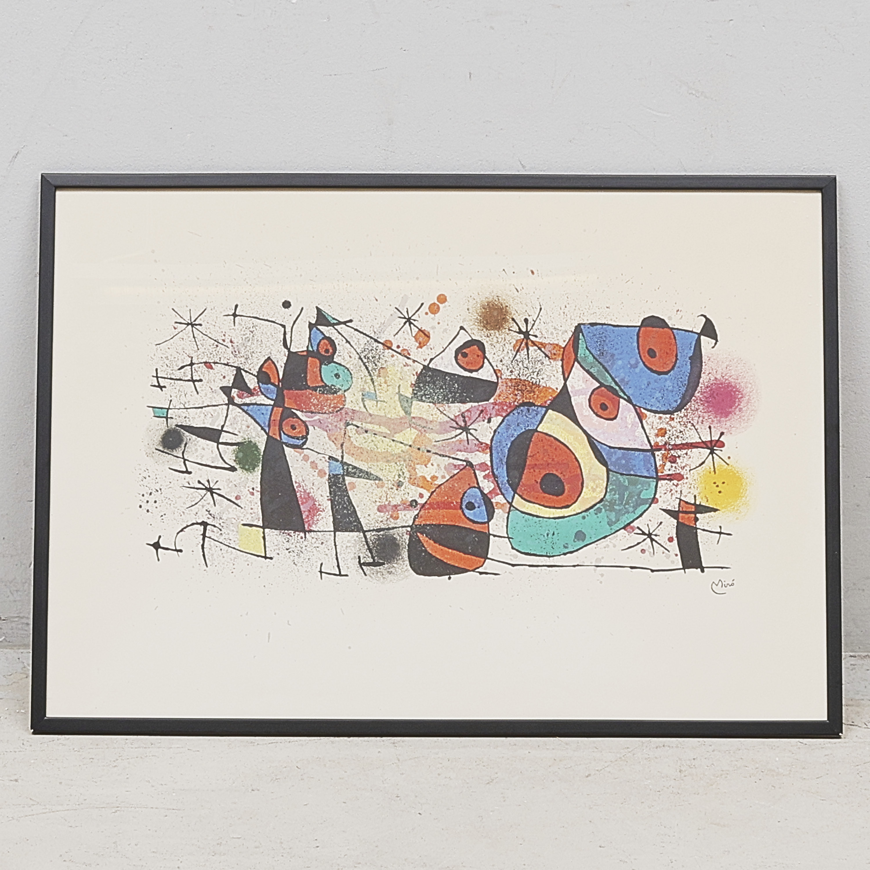 efter Joan Miró, ej signerad, färglitografi, yttermått inklusive ram: 54x77
